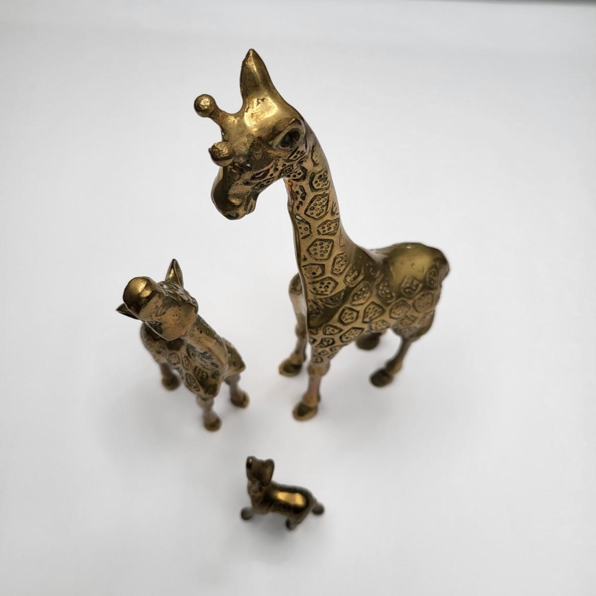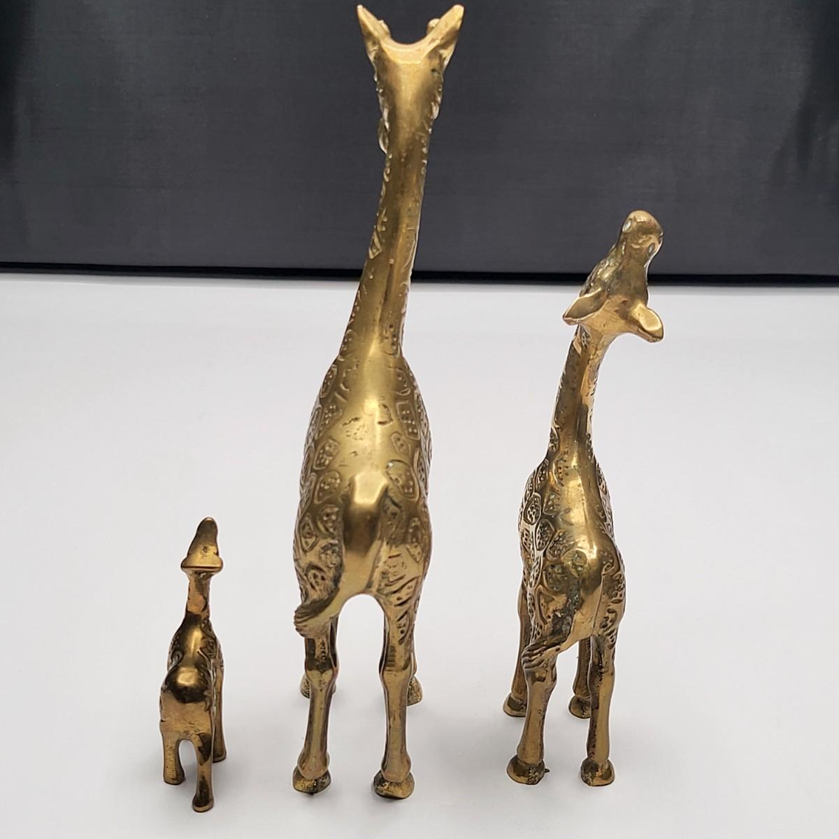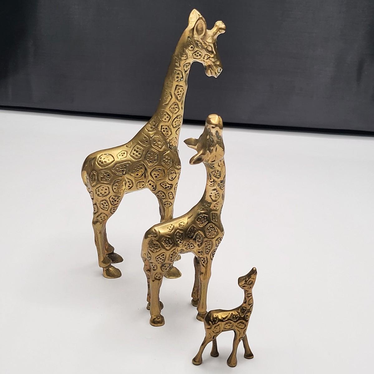 Cute family of brass giraffe decor 7.25", 5.5" and 2.75"