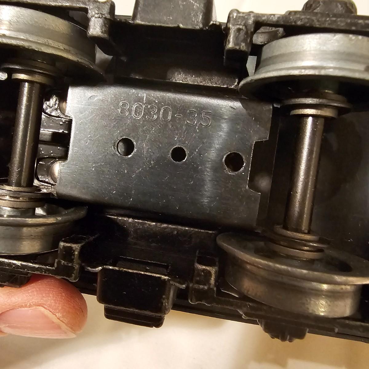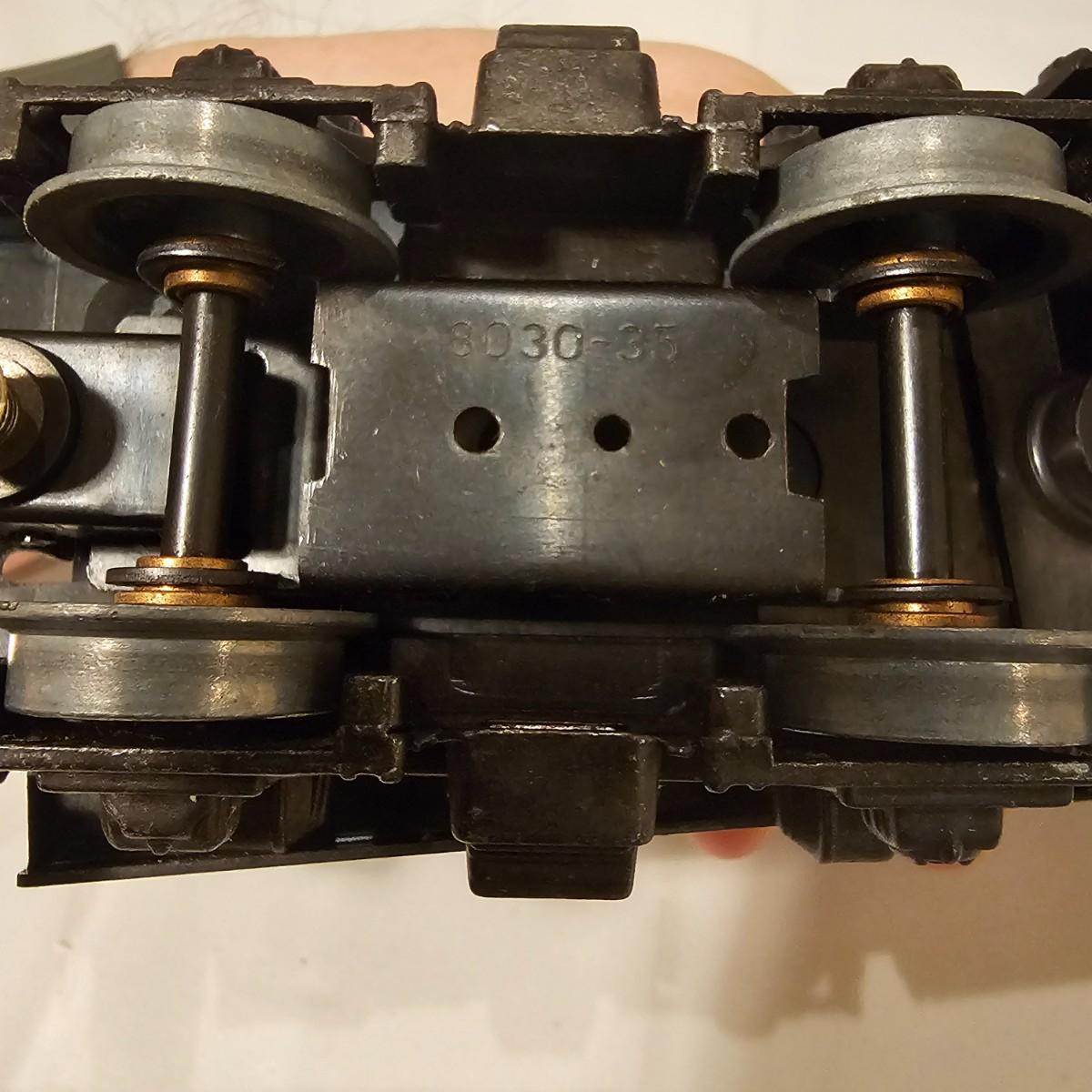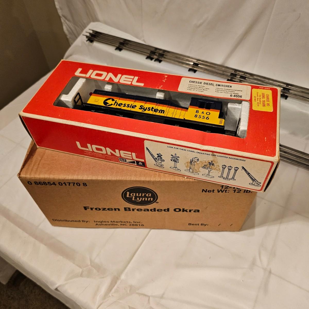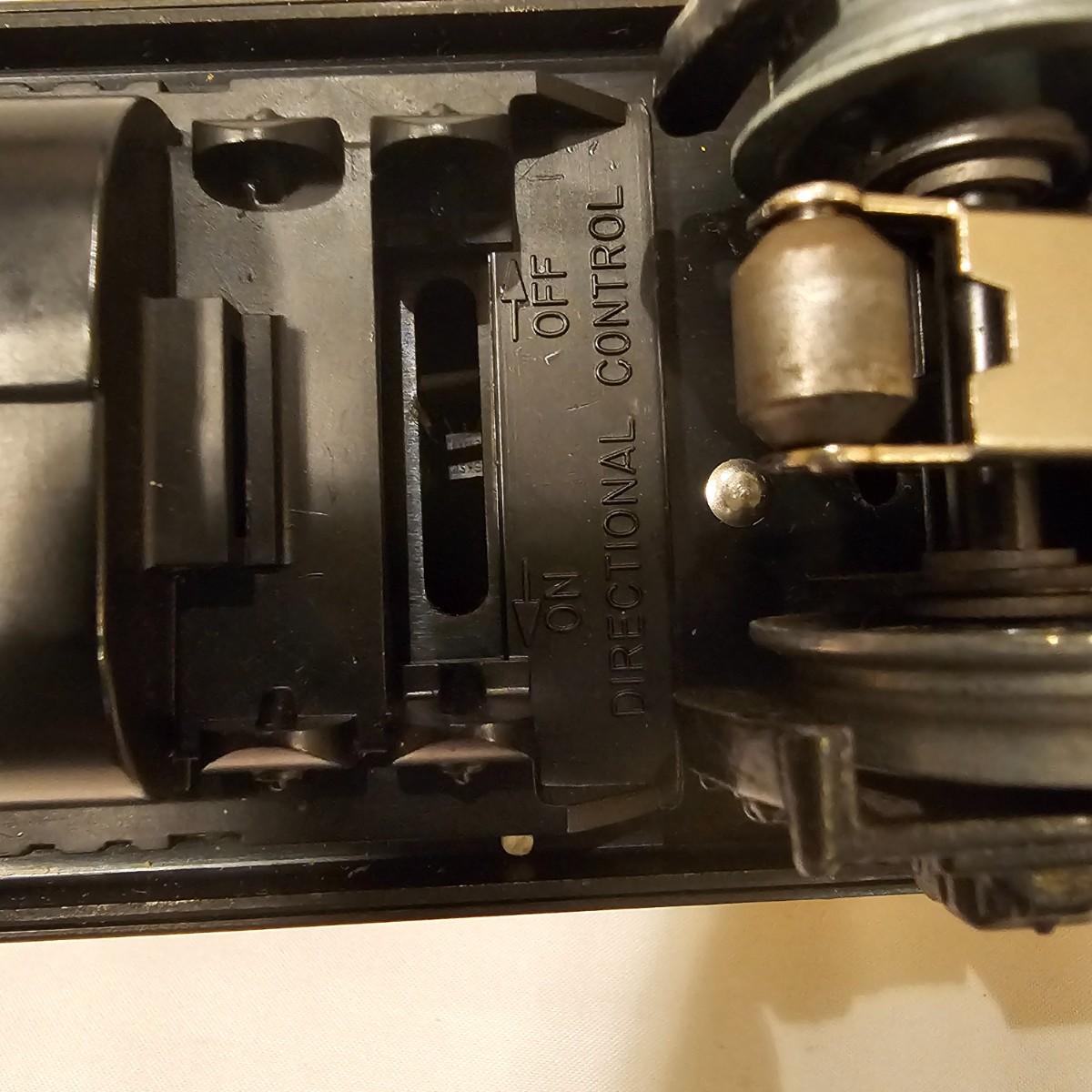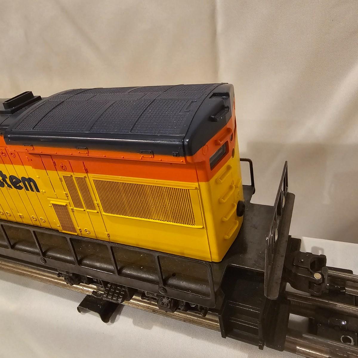 A pair of U36B diesels and one NW2 switcher unit, all wearing the favorite cat logo of the Chessie brand. One U36B is powered, #8470 and the other #8560 is a dummy unit. Each measures 14" x 3" x 4"H. The power unit started and ran on the layout and has working light. The NW2 #8556 switcher measures 12.5" x 3" x 4"H, ran noisy on the layout but no lights. All items need cleaning and one original box for the power unit U36B. See photos for details. Shipping available. Please note that any price tag seen on an item was not put there by Sterling Transitions and does not reflect the current value of the item.