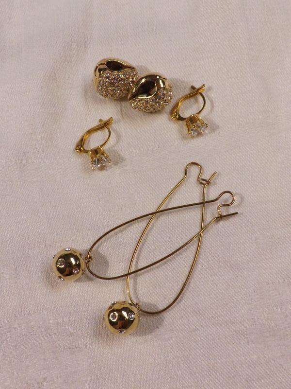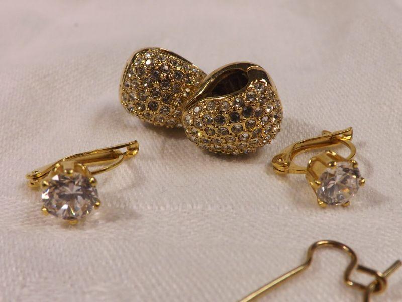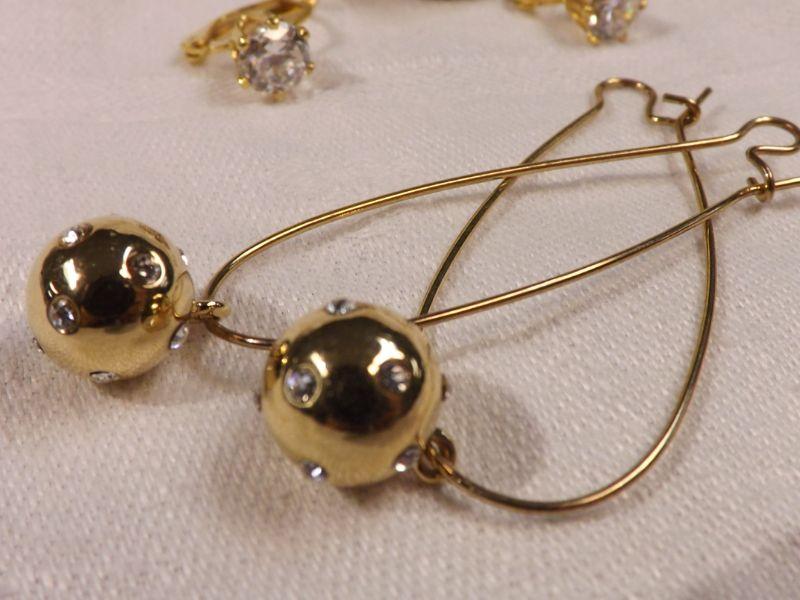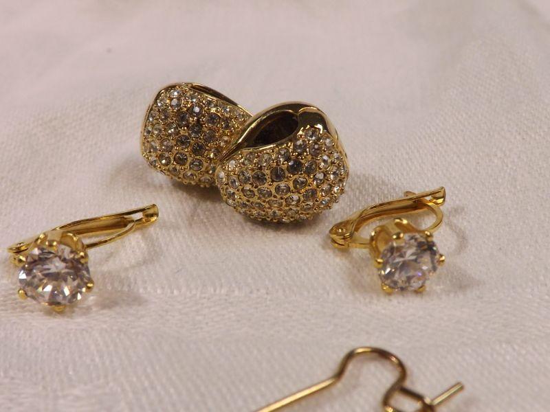Goldtone, cubic zirconia, and crystal earrings. 1 pair is magnetic. **Please read Terms and Conditions before placing a bid. Pick up is Wednesday, September 25 from 4pm to 7pm and Saturday, September 28 from 9am to 1pm in Williamstown, NJ. All sales are final. All sales are as is, where is. Please review all photos. Any props included in photos are not included in listing. All measurements are approximate.