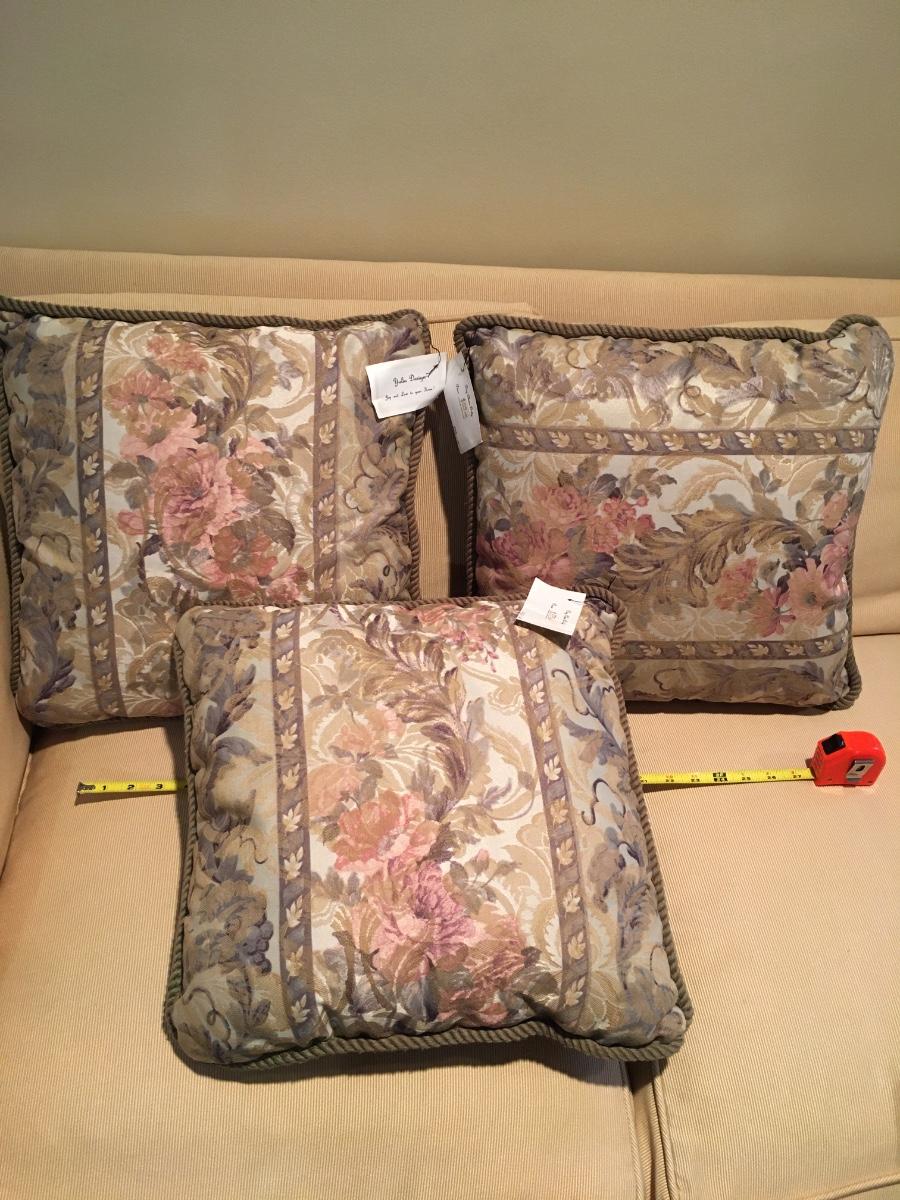 Setof 3 NWT floral pillows with contrasting back fabric and twist trim.