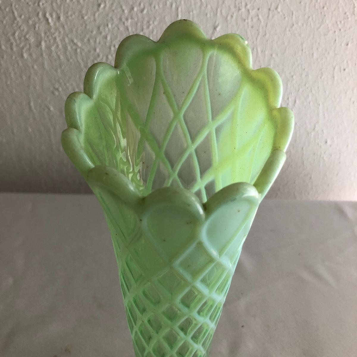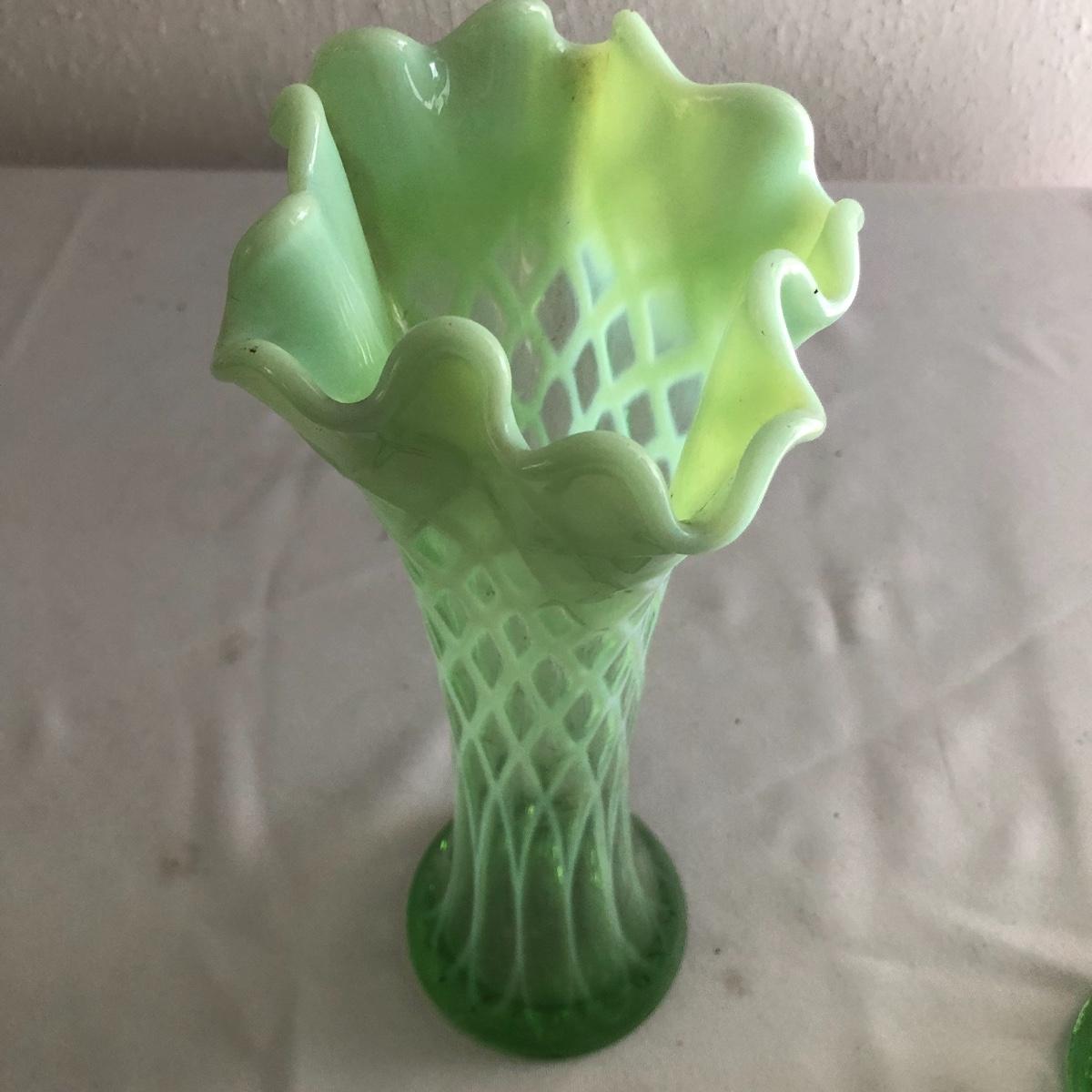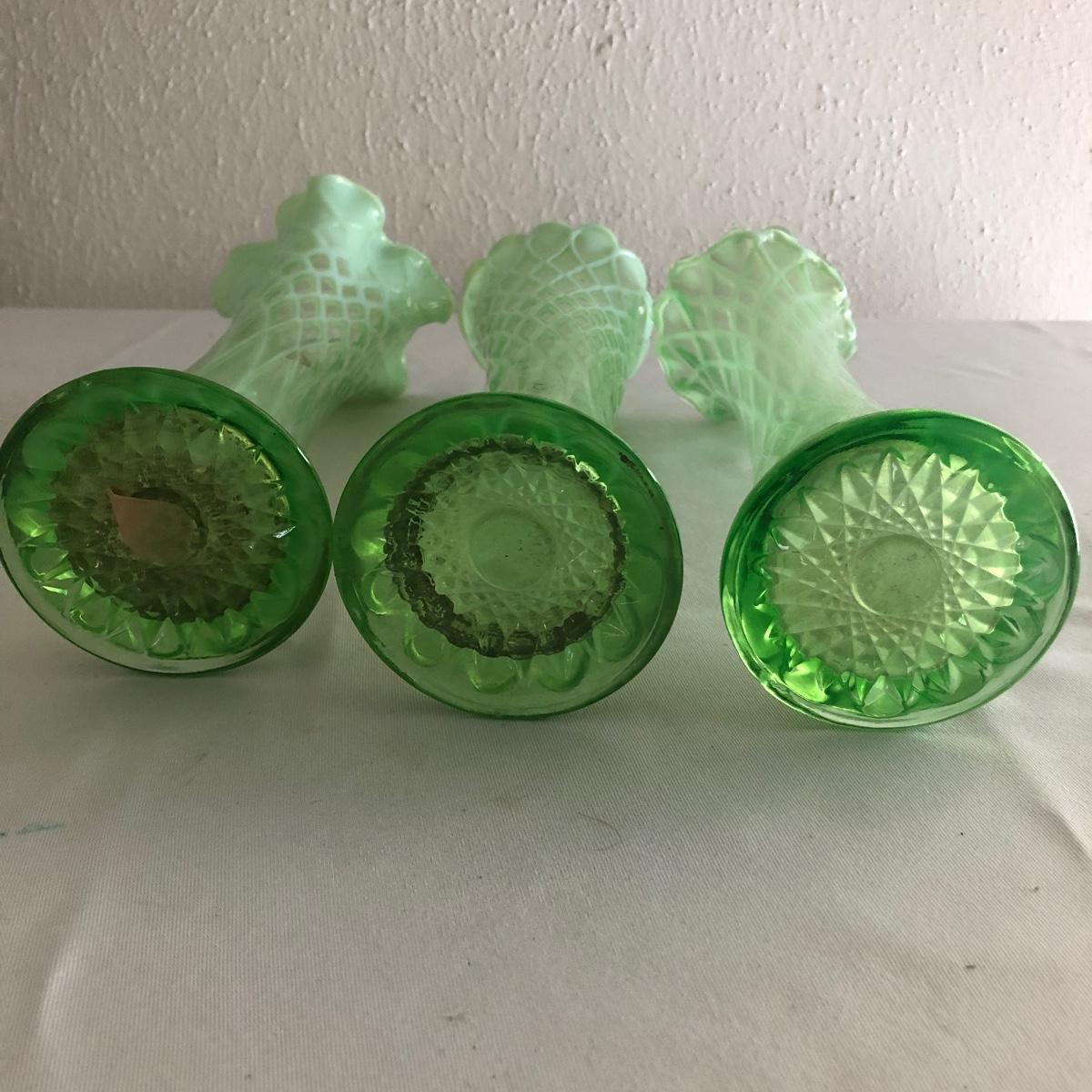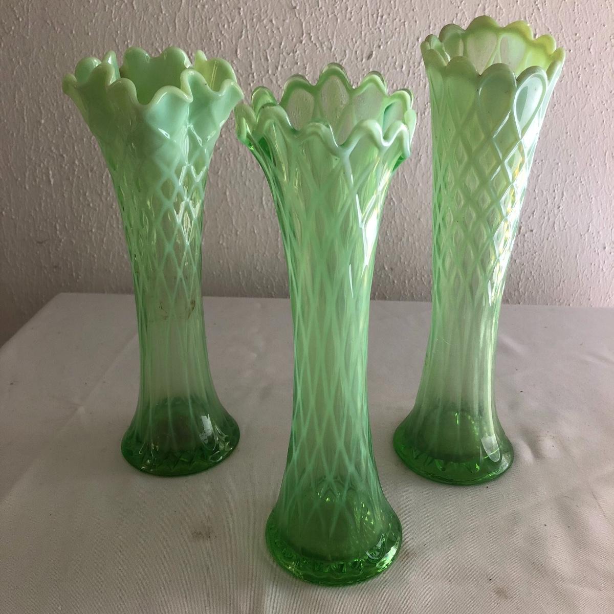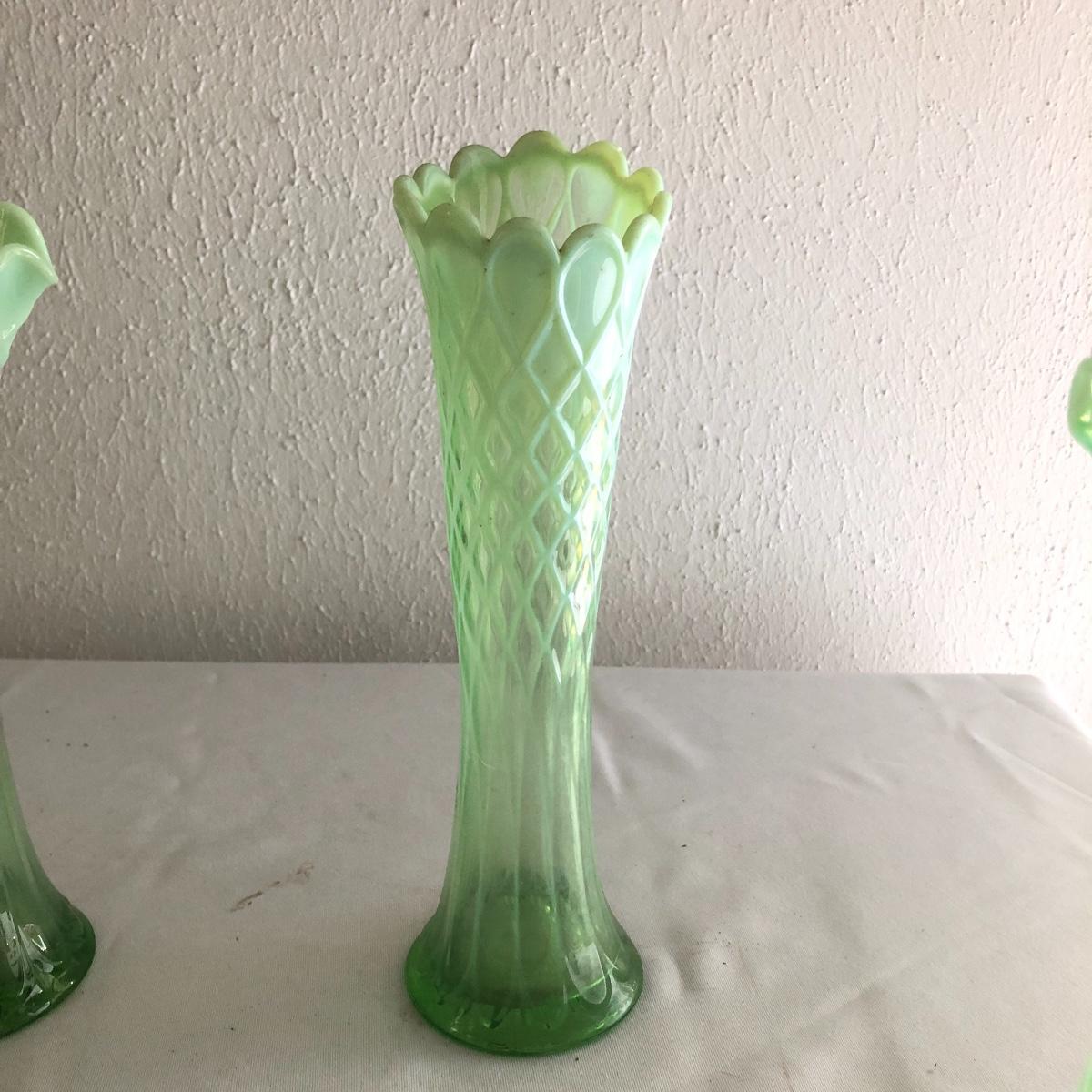 Trio of Green Opalescent Glass Vases ( FR-RG )