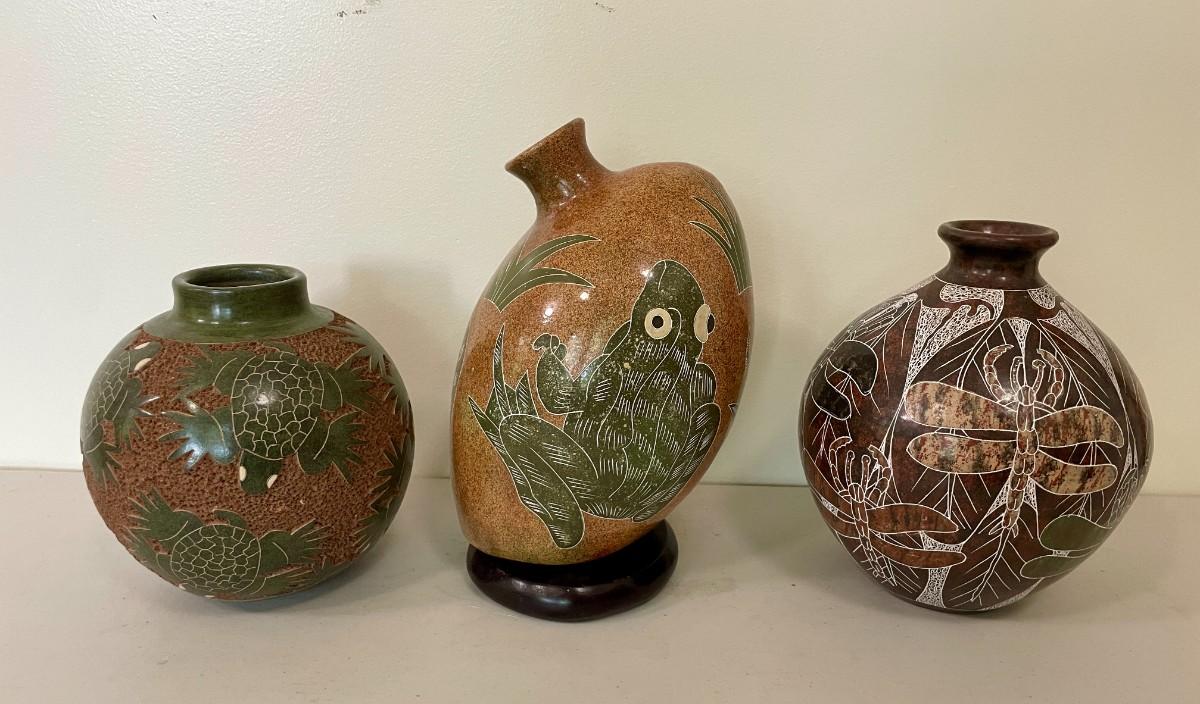 Trio of hand-made Nicaragua vases by Juan Paulino Martinez & Lourdes Martinez