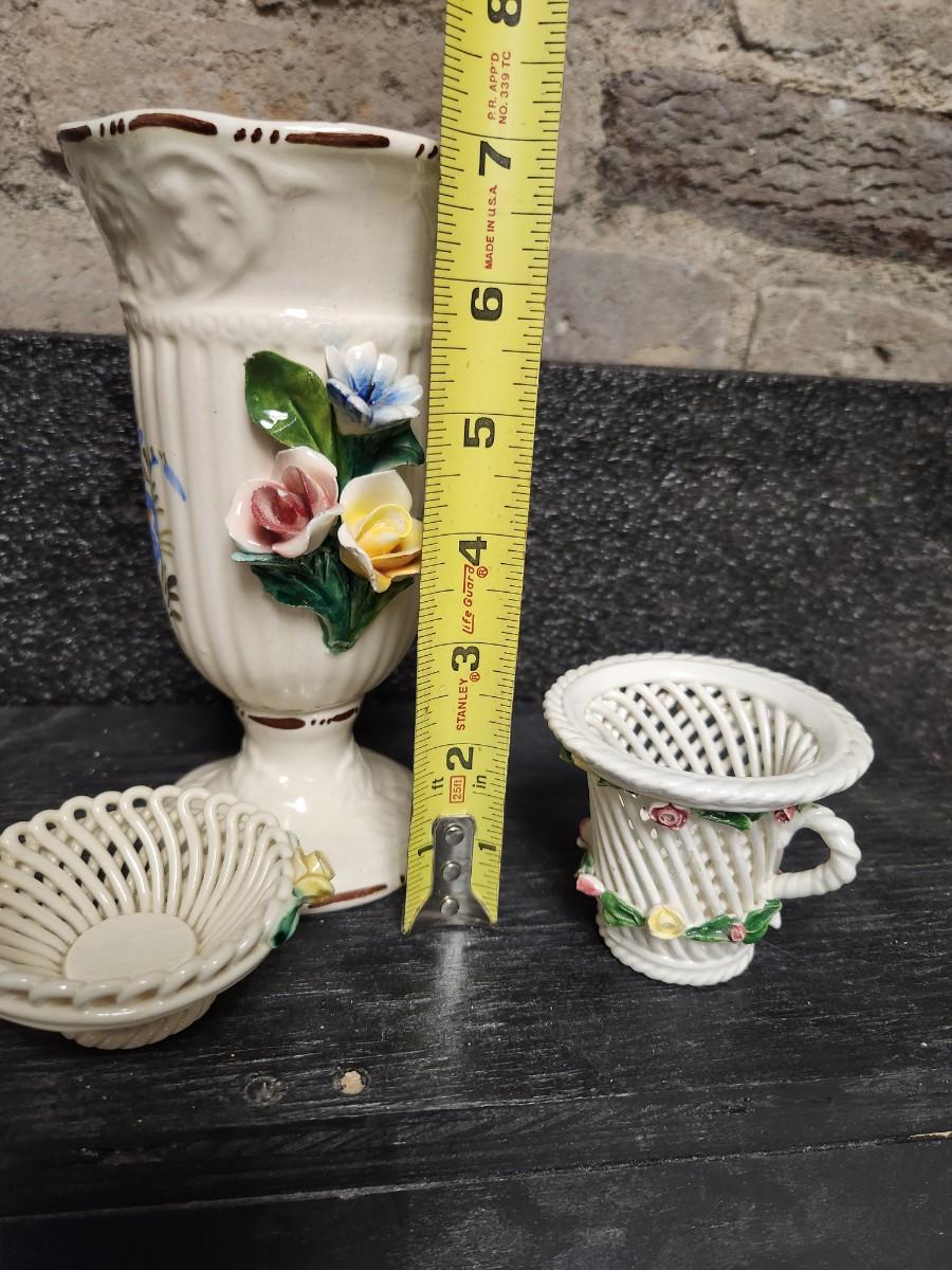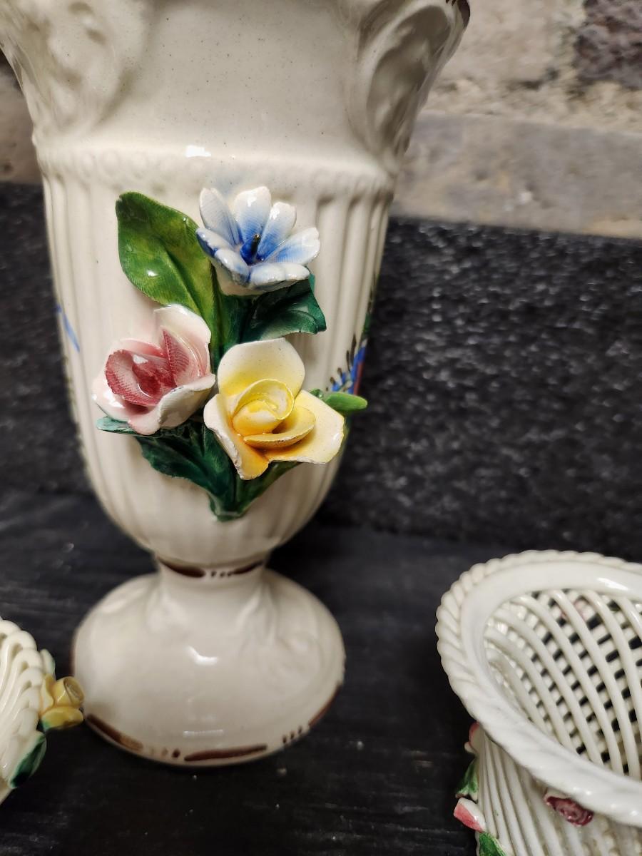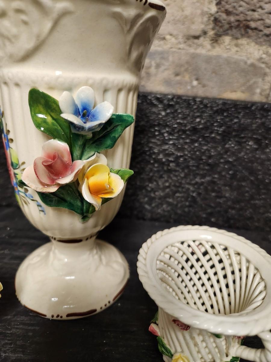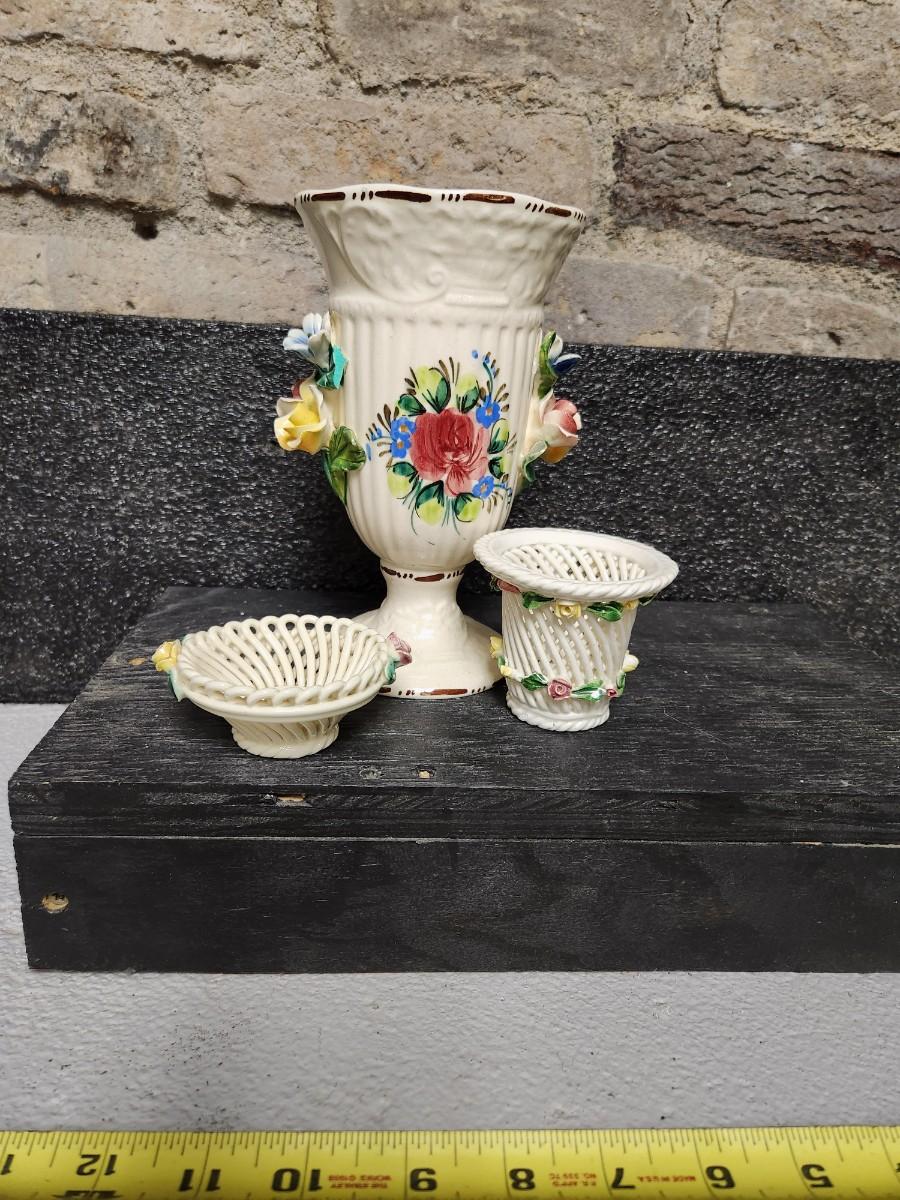 Two "woven" pieces and a nice capidomonte vase.