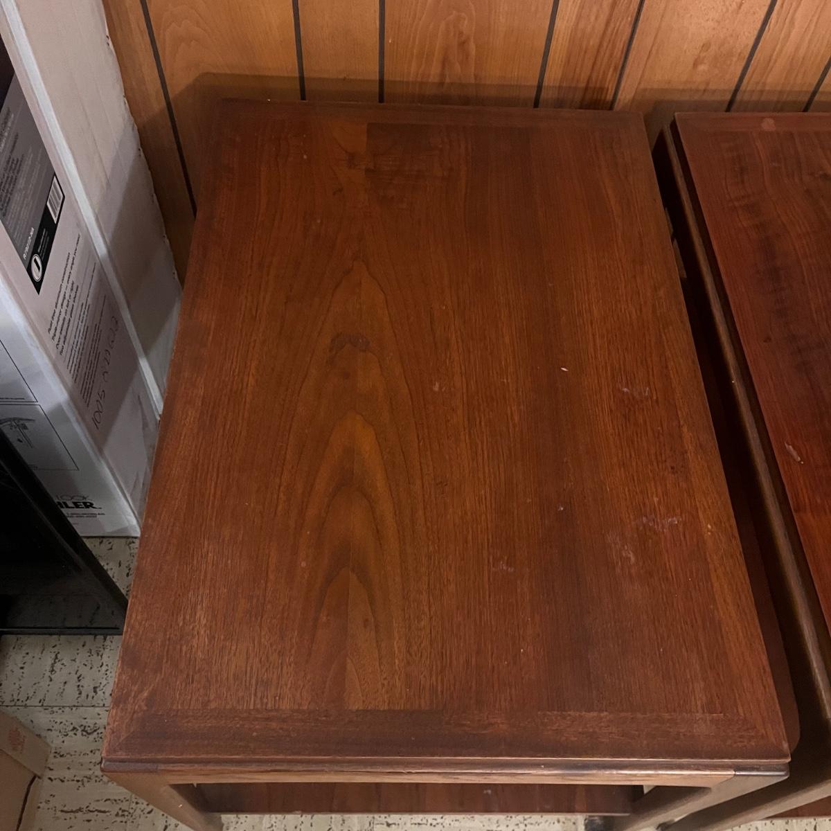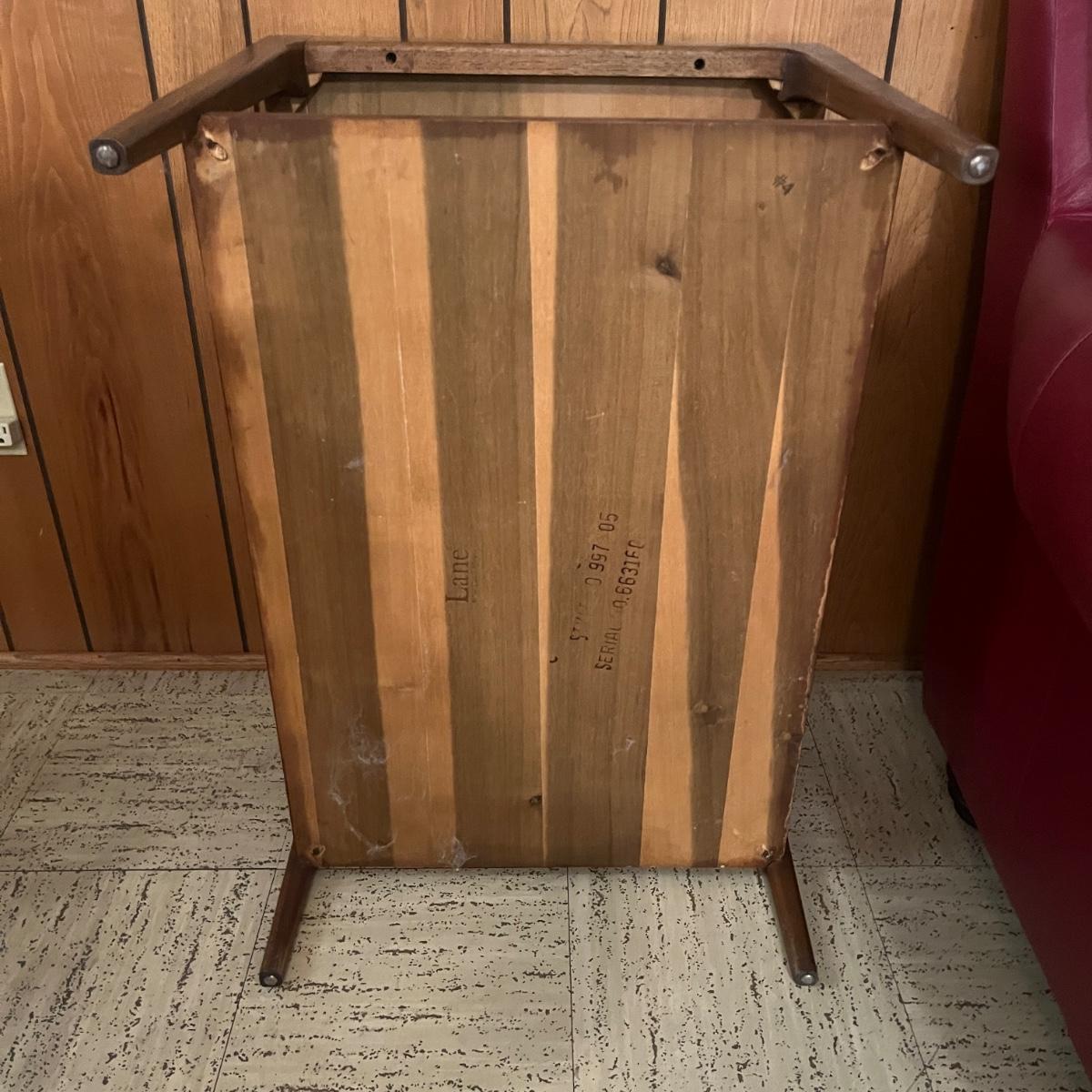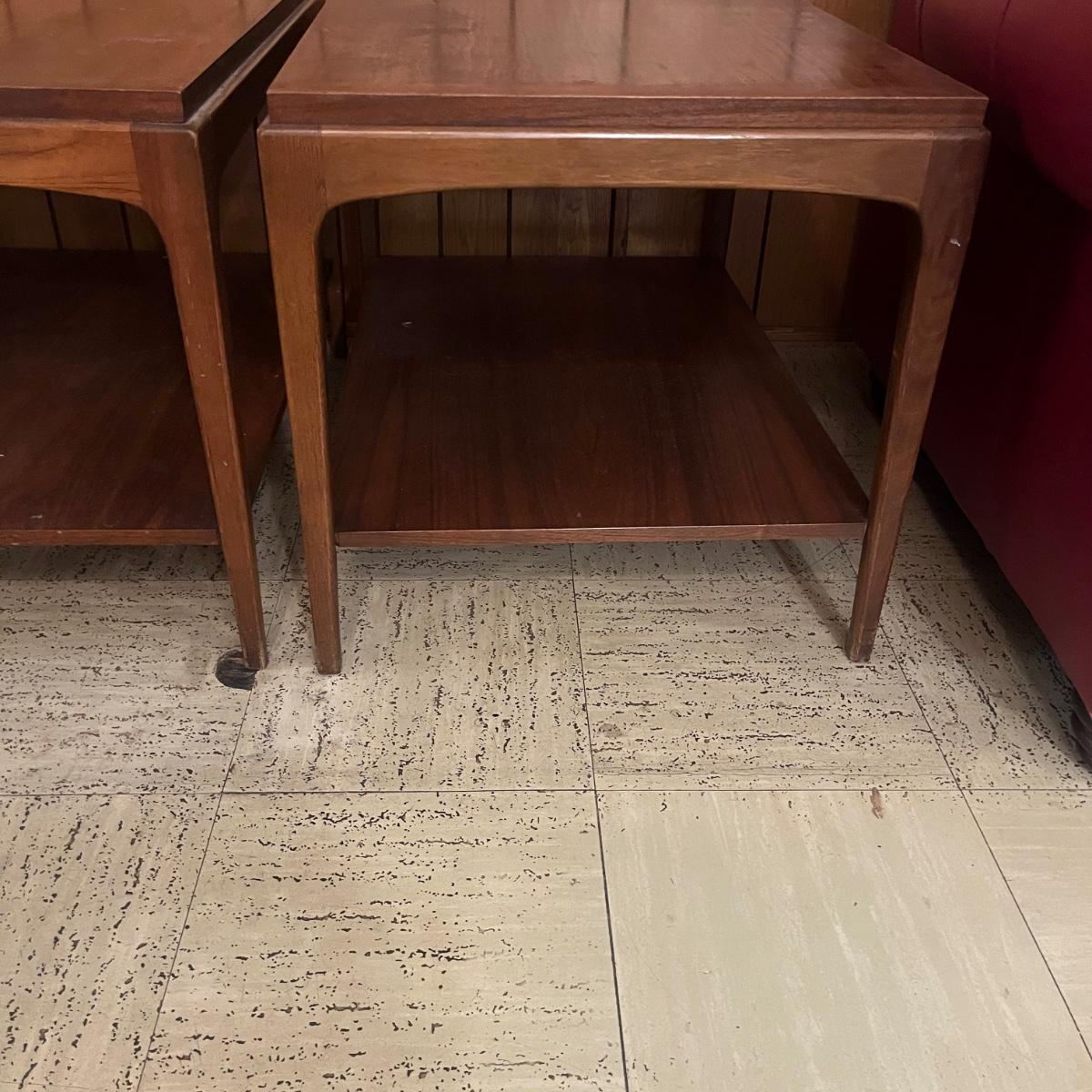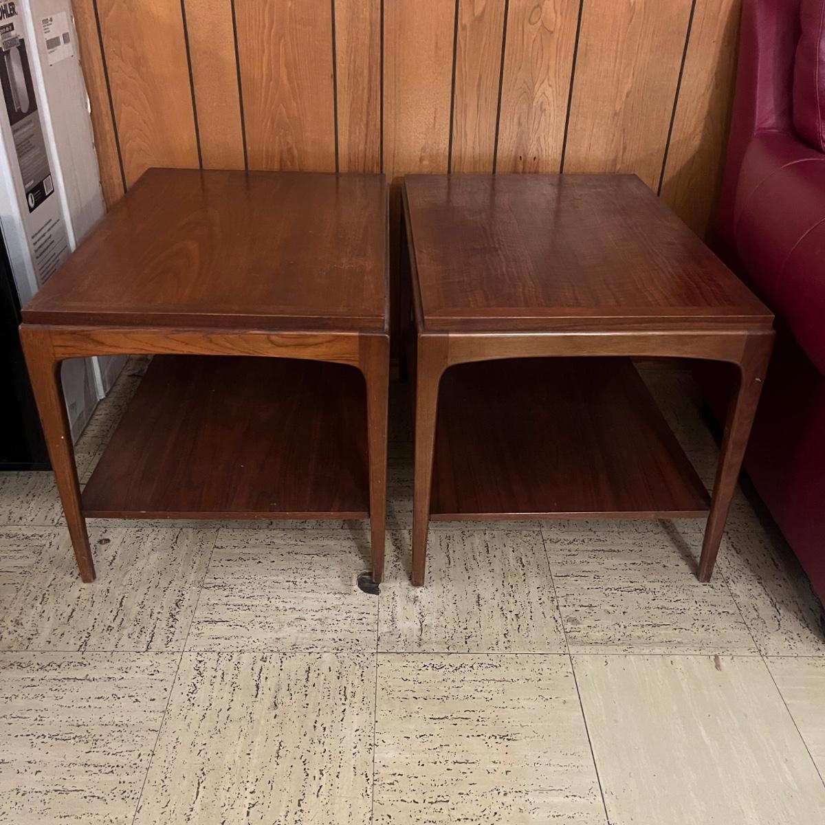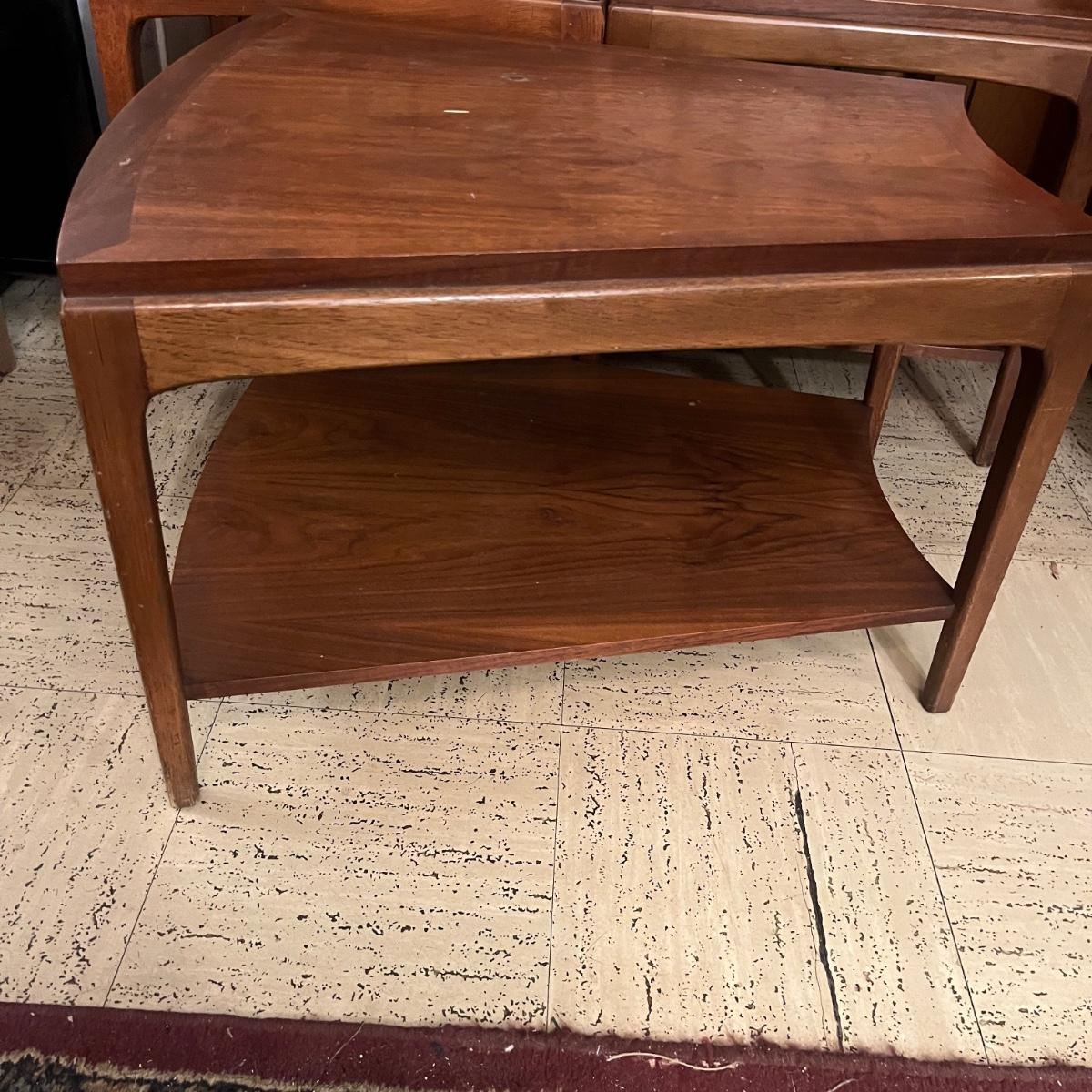 Lot includes a pair of Lane end tables and a pie shaped Lane end table. Rectangular tables measure 20” x 29” x 20”H.