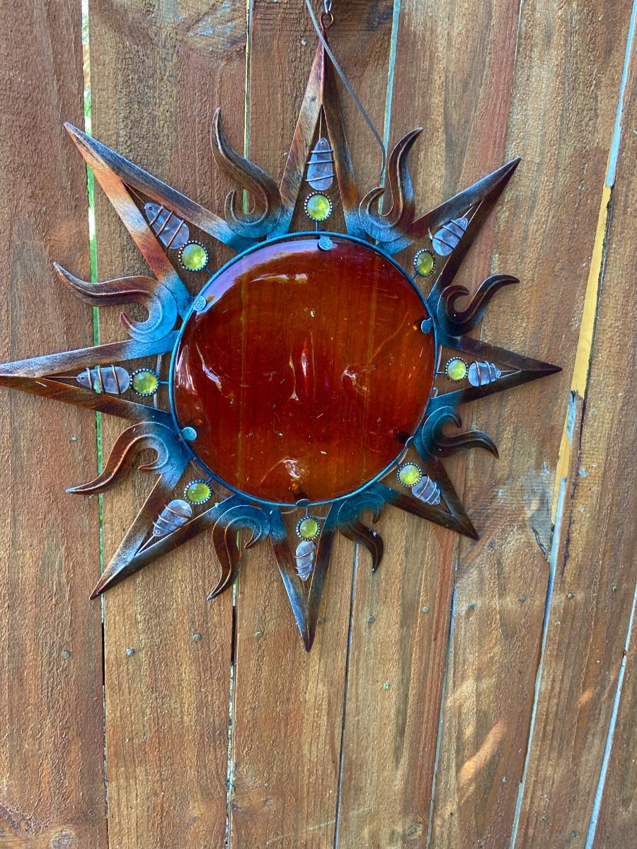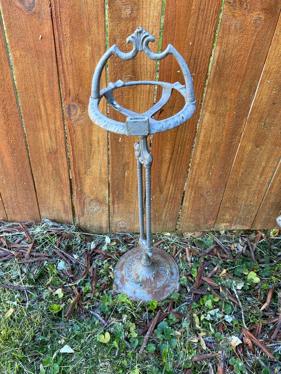 As shown, all items are in good condition. Three items total, including a stained glass and metal suncatcher, a mountable birdbath/birdfeeder, and decorative metal stand.