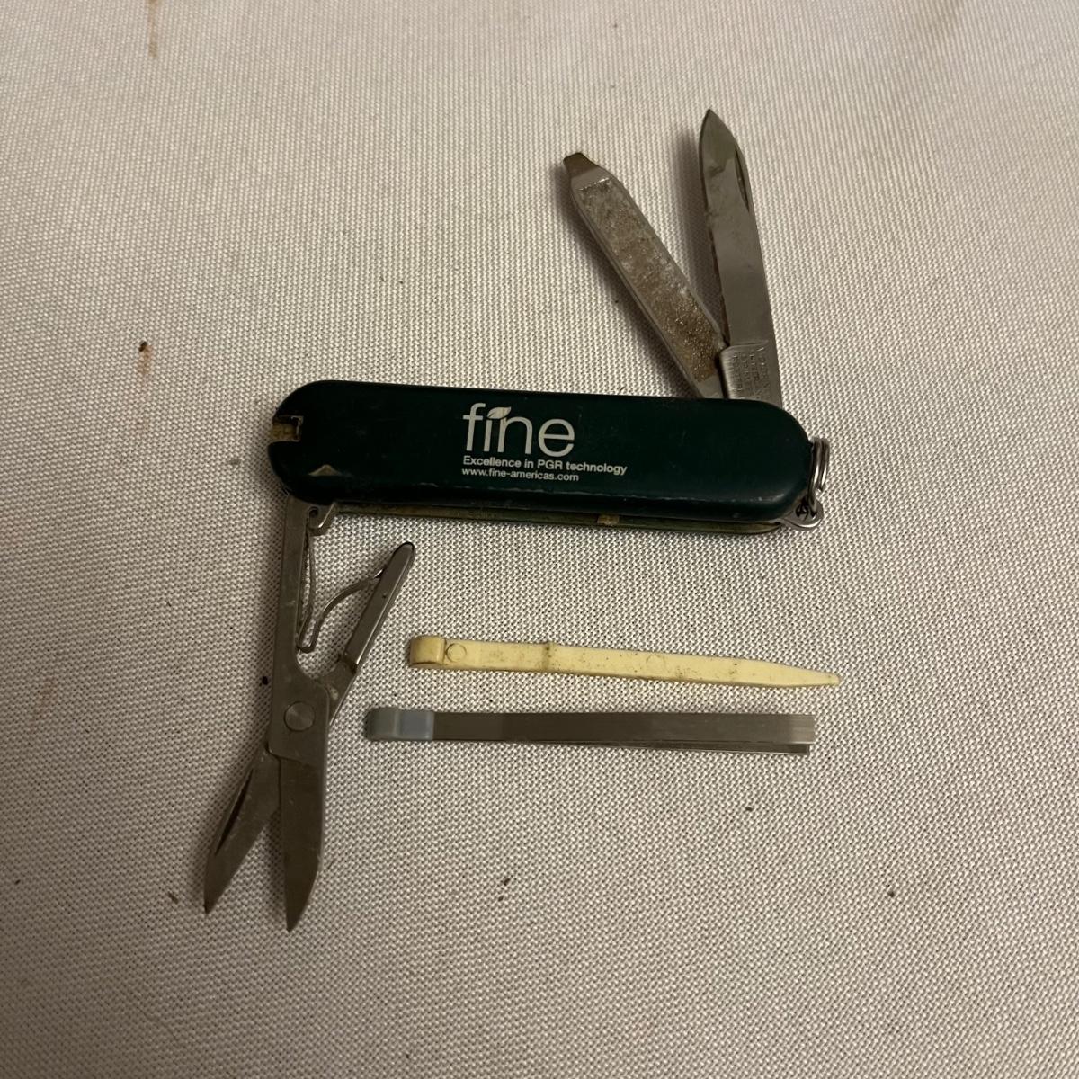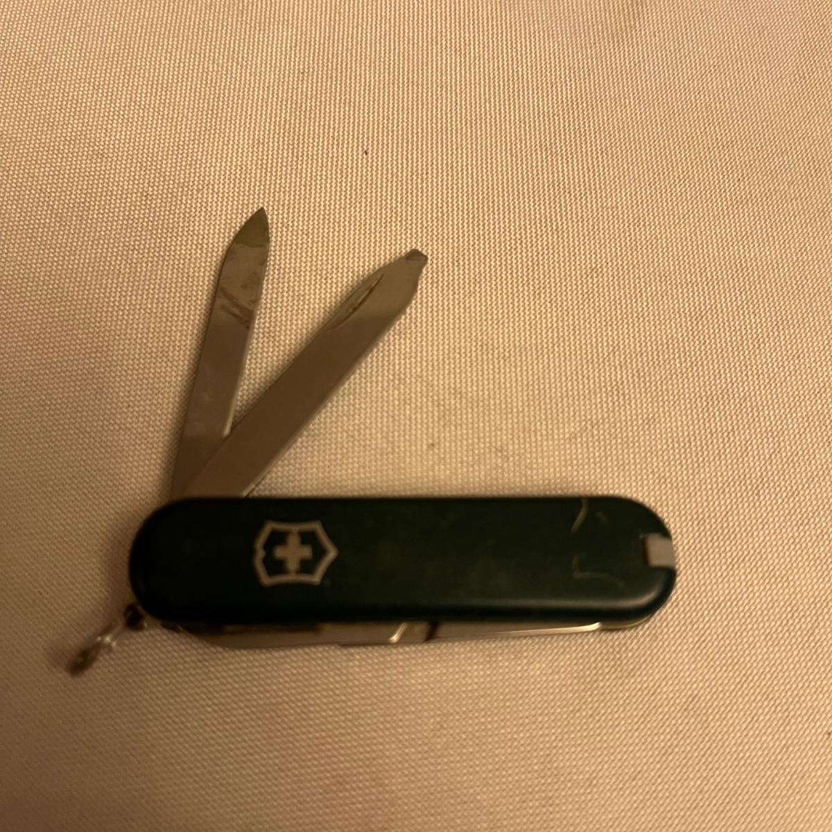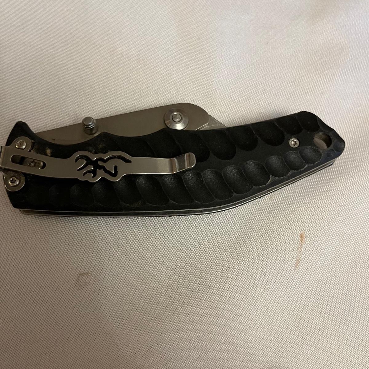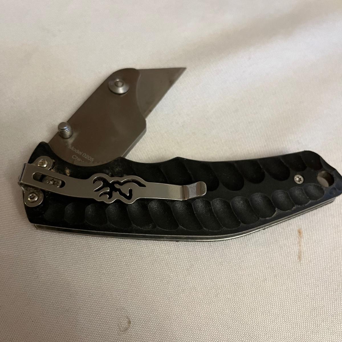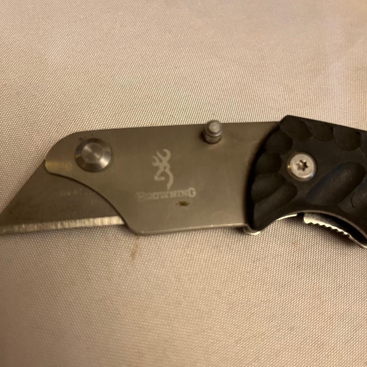 Lot includes a Browning razor blade knife, Victornox Swiss Army knife, and a Super Automatic knife that measures 8” when open.