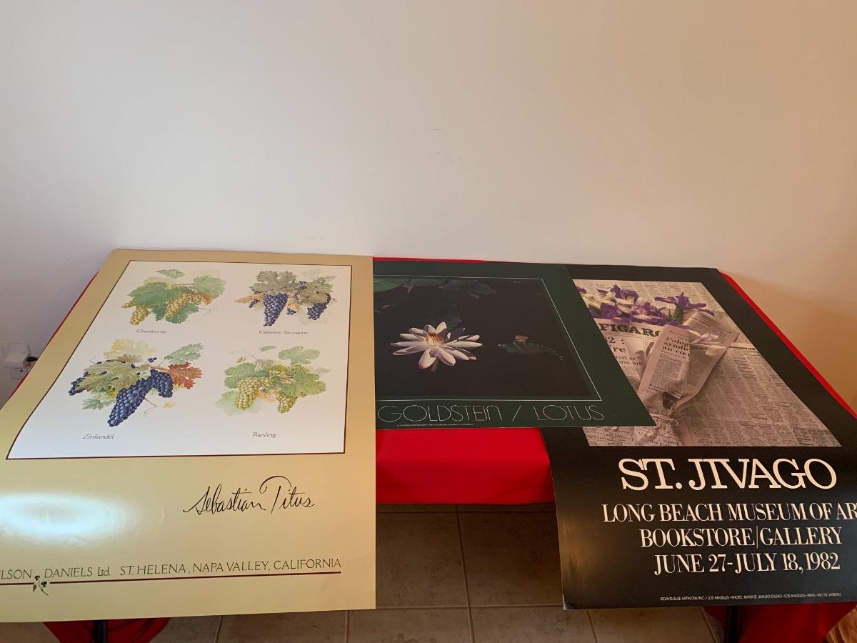 Prints from Edward Goldstein 1983, Sebastian Titus wine print and St Jivago 1981 print. All with some wear to edges.