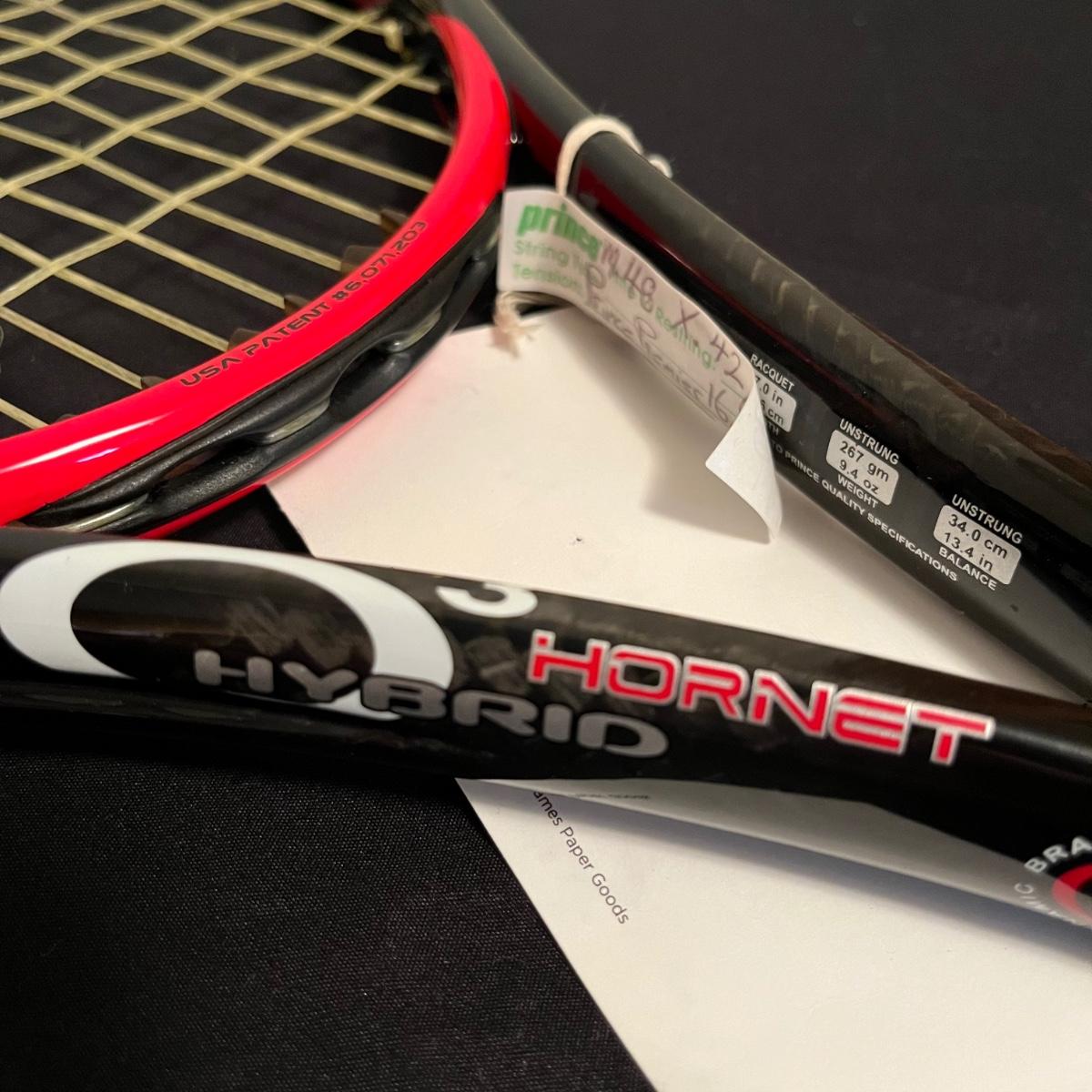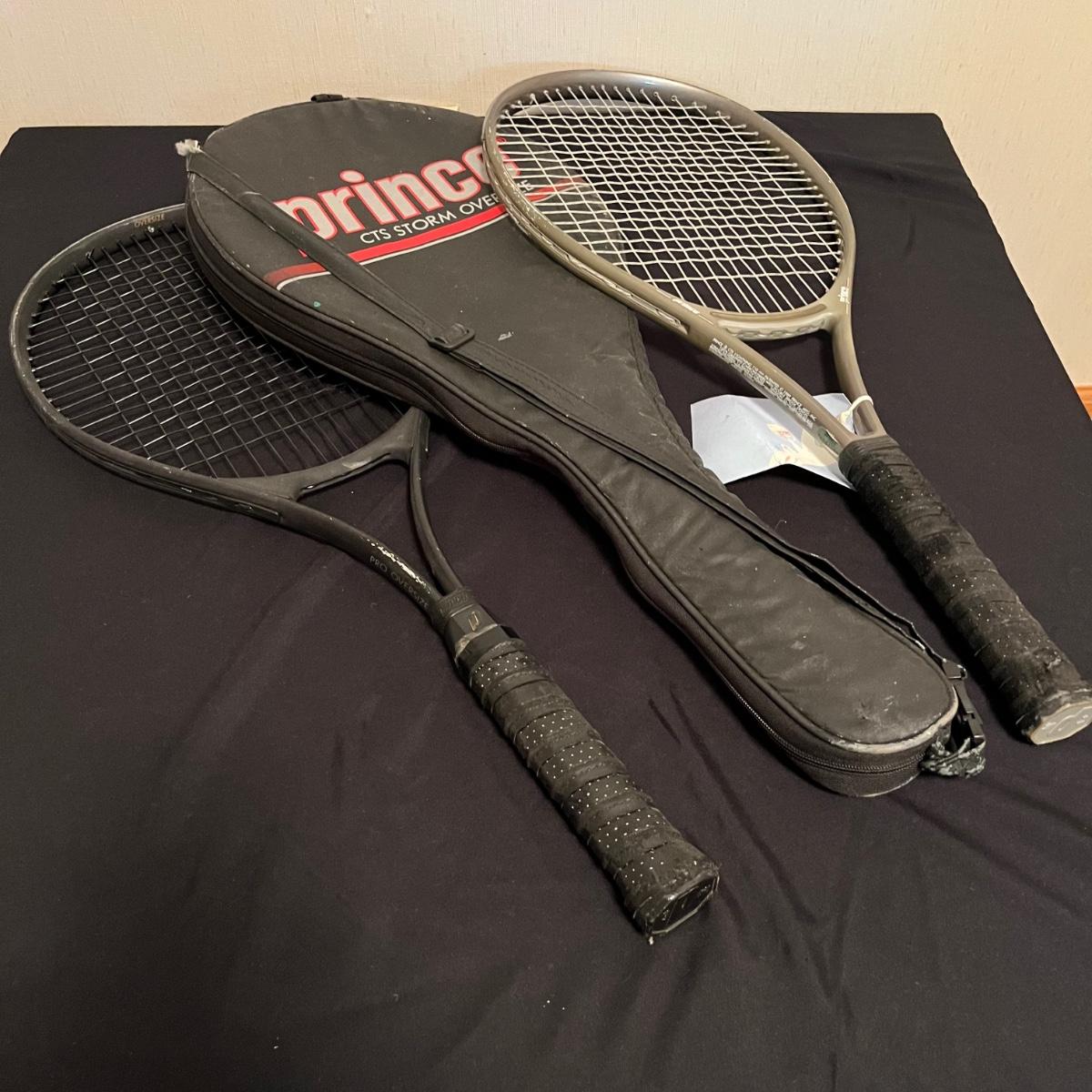 This trio of Prince rackets includes a Hornet Hybrid, CTS Lightning 110 and Pro Oversize. One carry case.