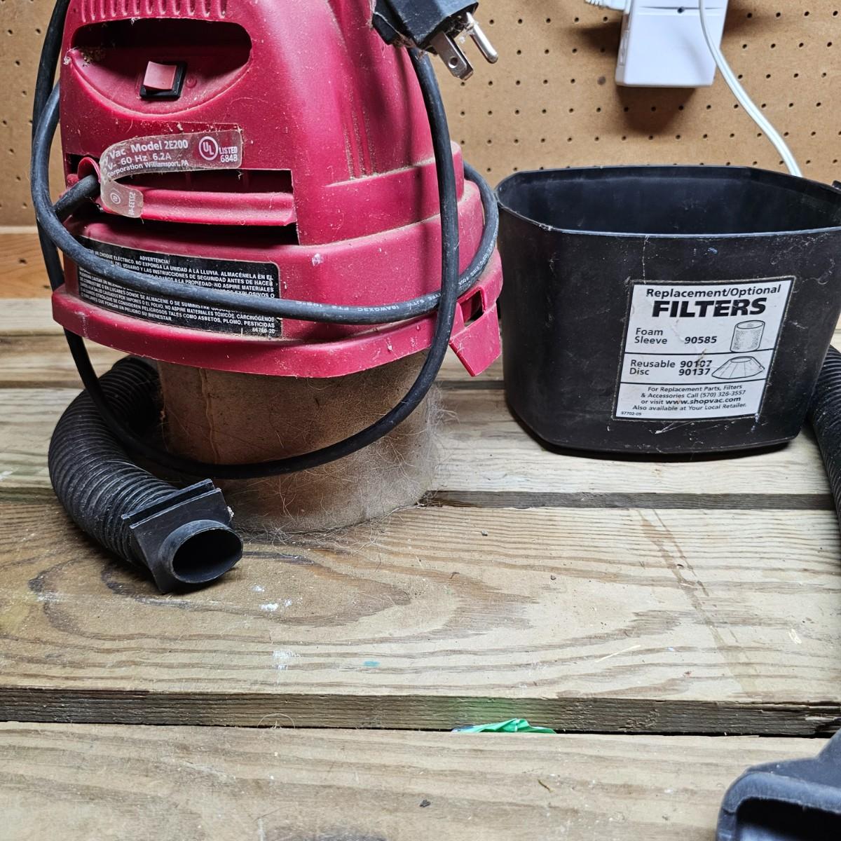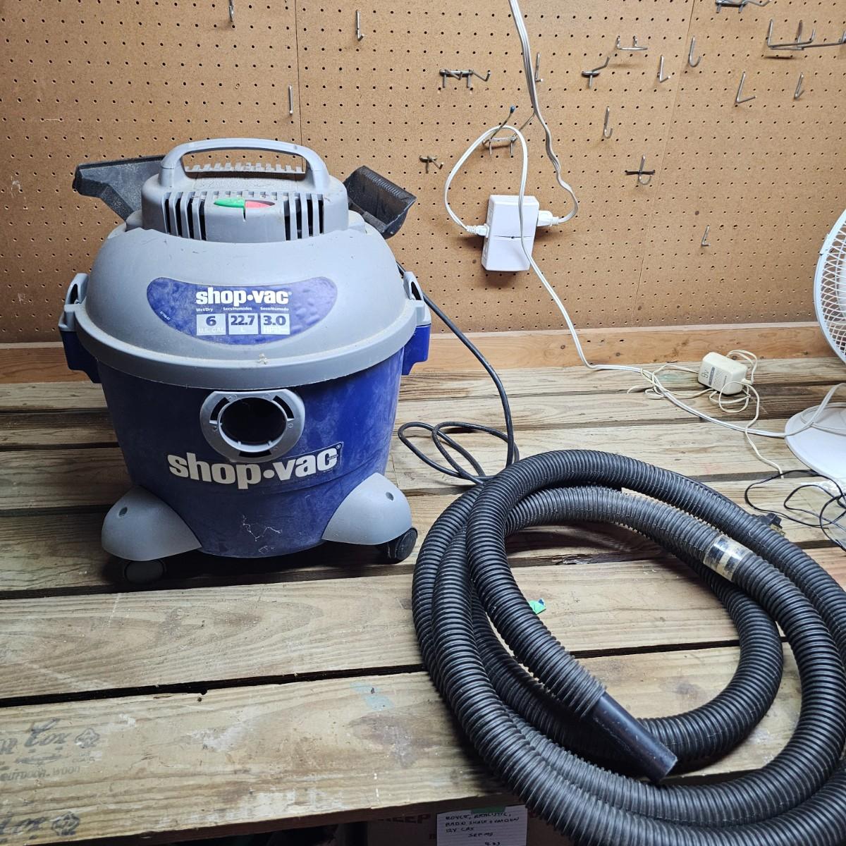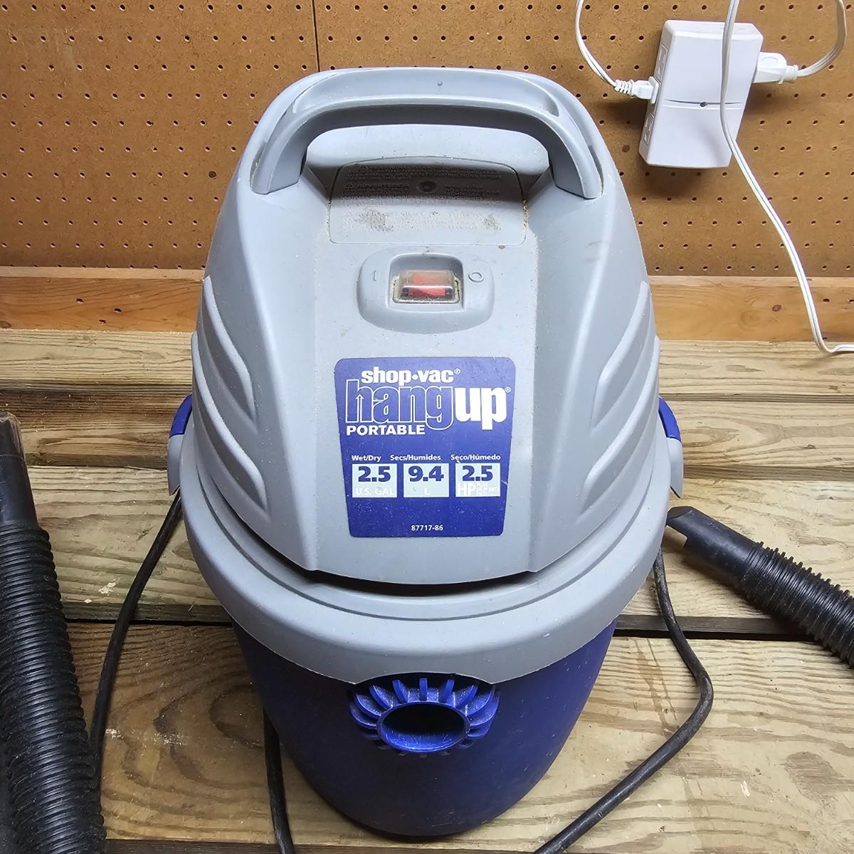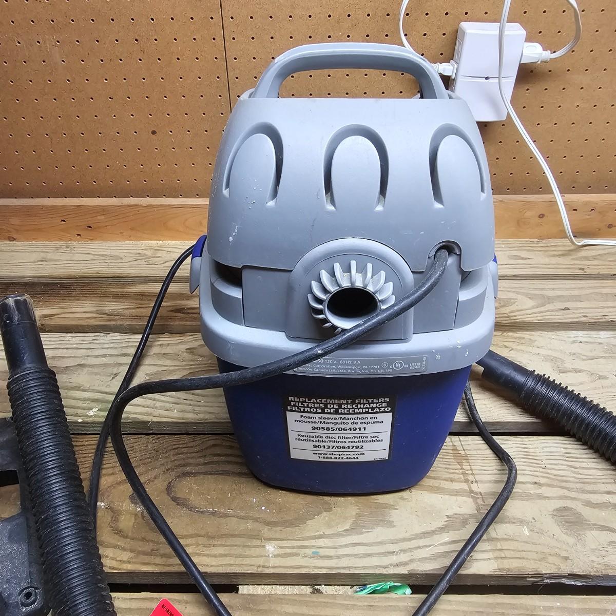 Three different sizes of Shop Vac brand vacuums. Two hang up style and one floor vac. Each has it's own hose and there are some additional accessories. Smallest item is a mini hang-up, measures 9" x 10" x 13"H, has hanging bracket for wall mount. Mid size unit is also wall mount, is 2.5gal capacity, measures 10 " x 13" x 15" H. Largest unit is a 6gal capacity, measures 16" x 19" x 19"H, has 14 foot hose. There arecalso four 14" tubes for extended reach. All units powered on when plugged in. See photos for details. Local pickup only.