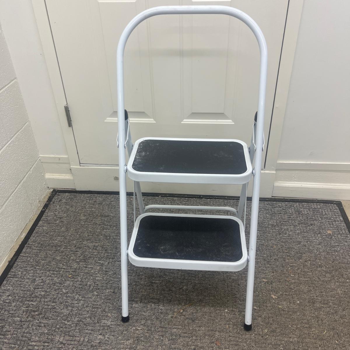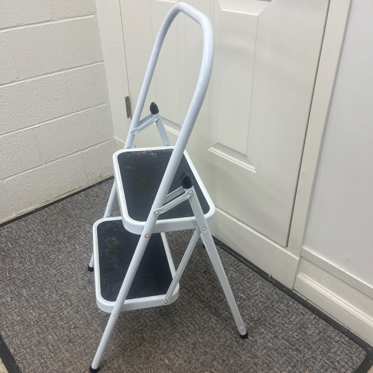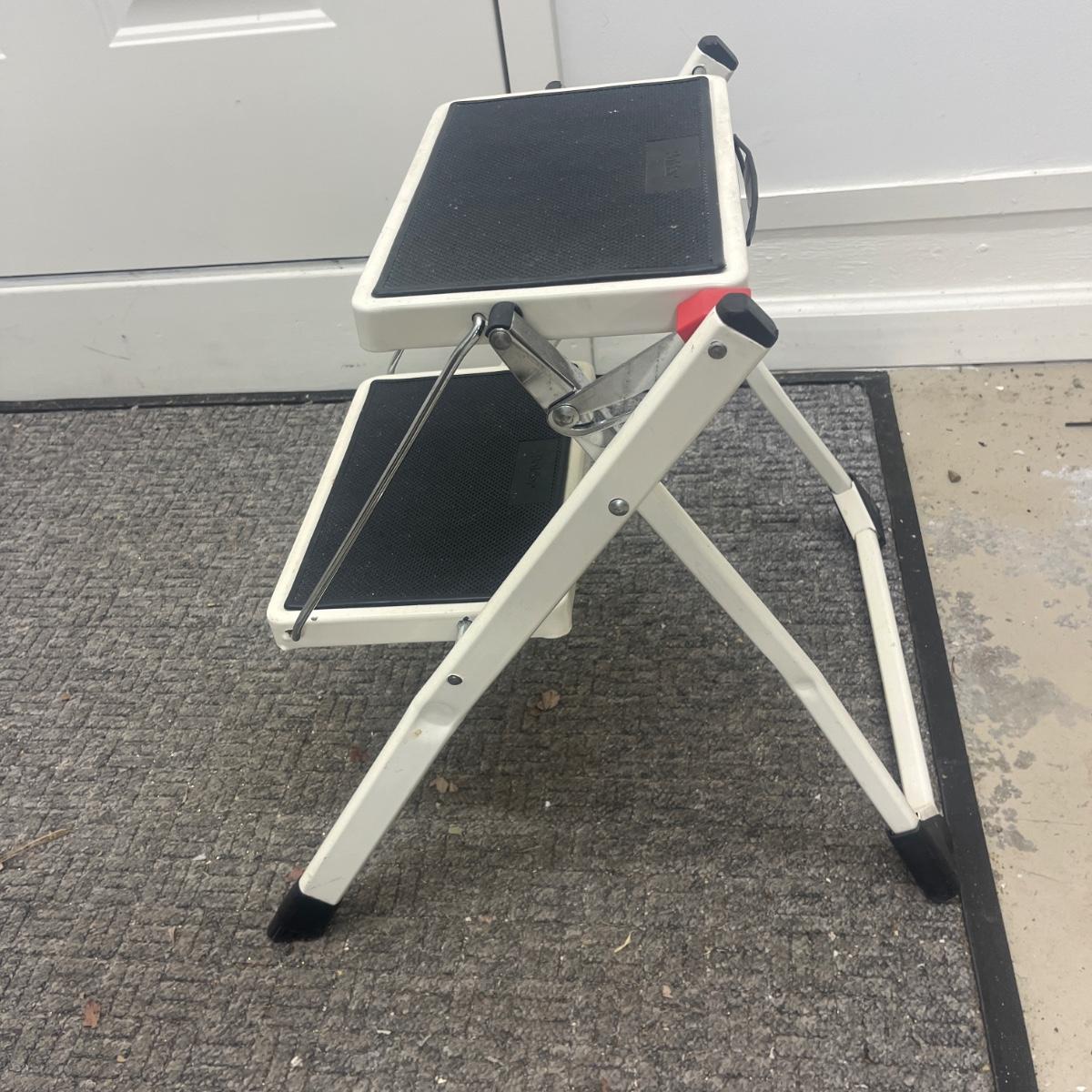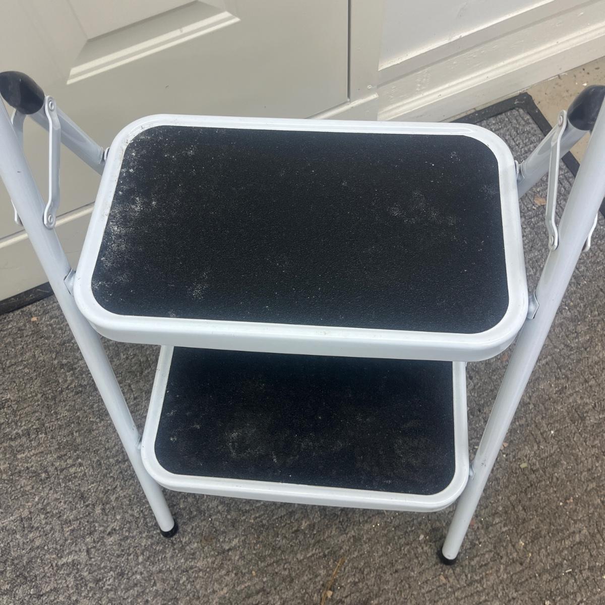 Lot includes a Cosco step stool, Polder step stool and a large unbranded step stool. Largest step stool measures 17” x 27” x 45”H.