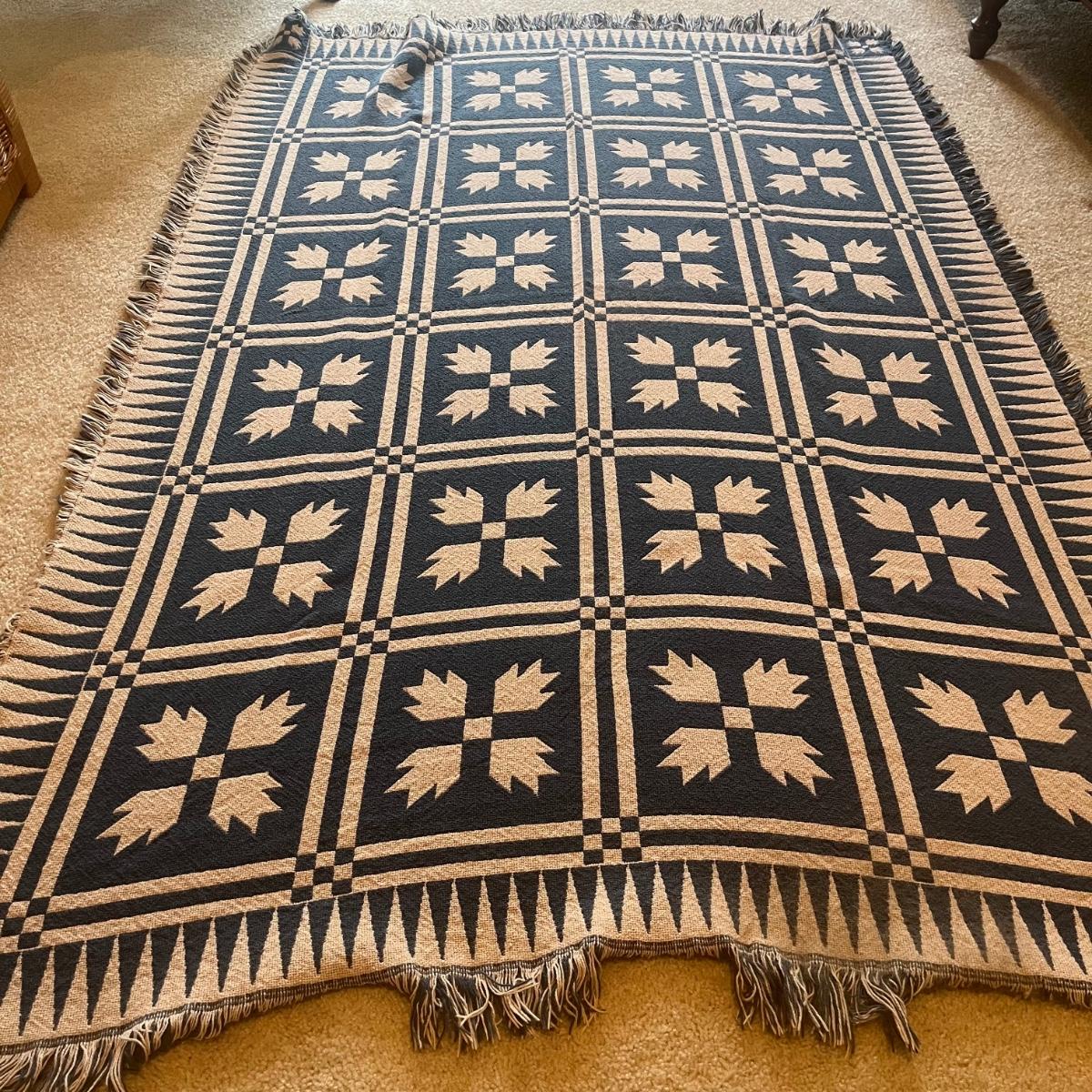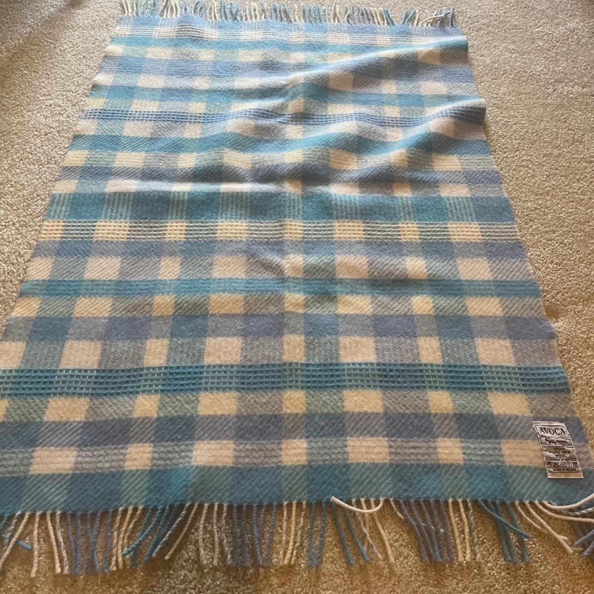 Lot includes an Avoca brand 100 pure new wool throw, a Churchill brand hand woven throw and an unmarked woven throw with folk print that appear to be a cotton woven and measures 46” x 68”.