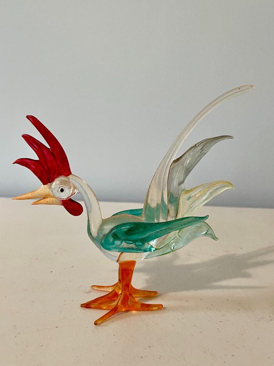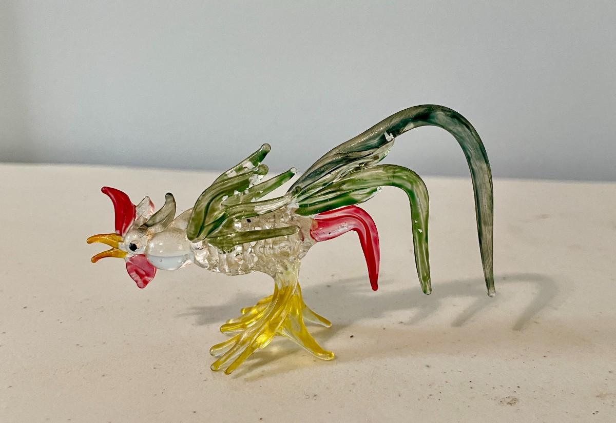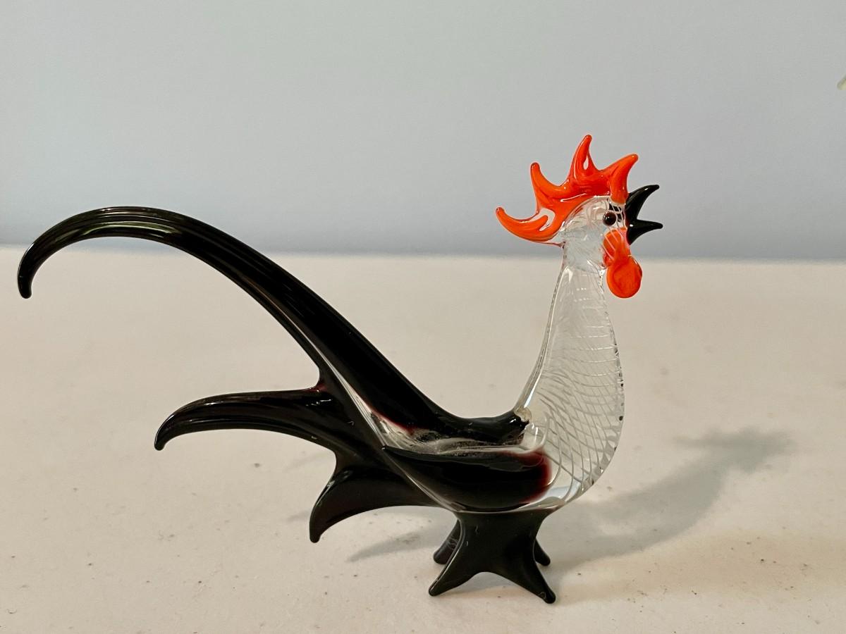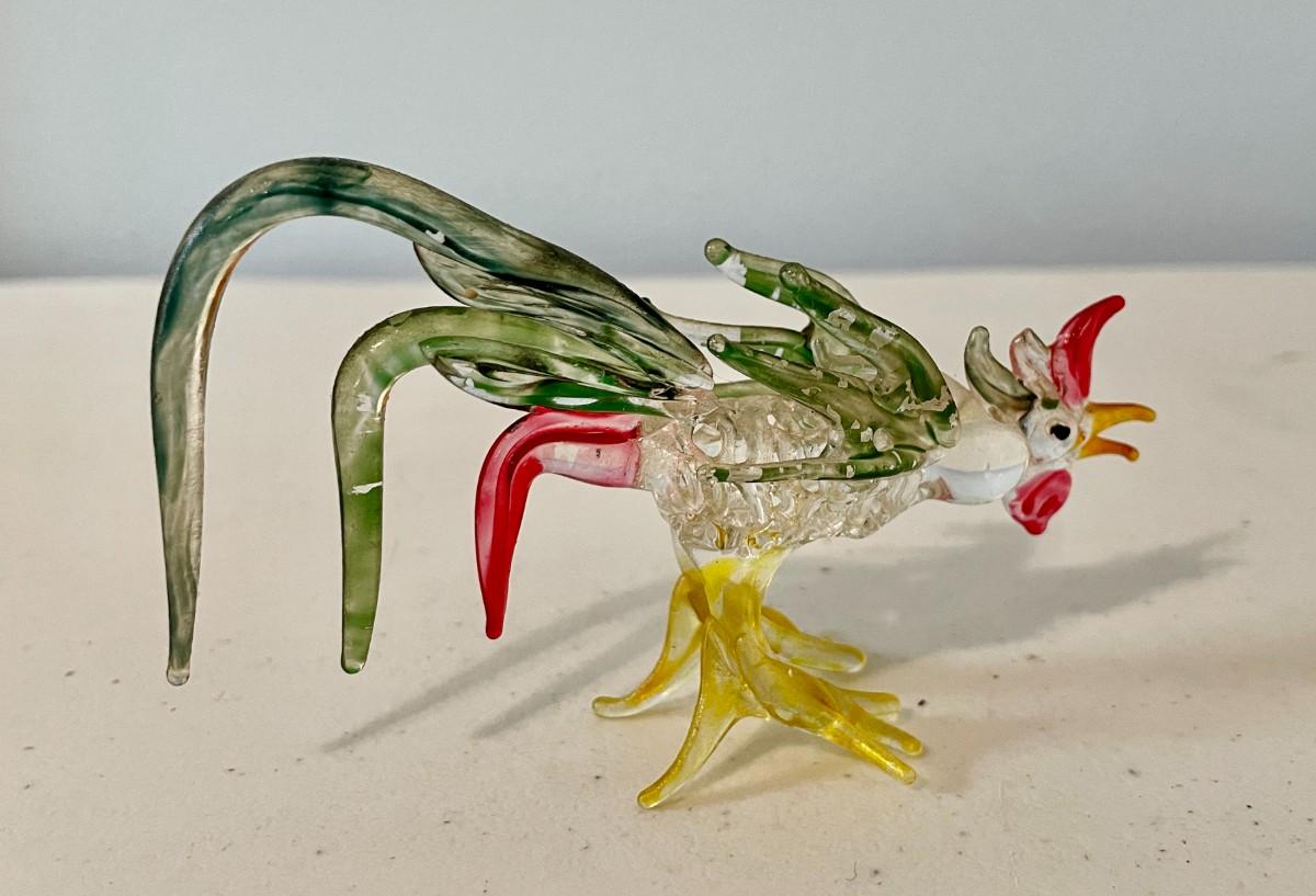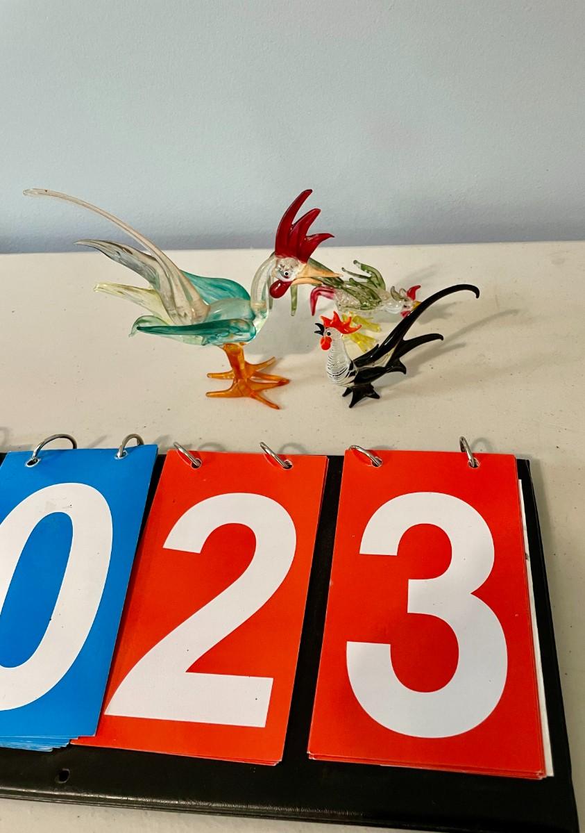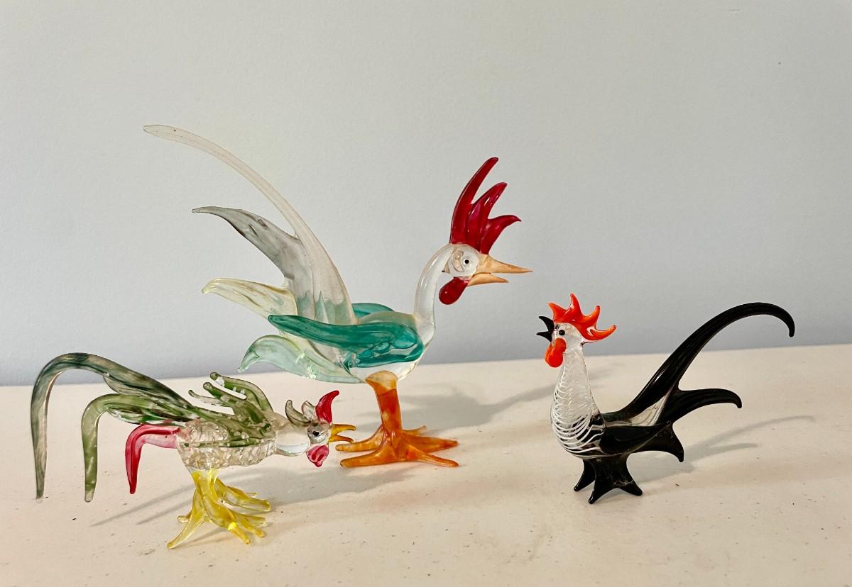 Trio of vintage glass roosters