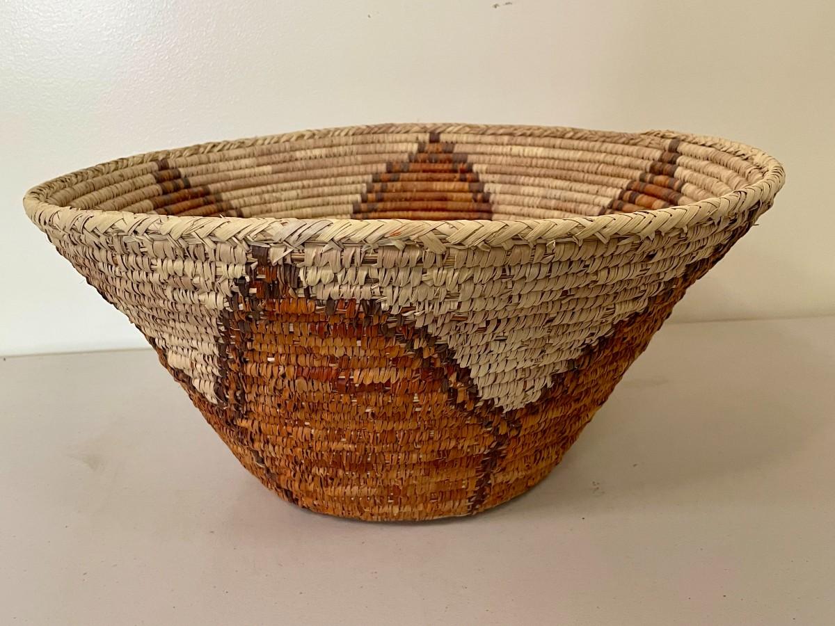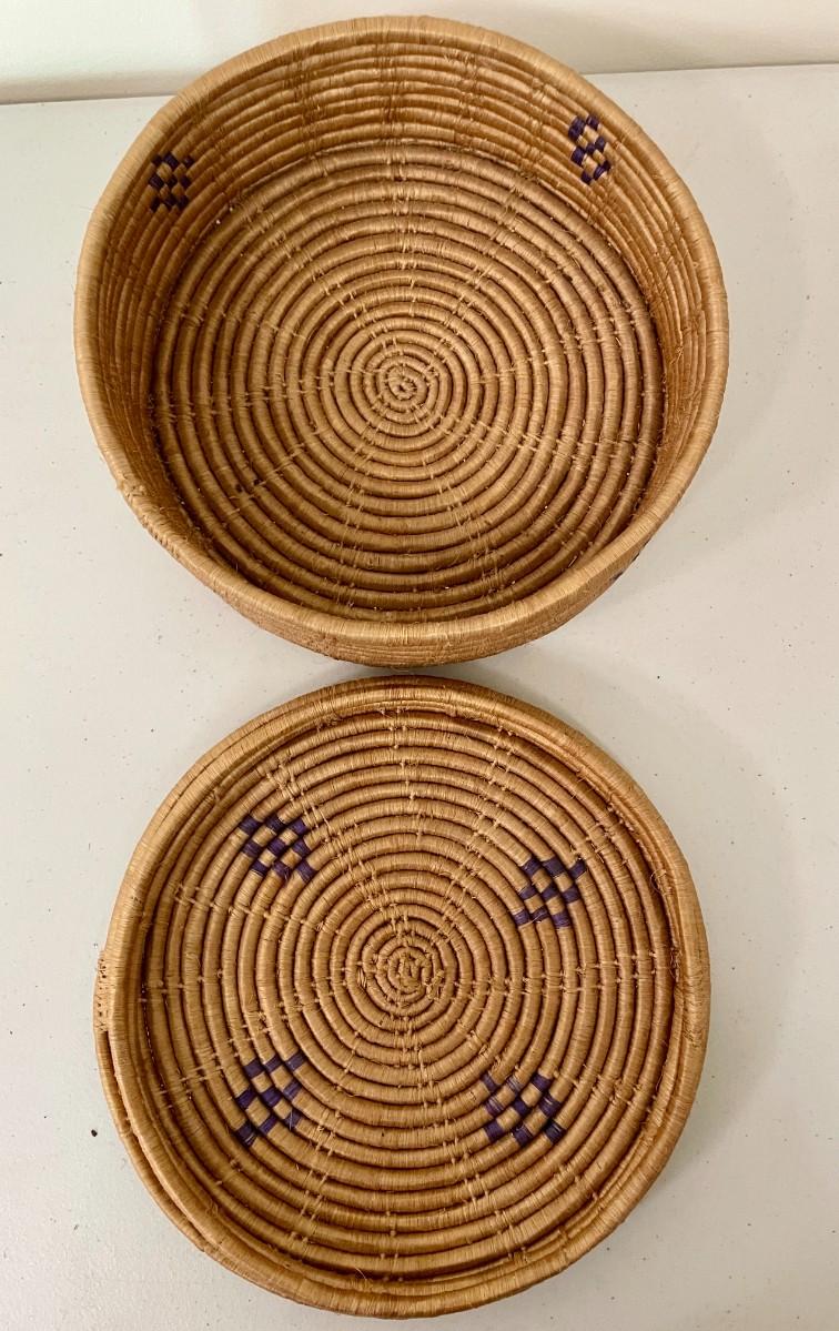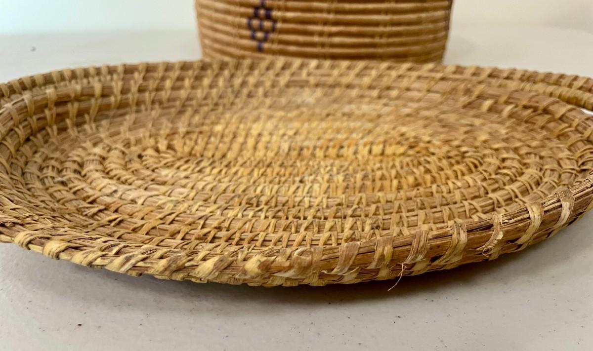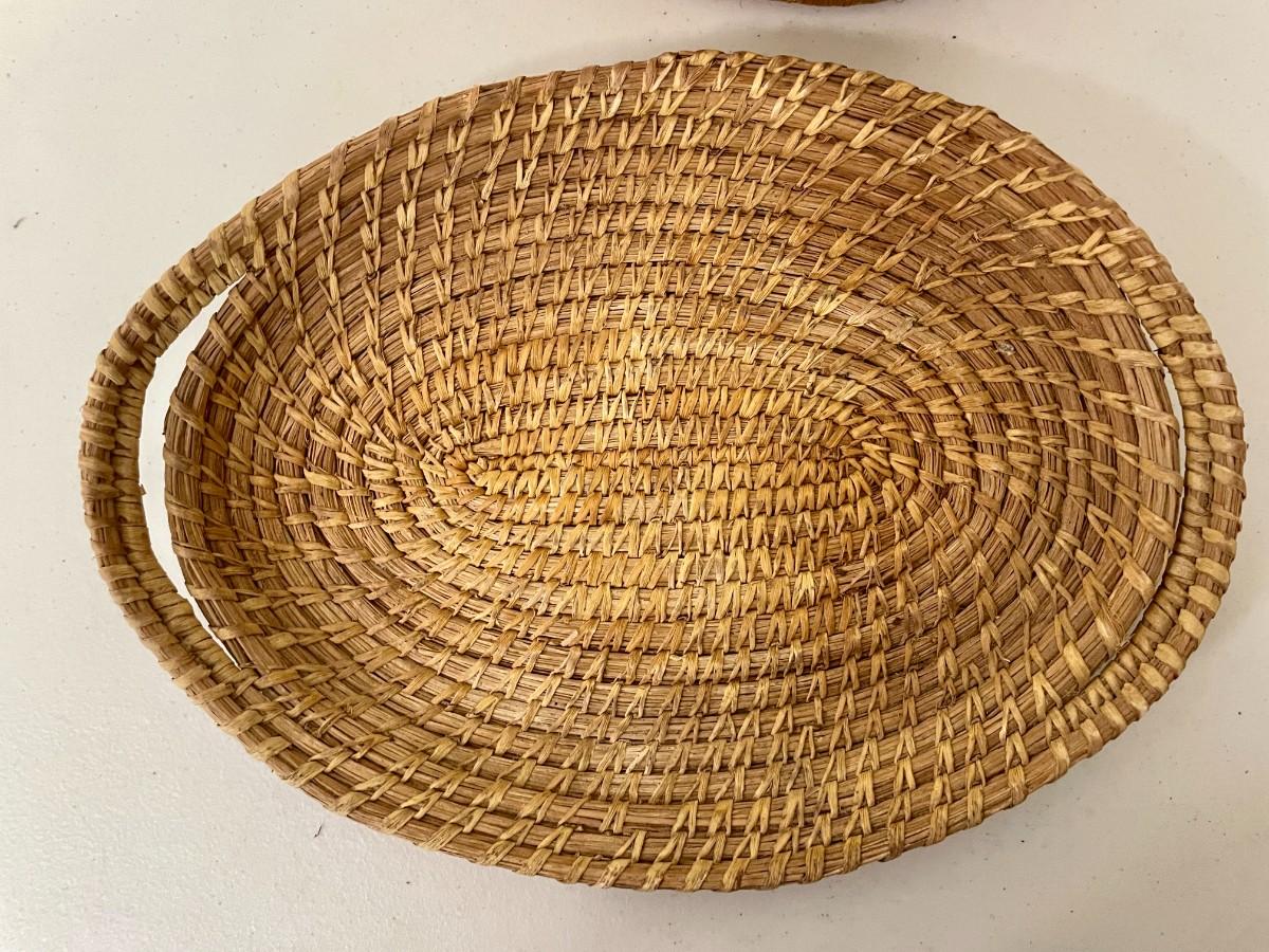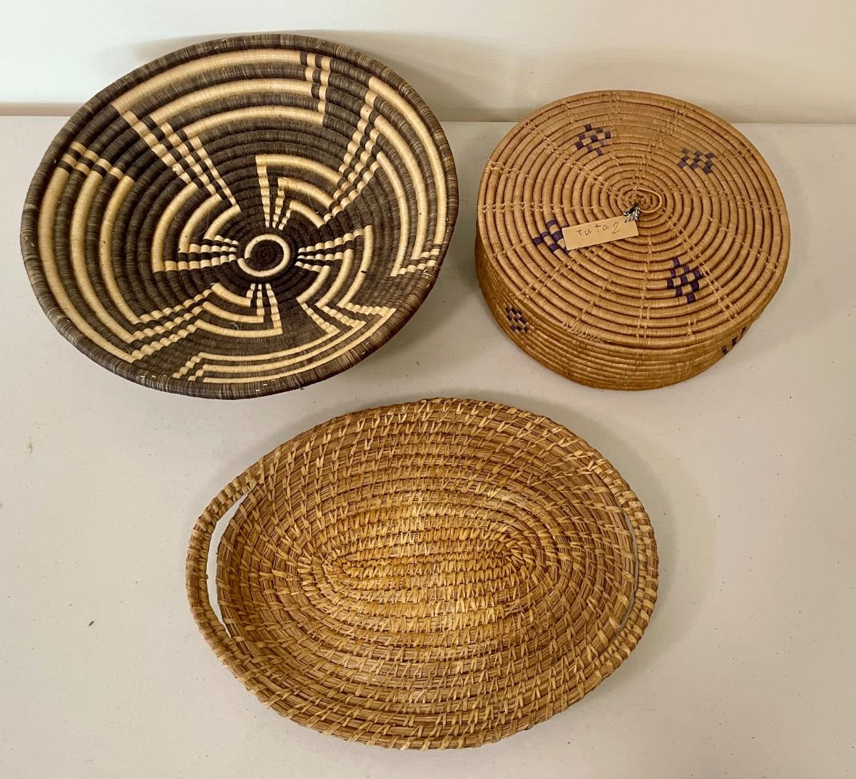 Trio of vintage hand-woven Gullah, Pima sweetgrass baskets