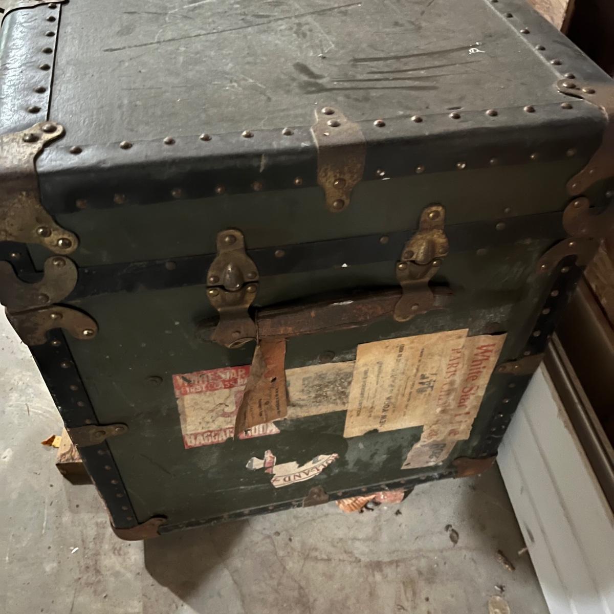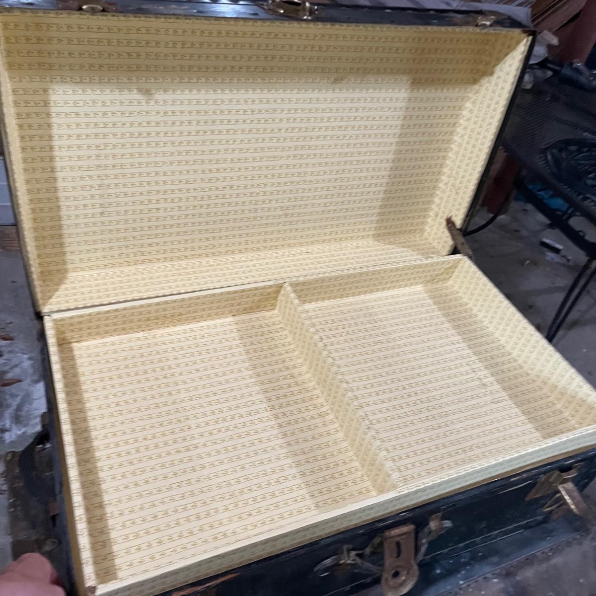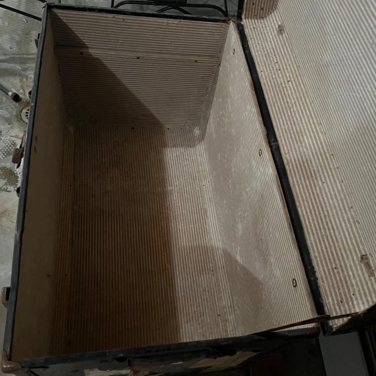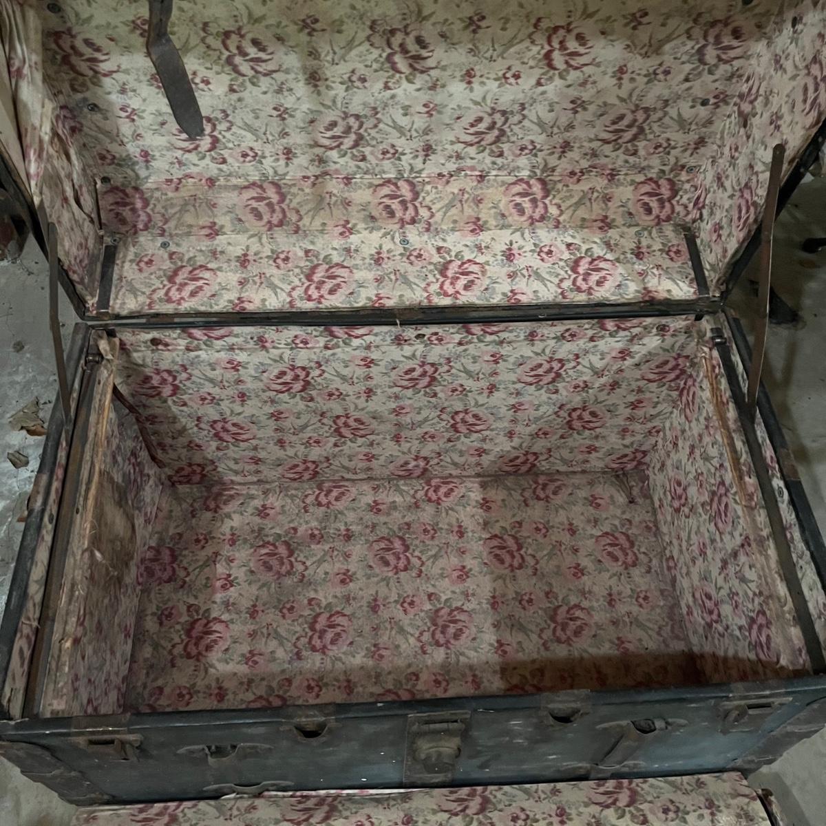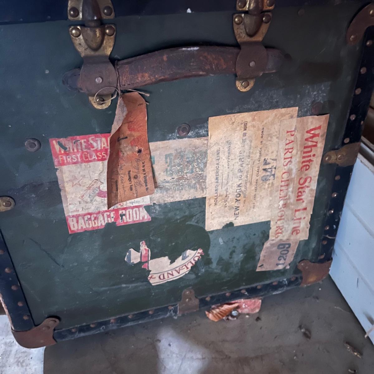 Lot includes one Overland brand trunk, one round-edged trunk with inserts, and one square topped trunk with insert. Overland trunk has wear on bottom and all three trunks have the smell of mildew, so you will want to air them out.