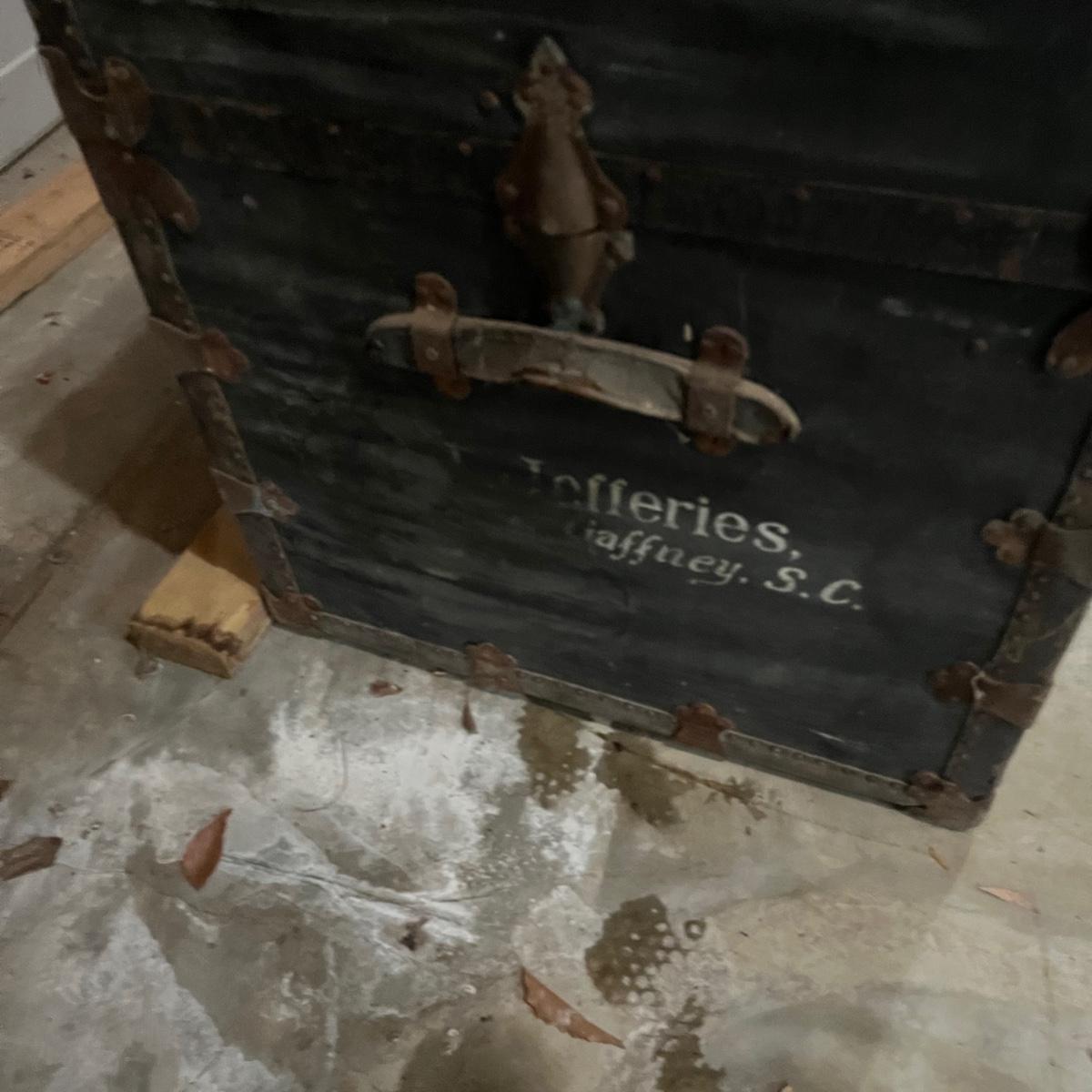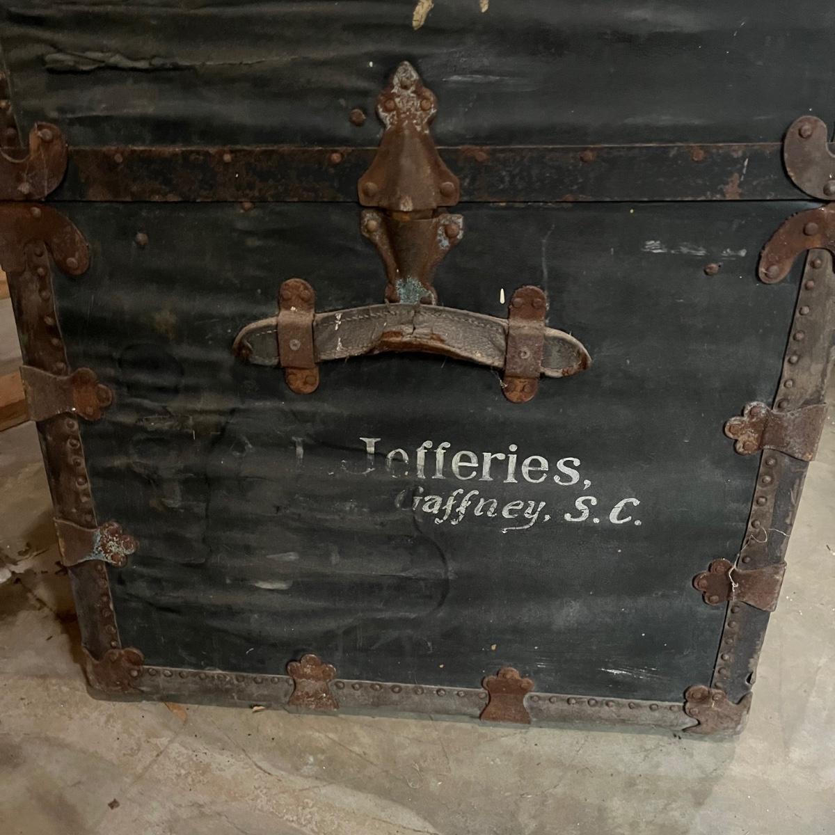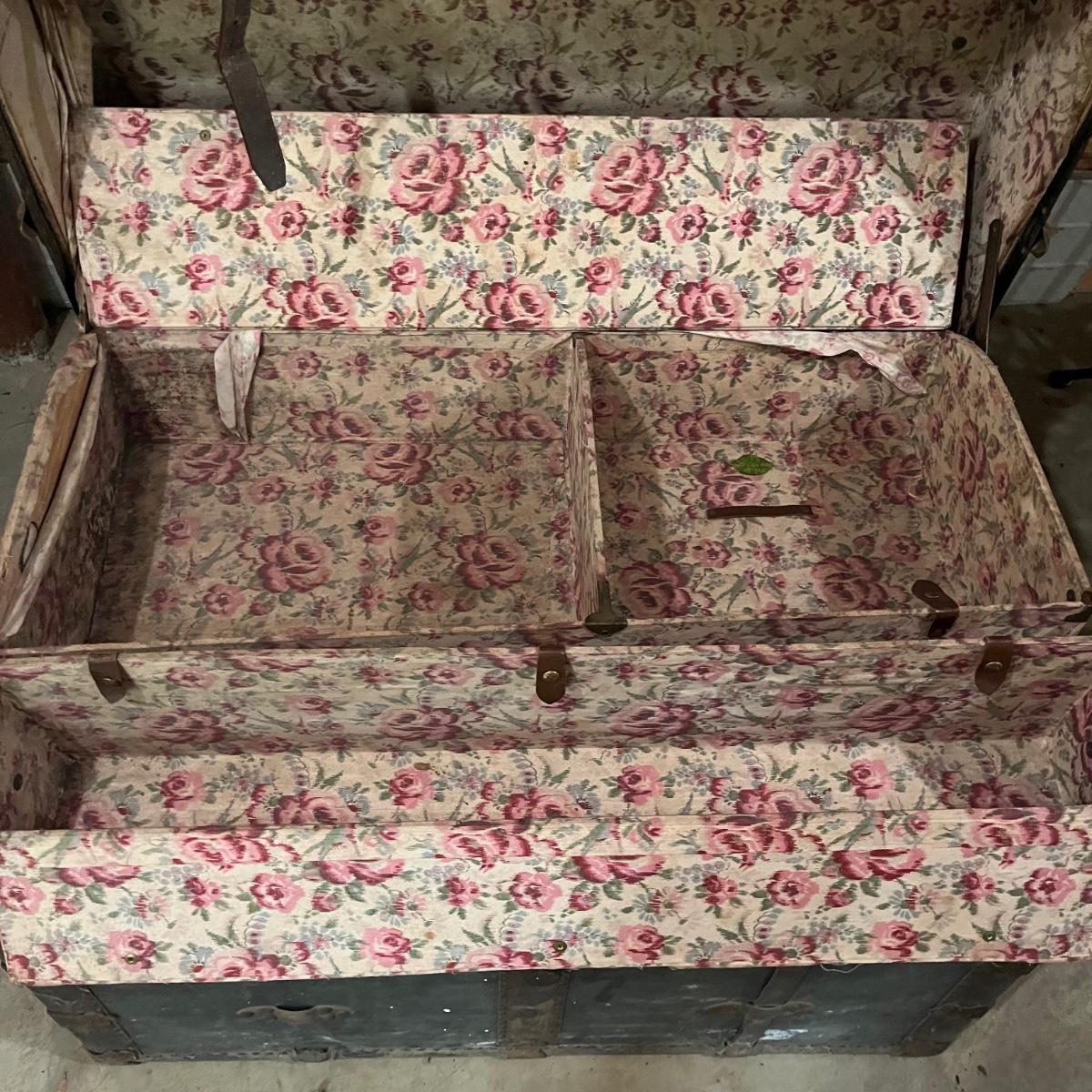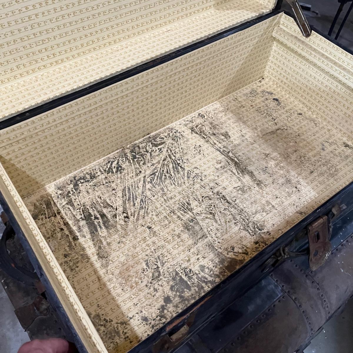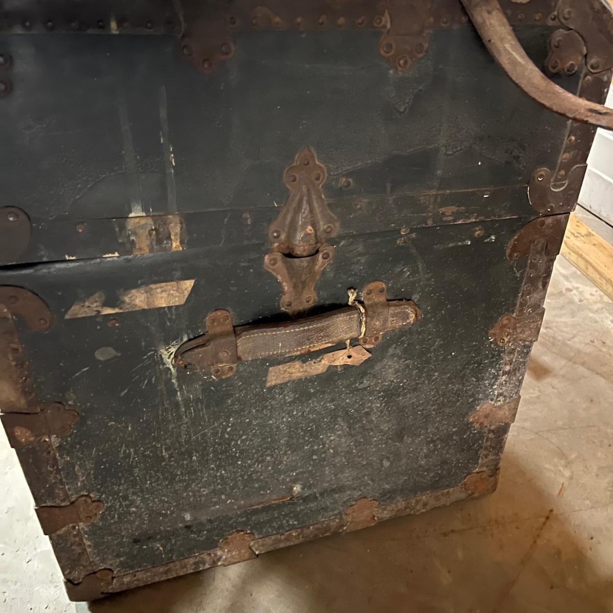 Lot includes one Overland brand trunk, one round-edged trunk with inserts, and one square topped trunk with insert. Overland trunk has wear on bottom and all three trunks have the smell of mildew, so you will want to air them out.