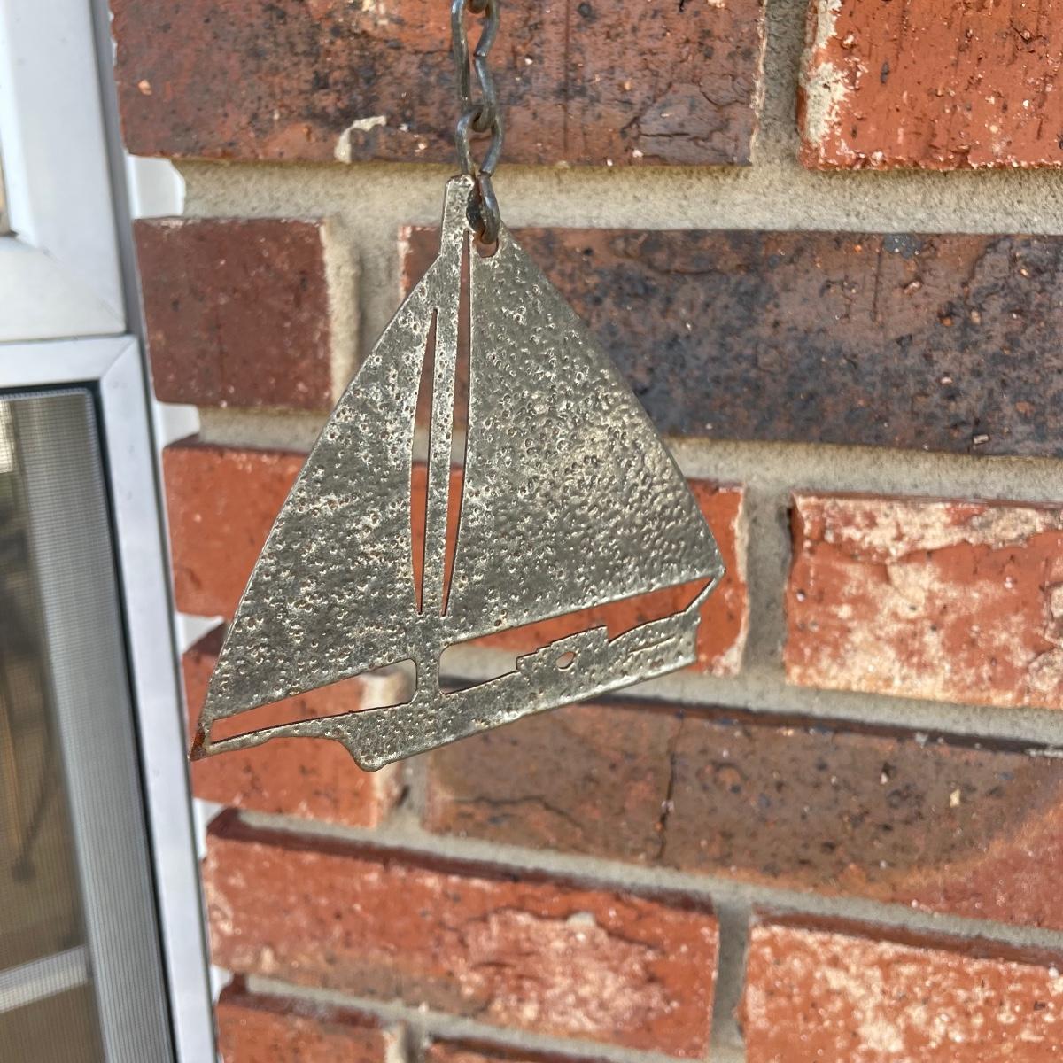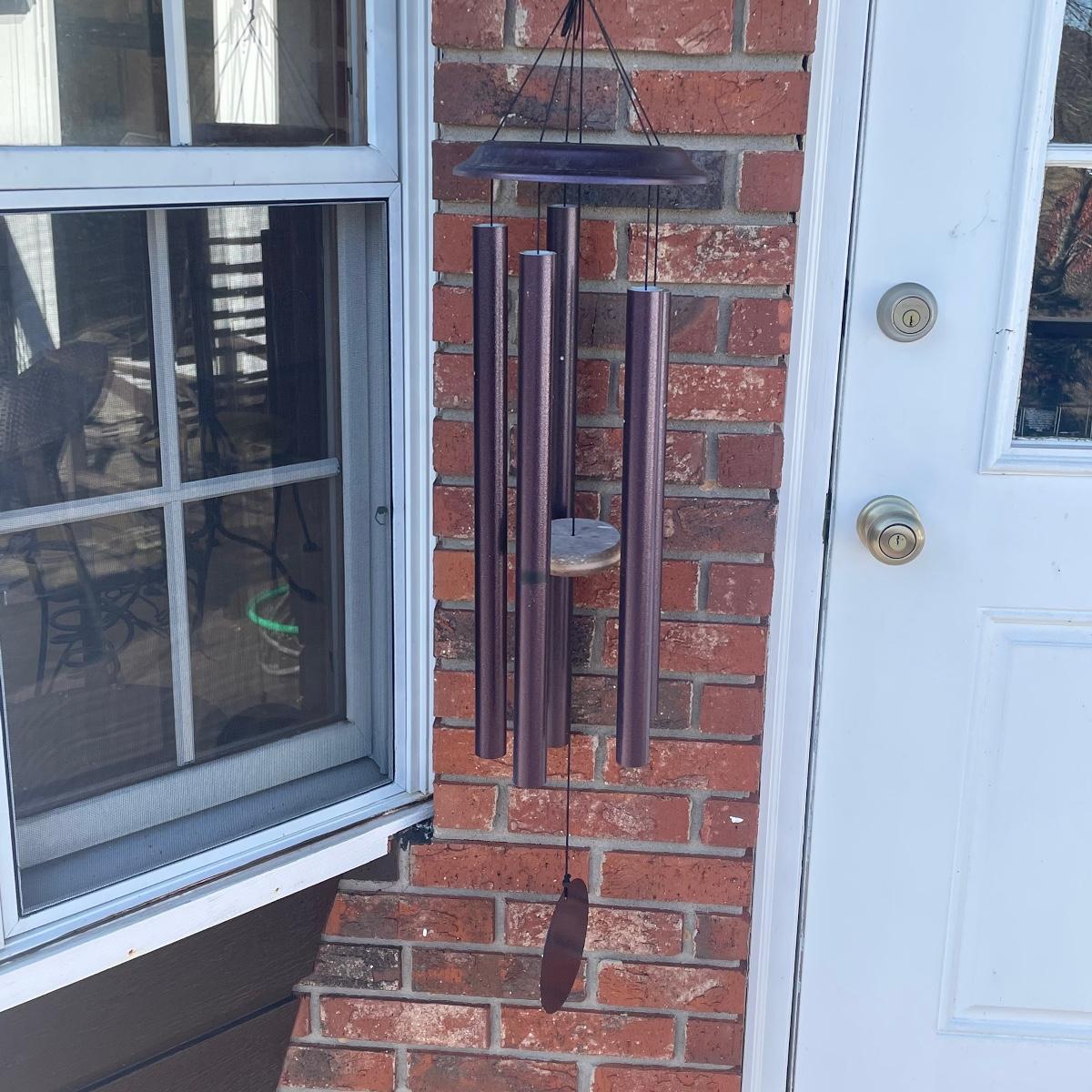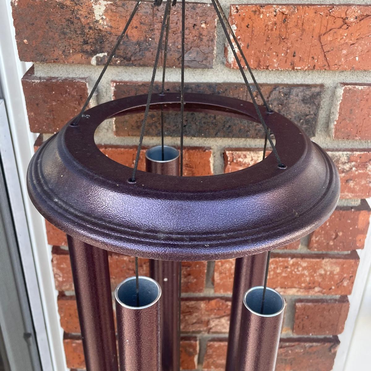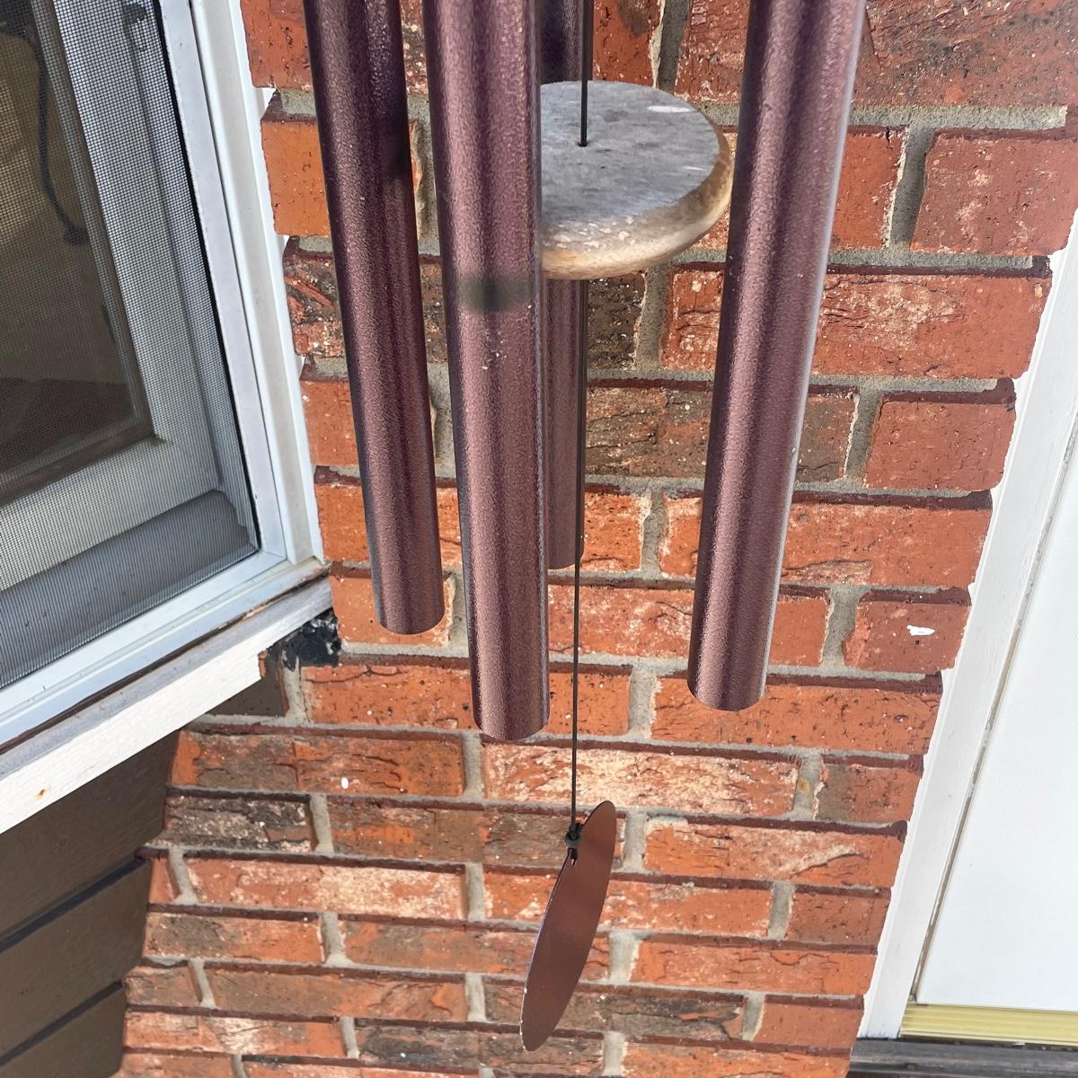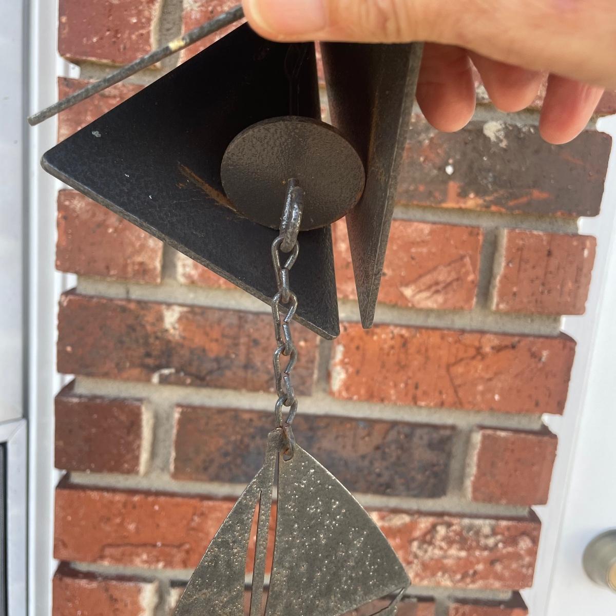 A great trio of wind chimes here with largest being the purple painted metal one that measures 9” diameter x 20” long (not including the rope). The smaller sunflower one has four bells, all are metal. Also included are nine hanging hooks, some have rubber coating, all are metal. Largest hook measures 48” long.