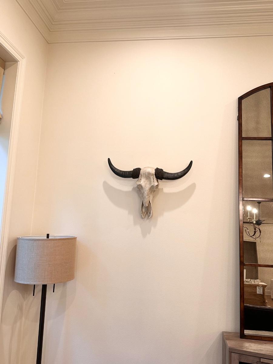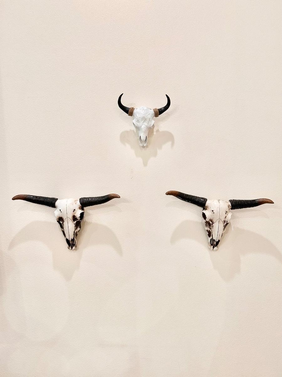 Made of a resin type material ~ purchased from Hobby Lobby ~ 1 XL Skull is approx 19” H x 29” W x 6” D ~ 2 large skulls are 10 x 19 ~ small one is 7 x 9