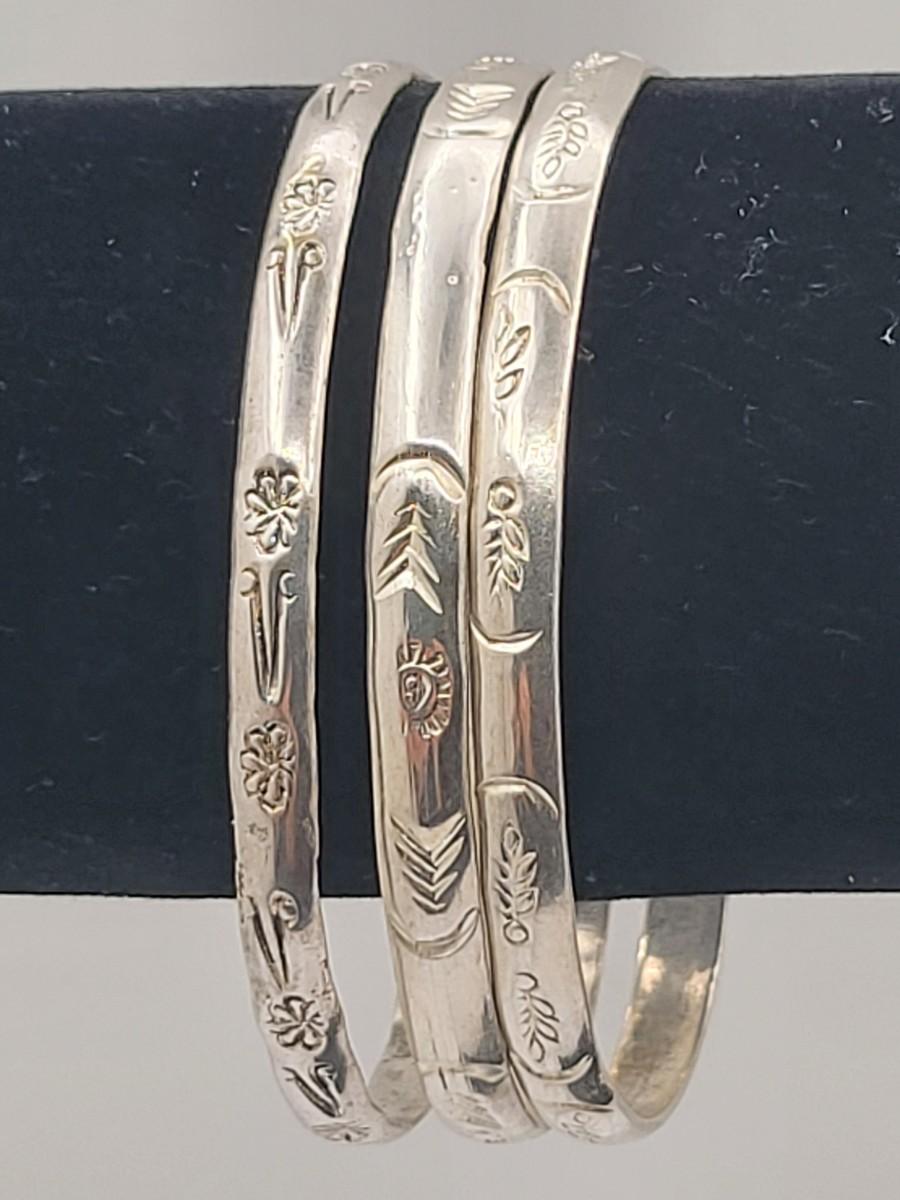 Trio Sterling Etched Bangle Bracelets Mexico 39.4gr