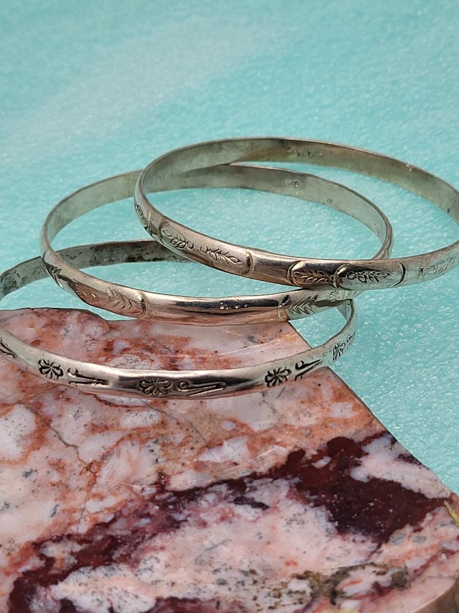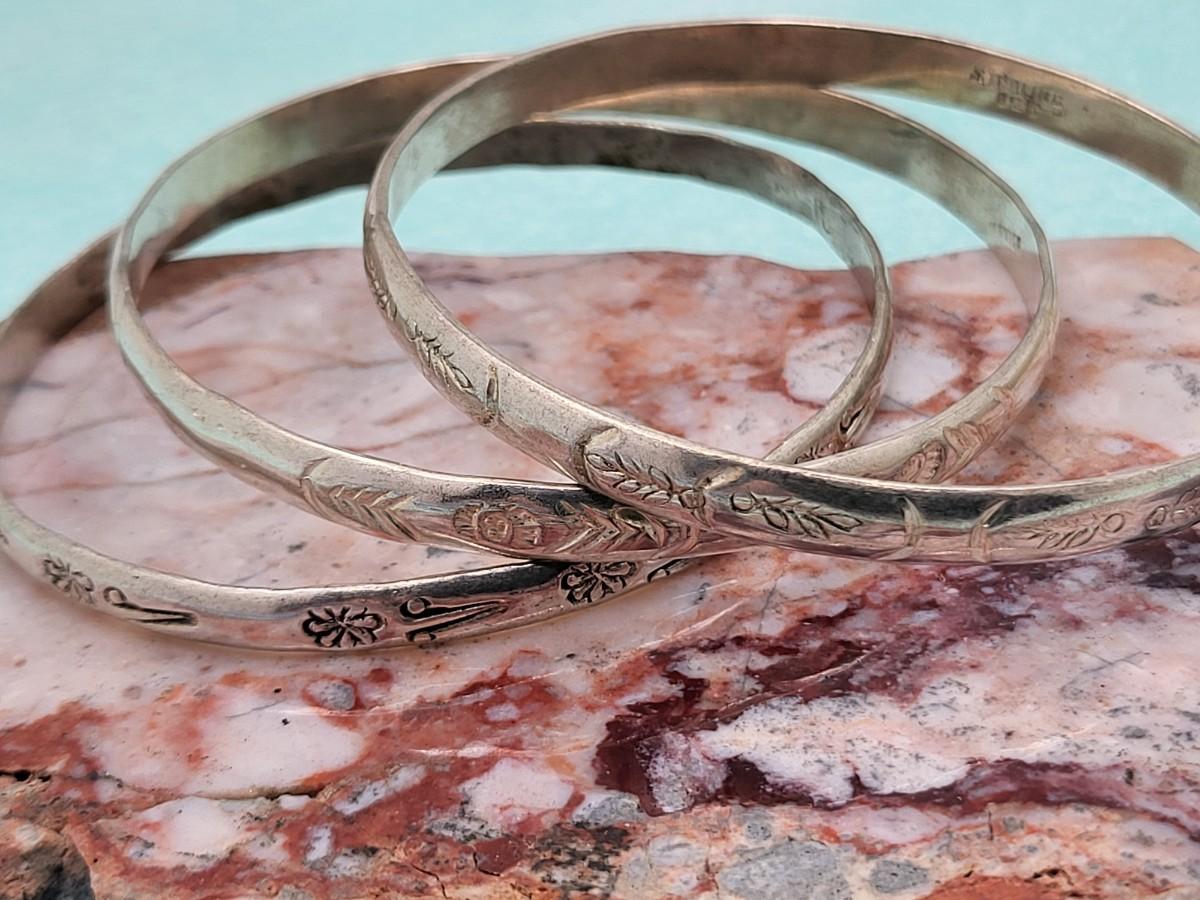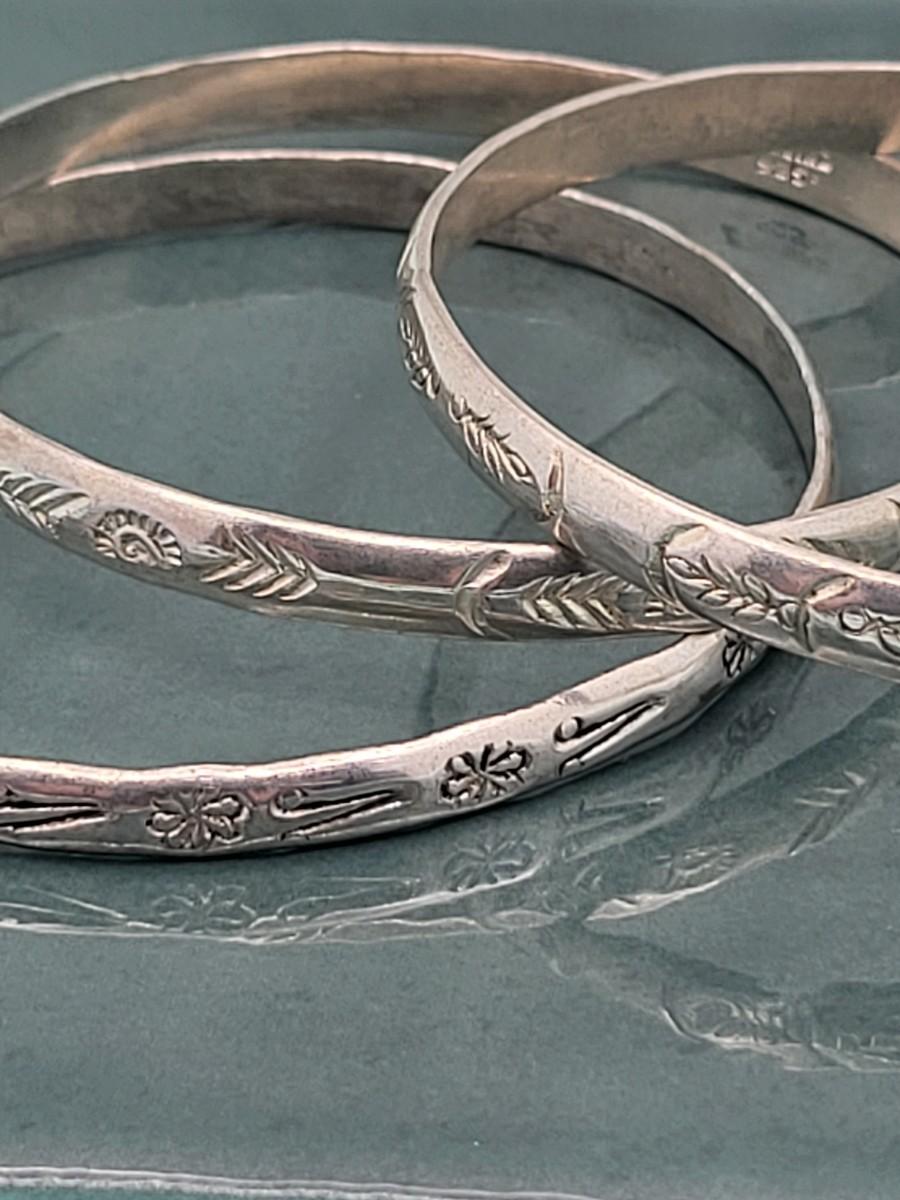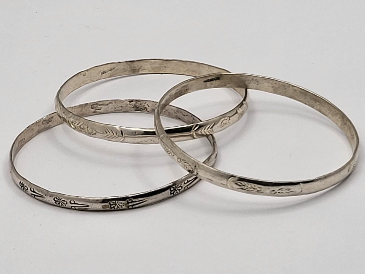 Three vintage, Mexico 925 etched bangle bracelets. Total weight 39.4 grams.