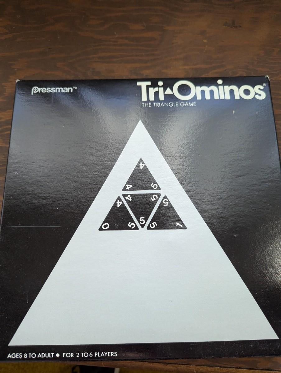 The game Tri-Ominos, The Triangle Game. Ages 8- adult, 2-6 players. Fun game!