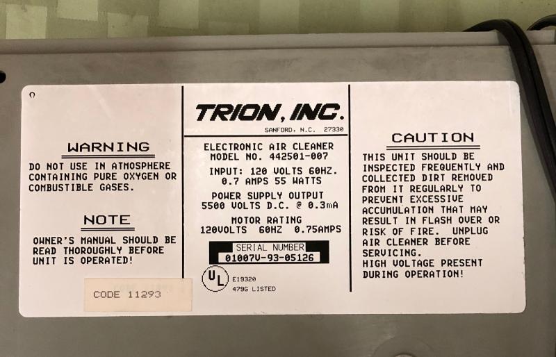 Used condition on this Trion Electronic Air Cleaner...