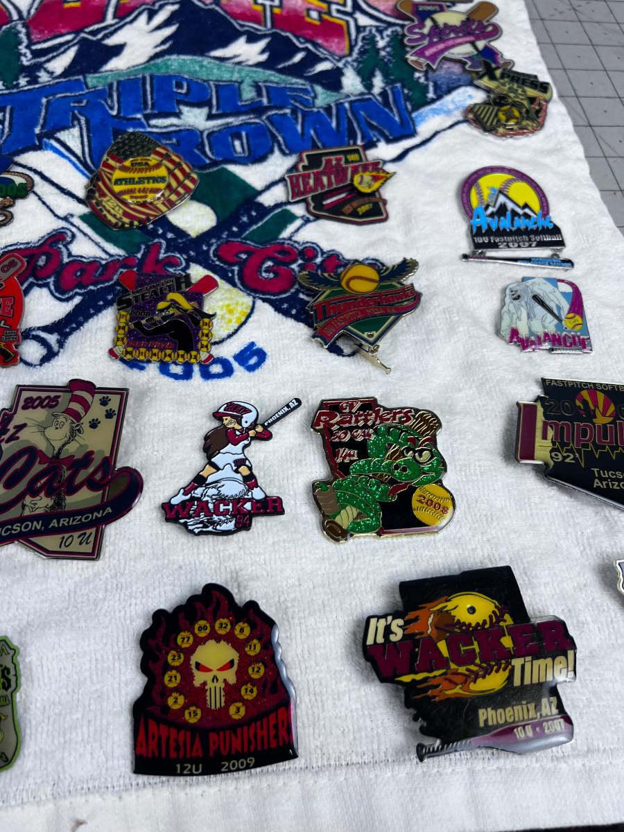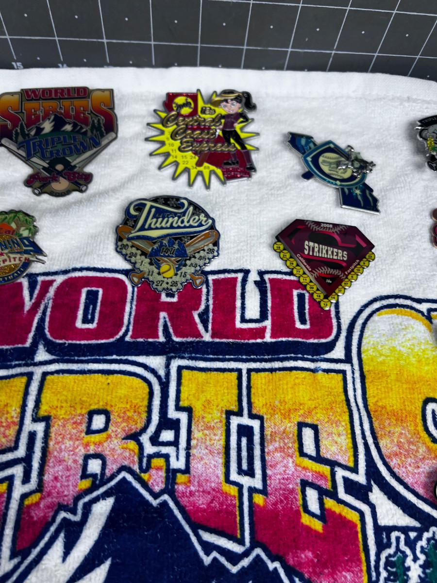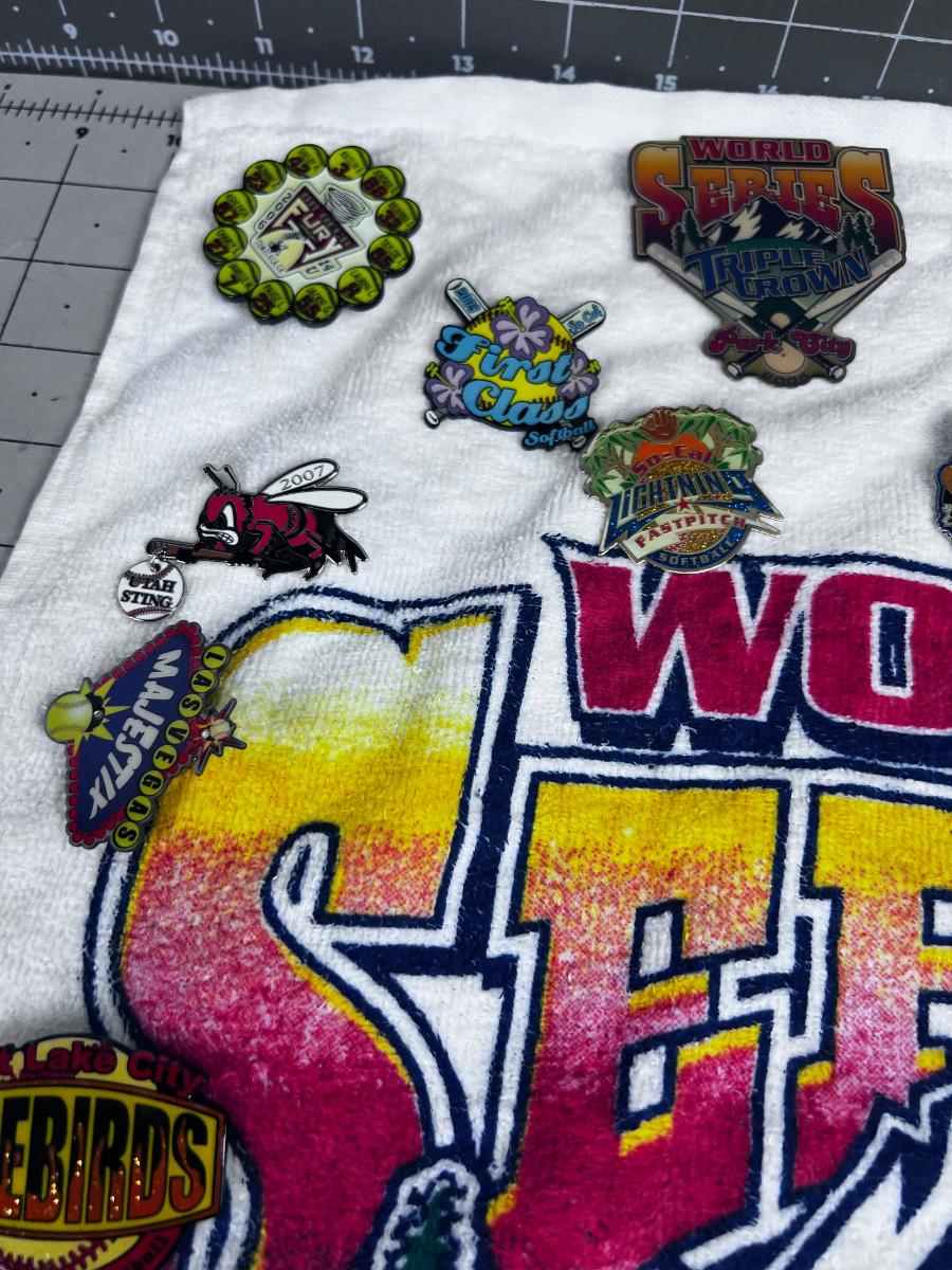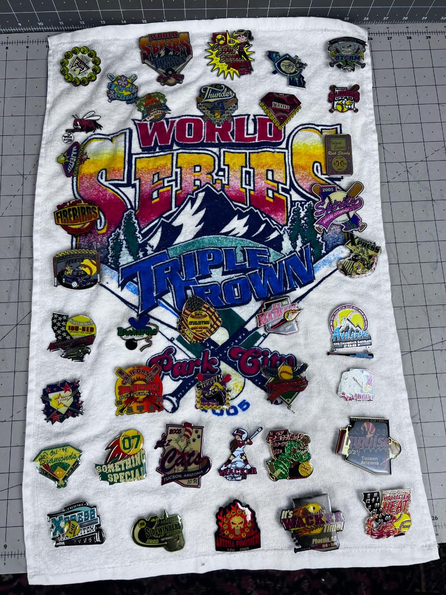 Triple Crown Park City World Series, Bar Towel Covered with Girls  Fast Pitch Softball pins