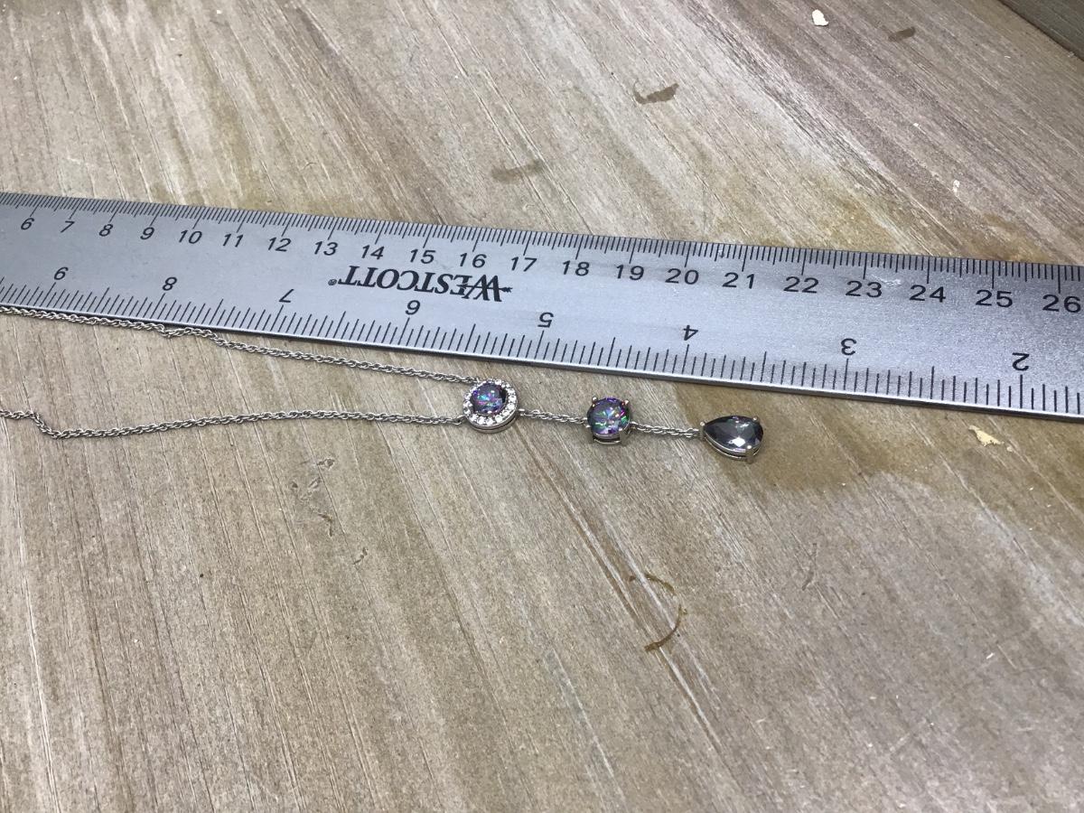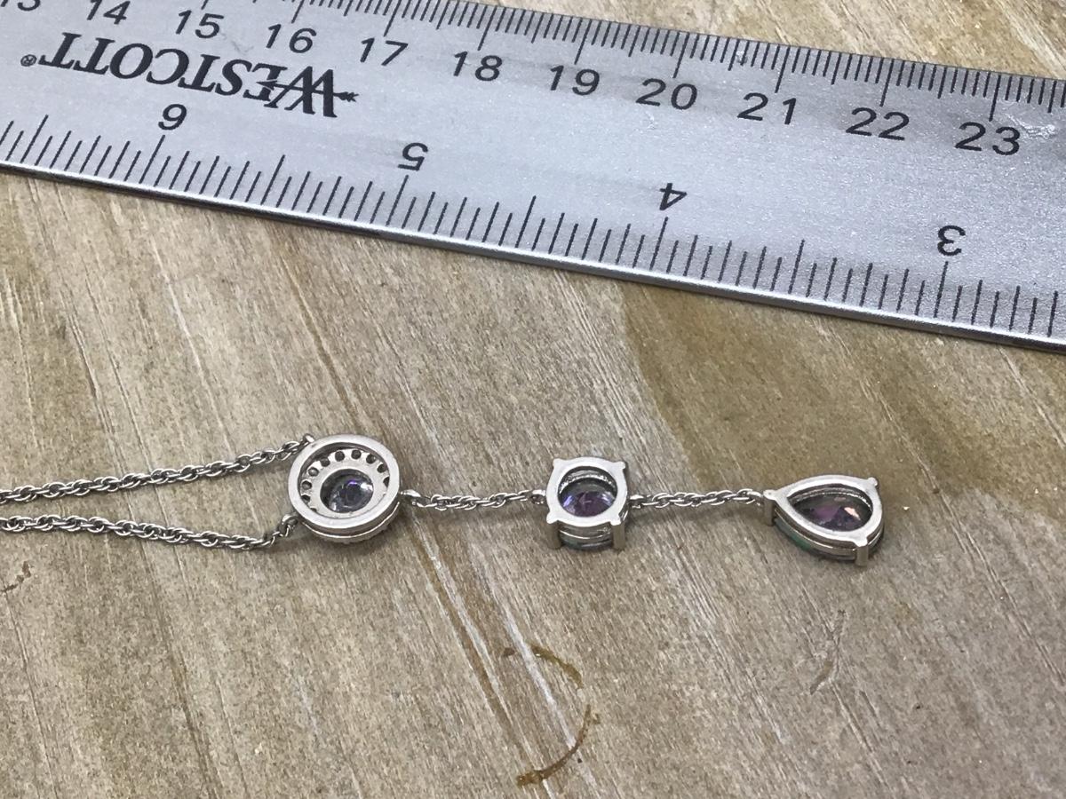 Triple Crystals Silvertone Necklace Marked SUN BR