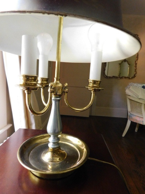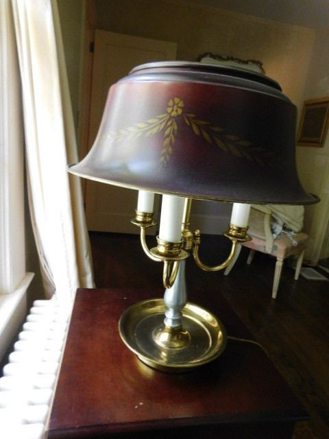 Triple Light Brass Post Lamp with Tole Shade