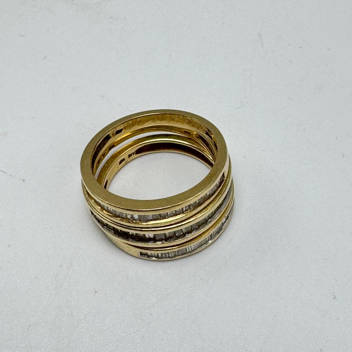 Three gold rings with diamonds that can be stacked or worn separately. Largest (middle) ring has A162 mark in addition to other marks. See photos as they are mostly illegible. Shipping available.