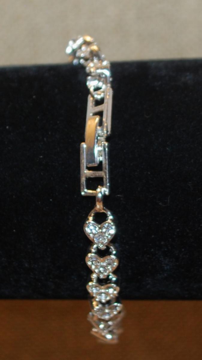 Triple Stone Silvery HEARTS Bracelet (7") with a Box Style Clasp