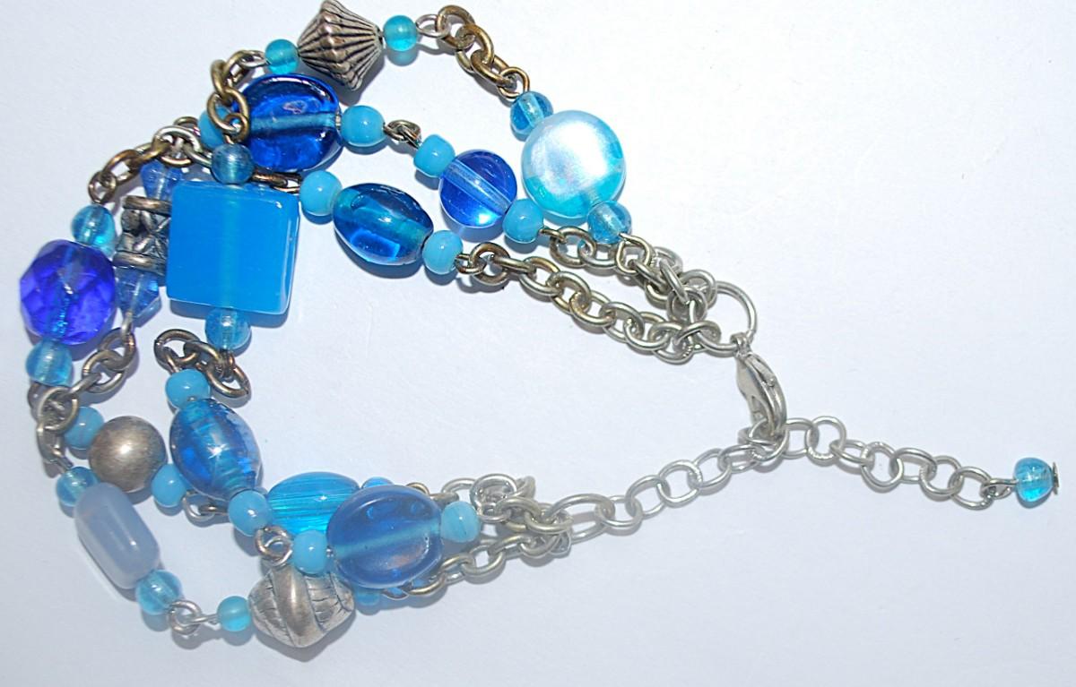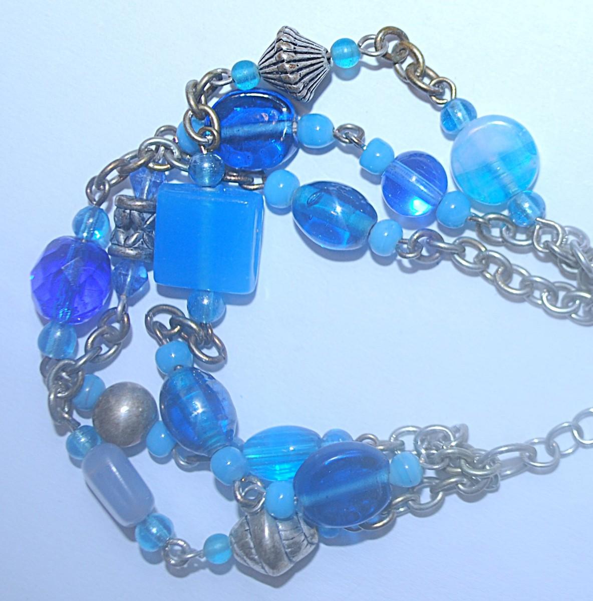 Triple Strands Blue Stones BRACELET (2½" Opening) with Silver Tone Accents and Lobster Clasp