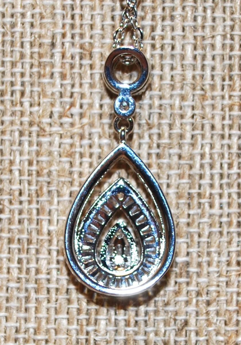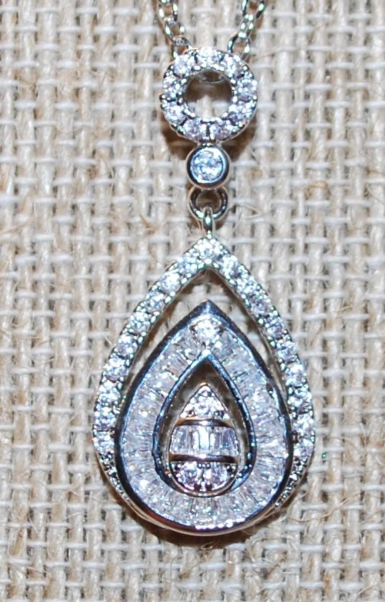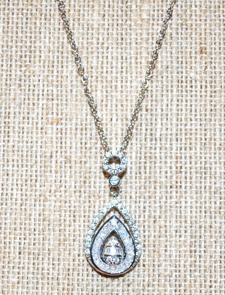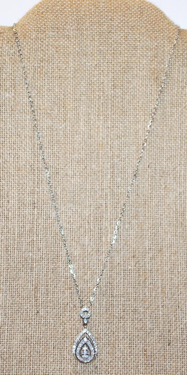 Triple Teardrop Diamond Style PENDANT (1 ½" x ½") on a Silver Tone Necklace 17" L