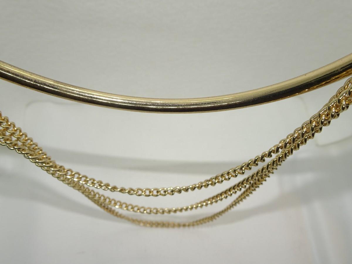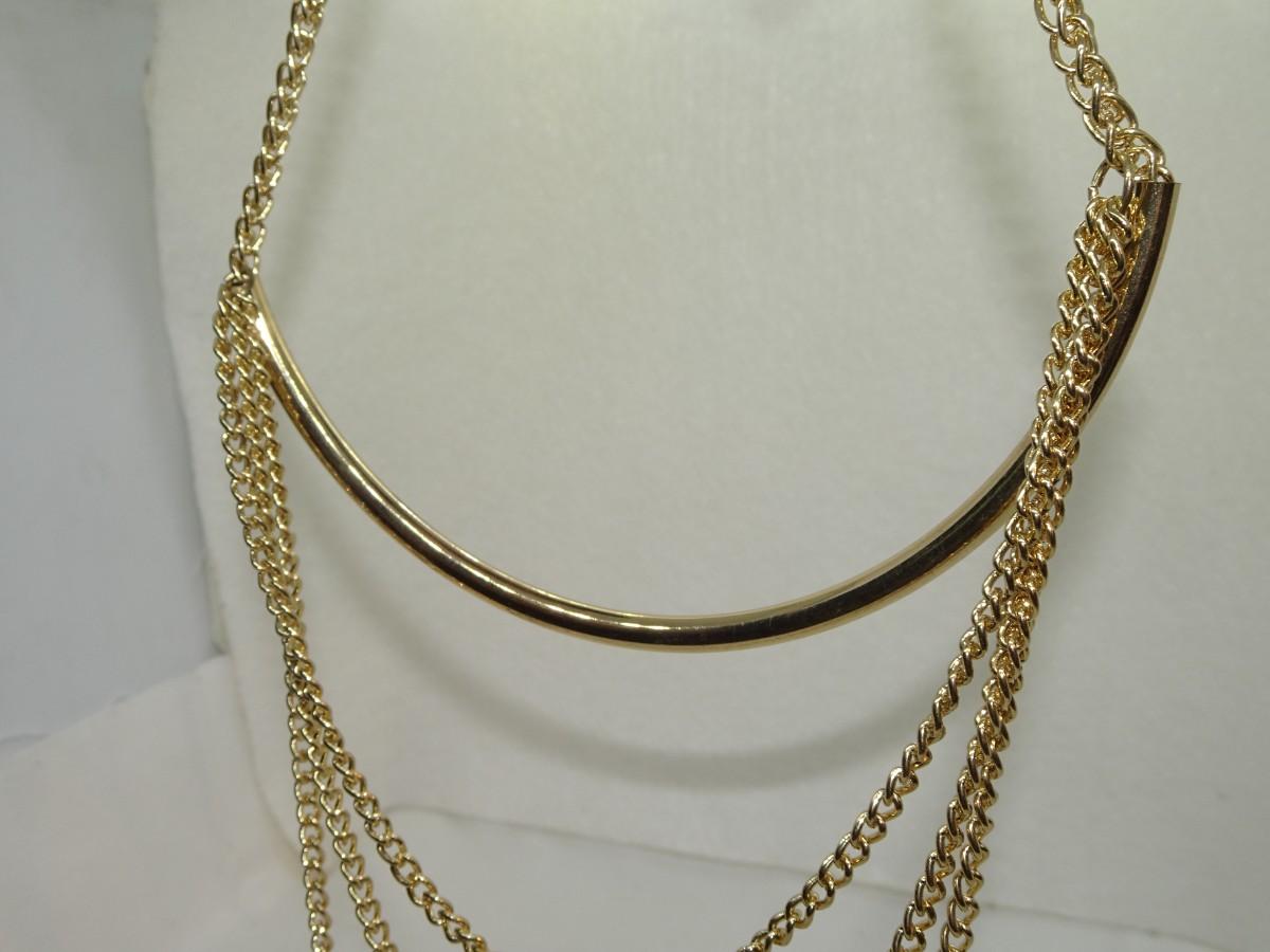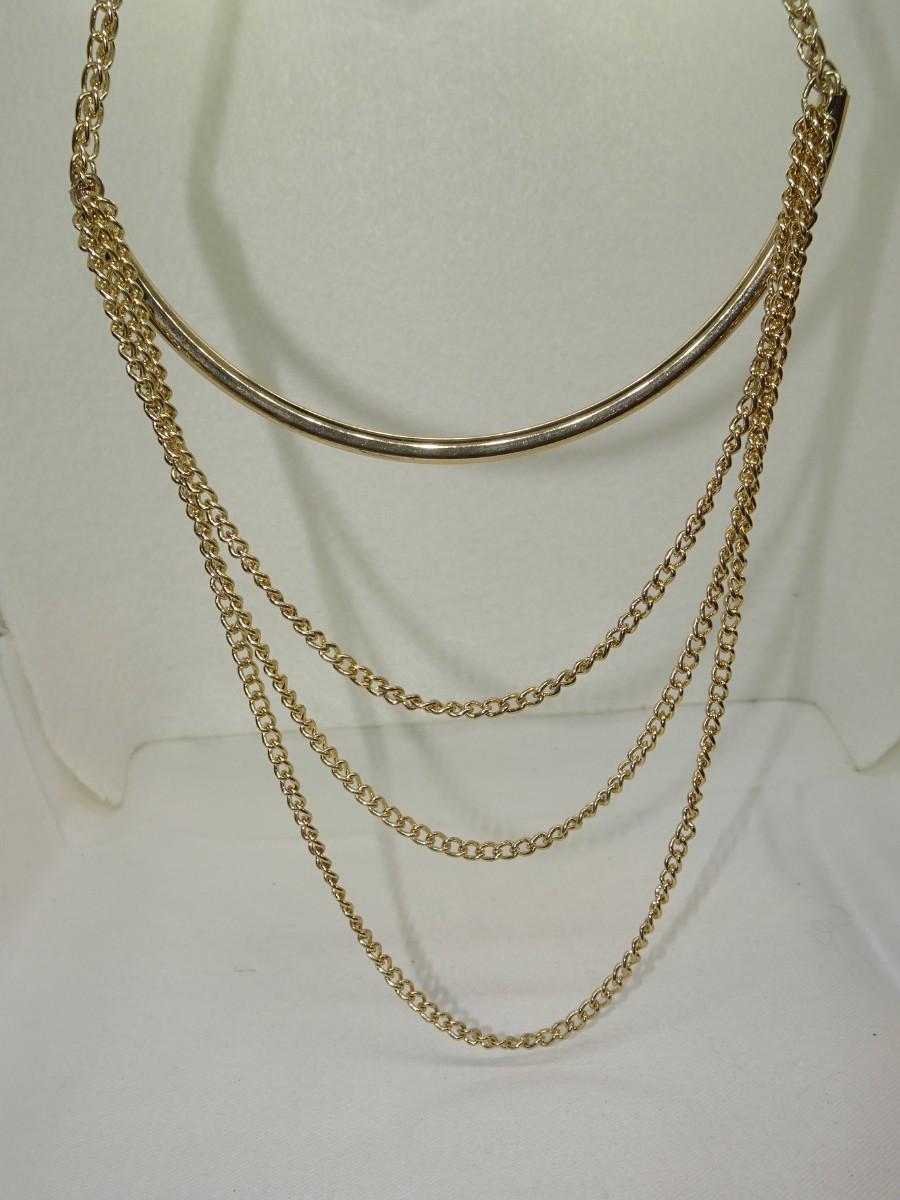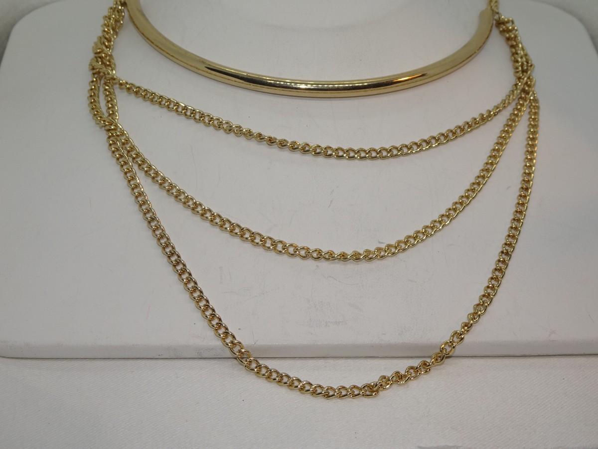 Triplicate Gold Tone Chain Necklace w/bar