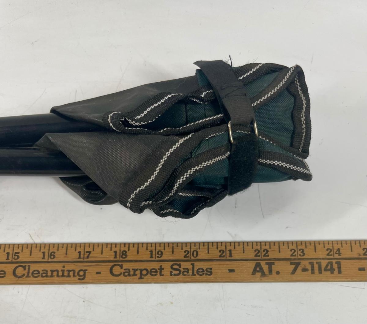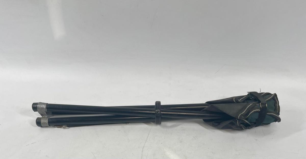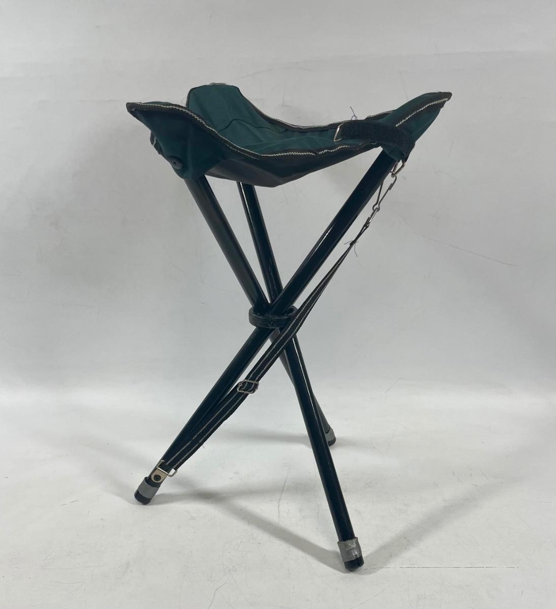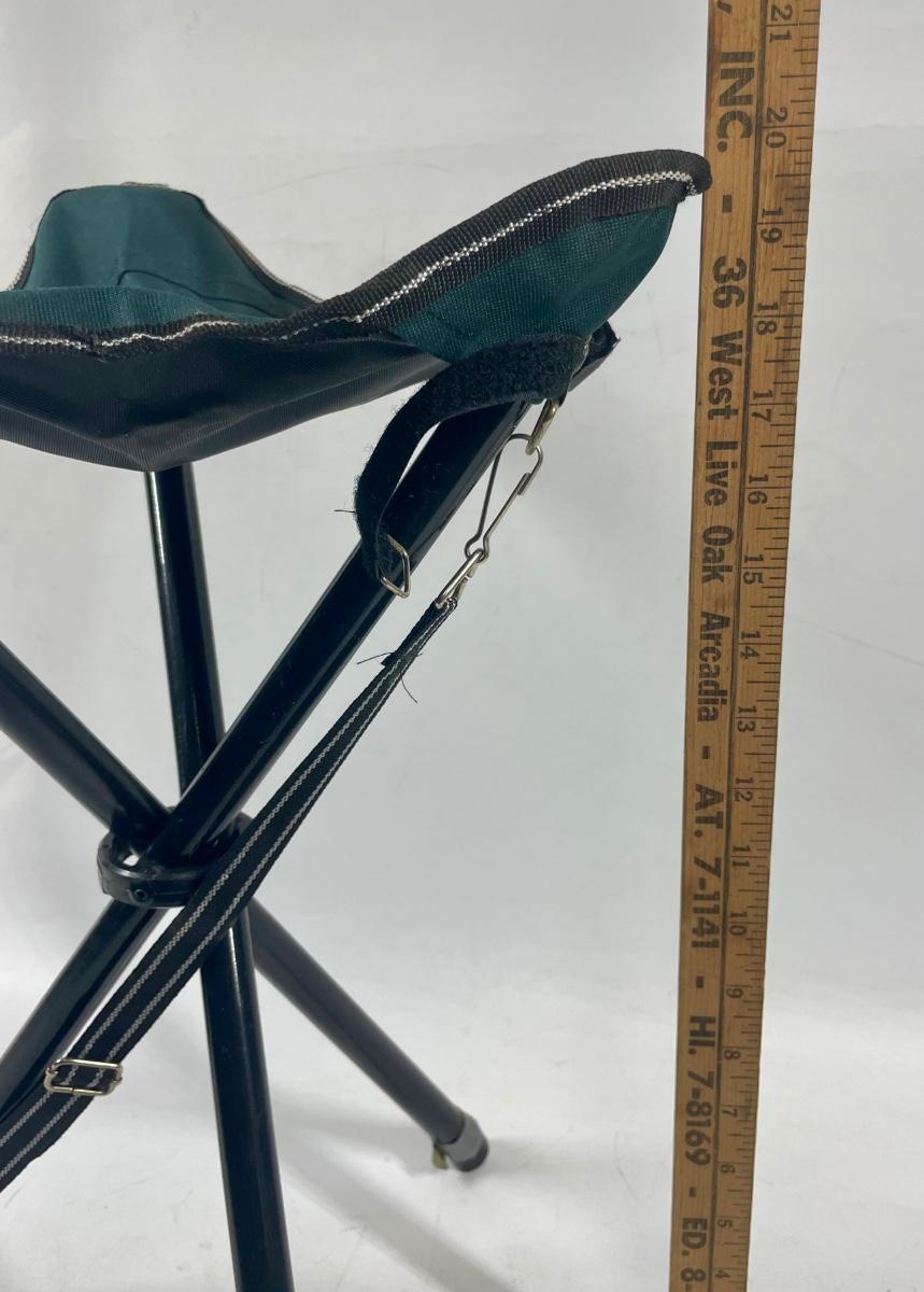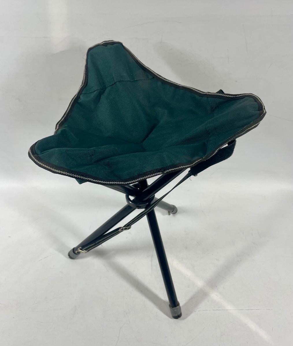 Collapsible tripod-style camp stool. Ballistic nylon seat, has carry strap. Very good used condition.
