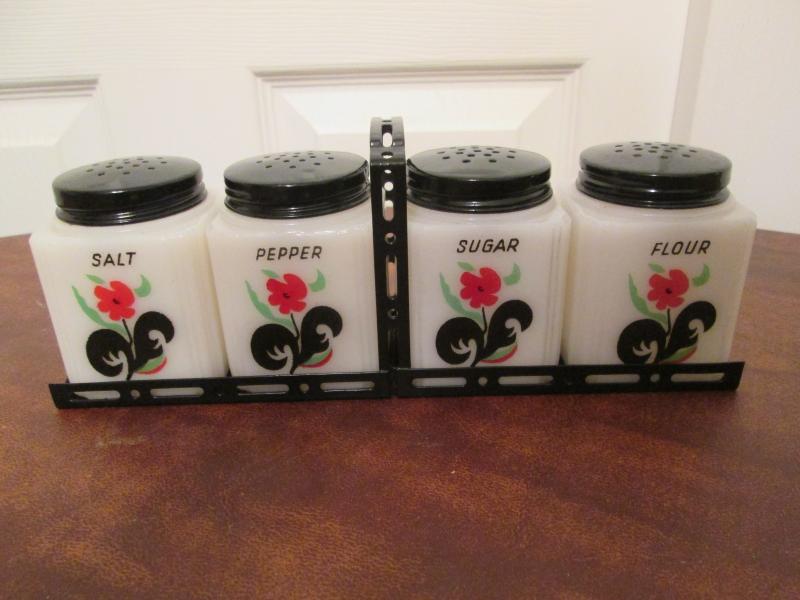 TIPP City 4 Piece Set With Rack - Red Flower With Black Leaves