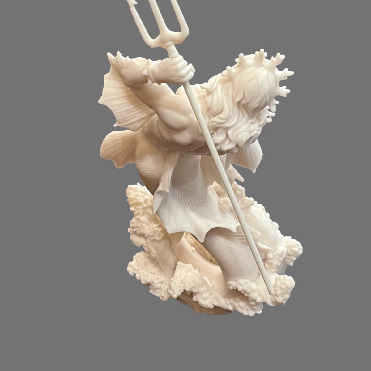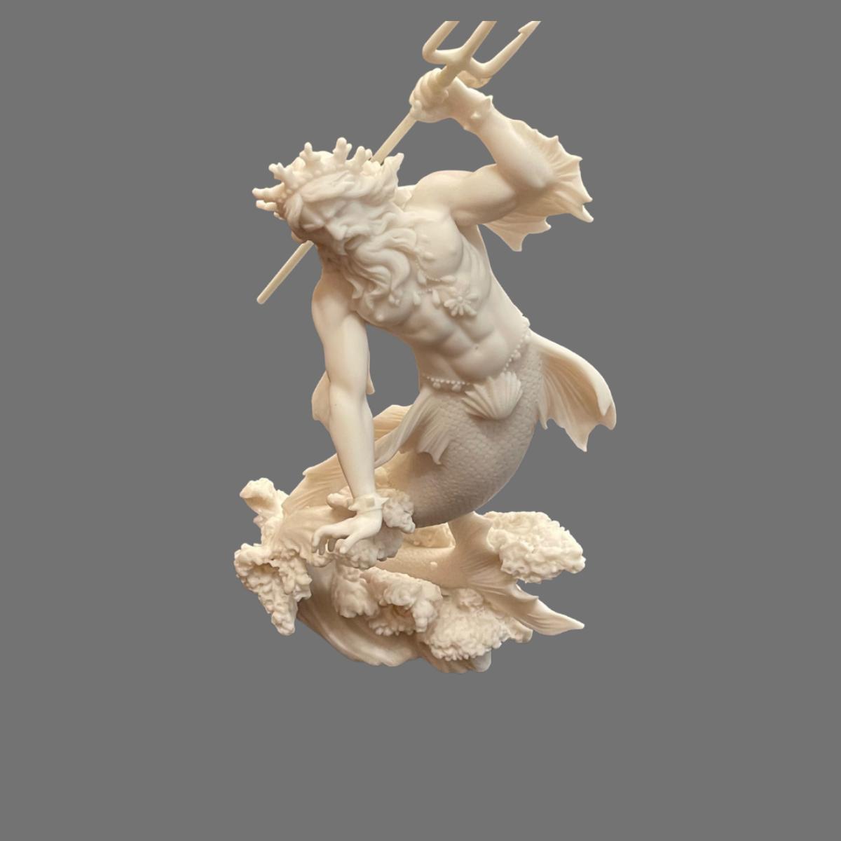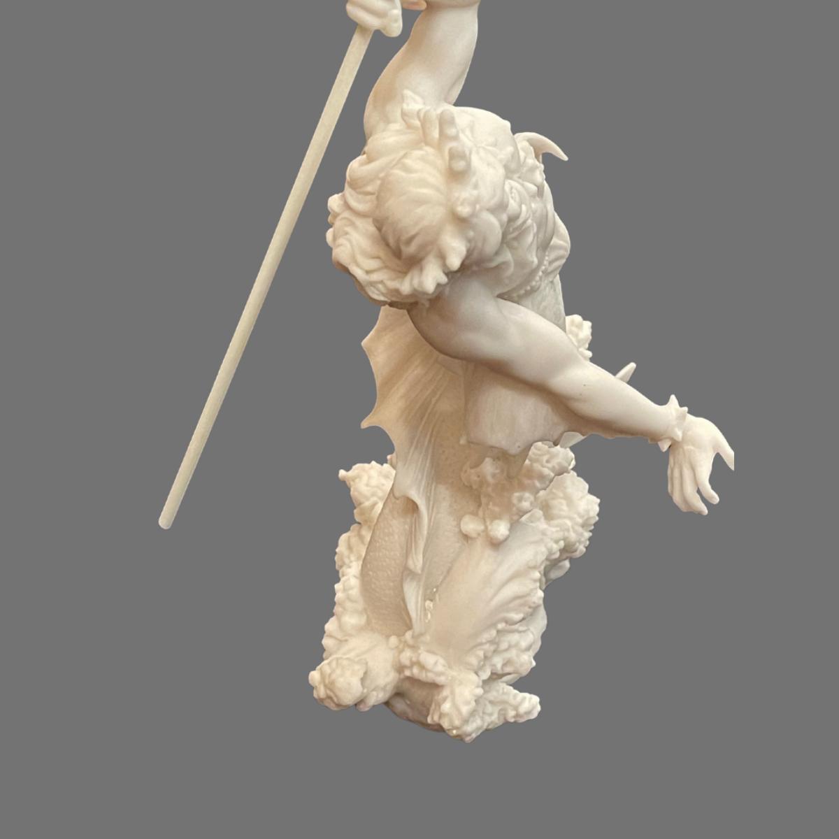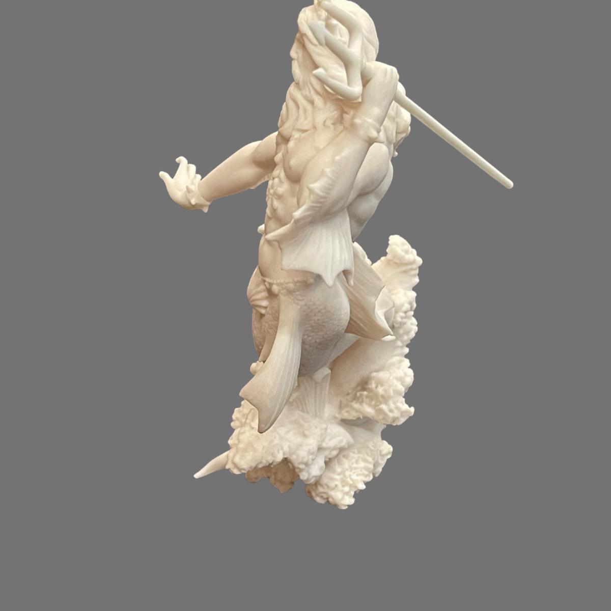 Triton, or Neptune, son of Poseidon and Amphitrite, was worshipped by Ancient Greeks as a sea deity, carrying a barbed trident. This sculpture measures 12"