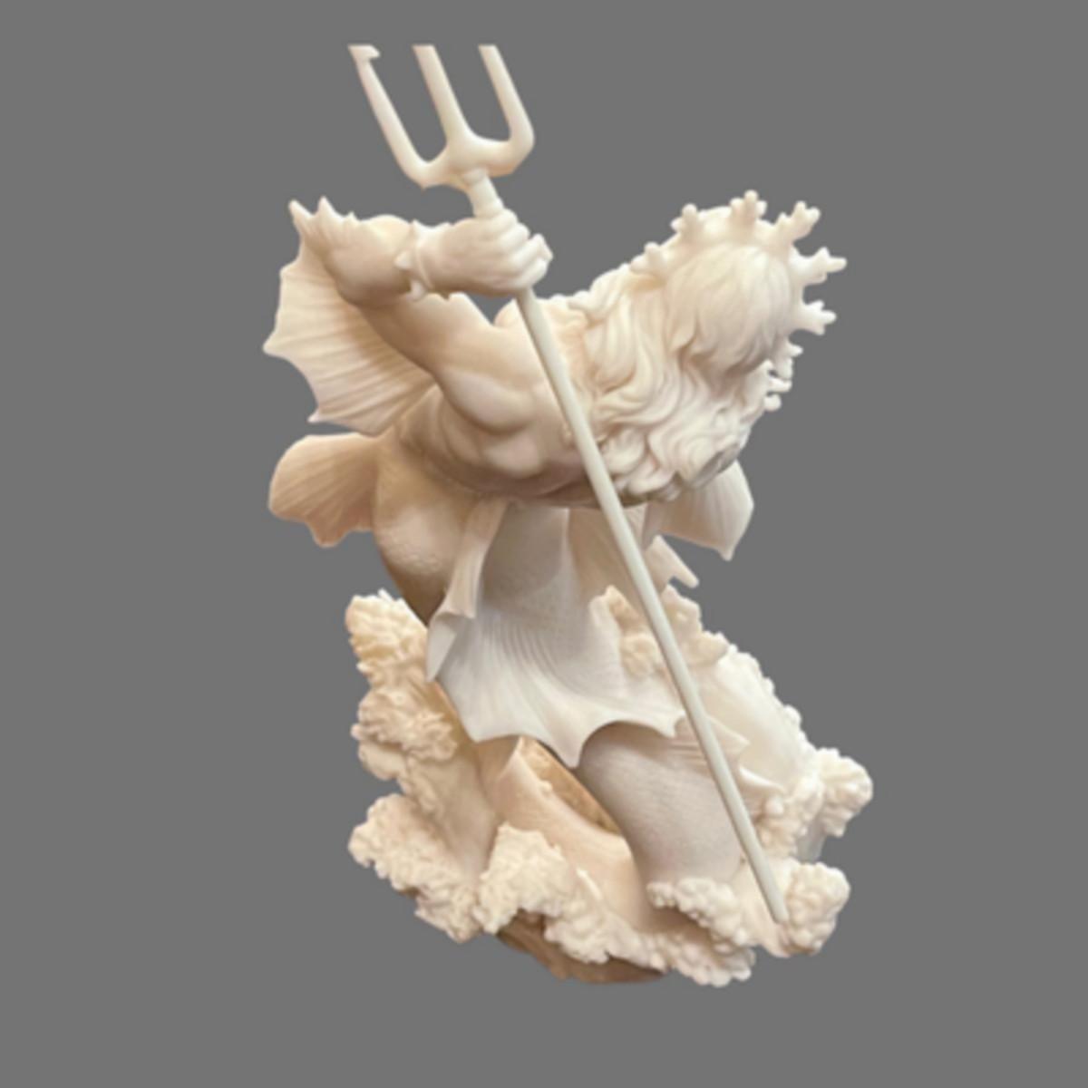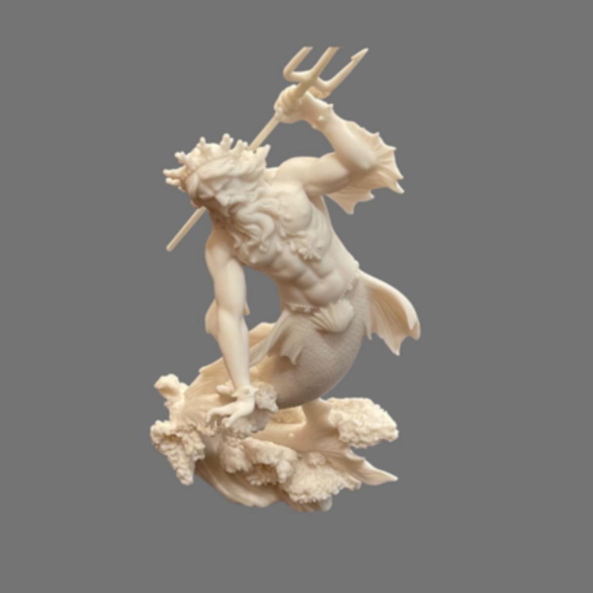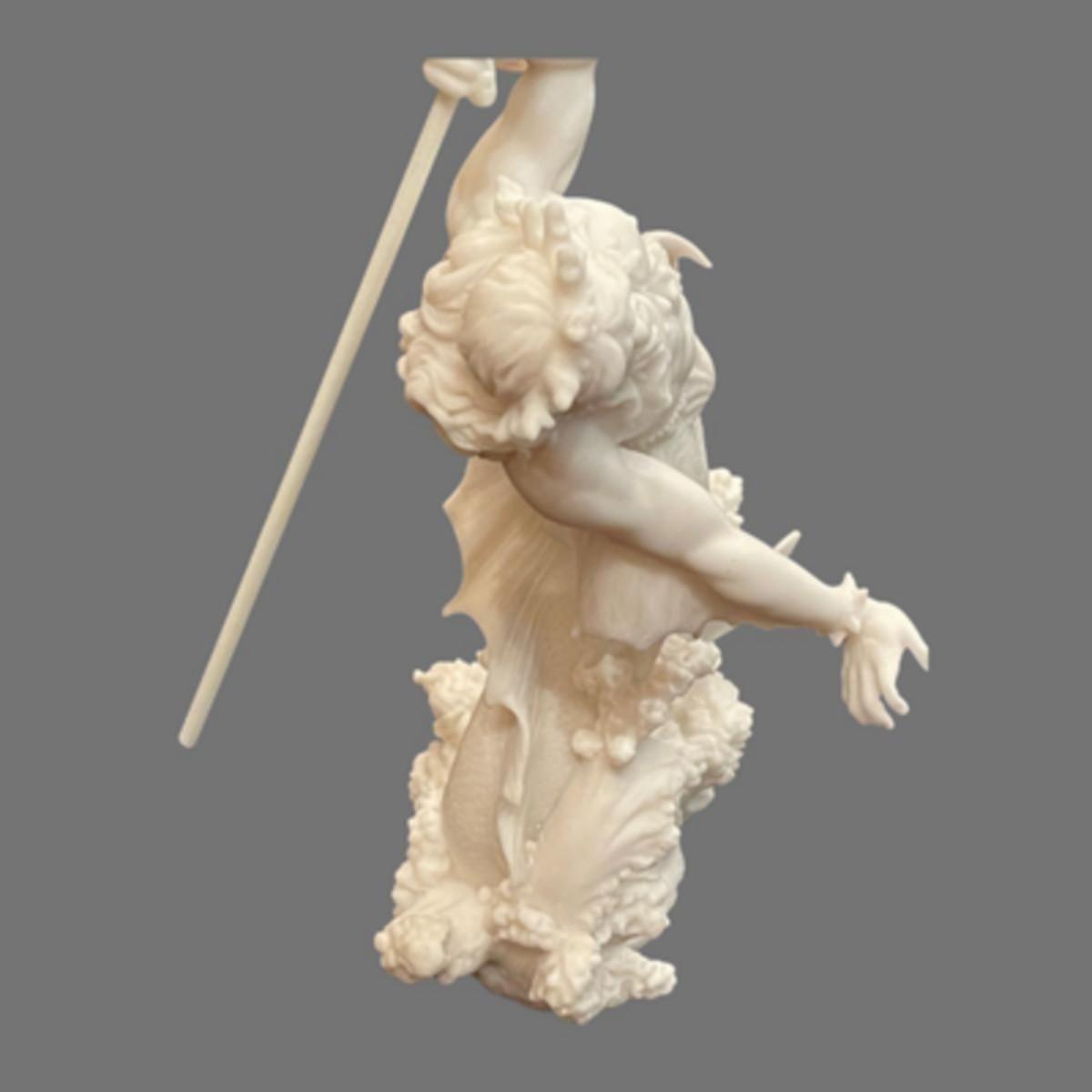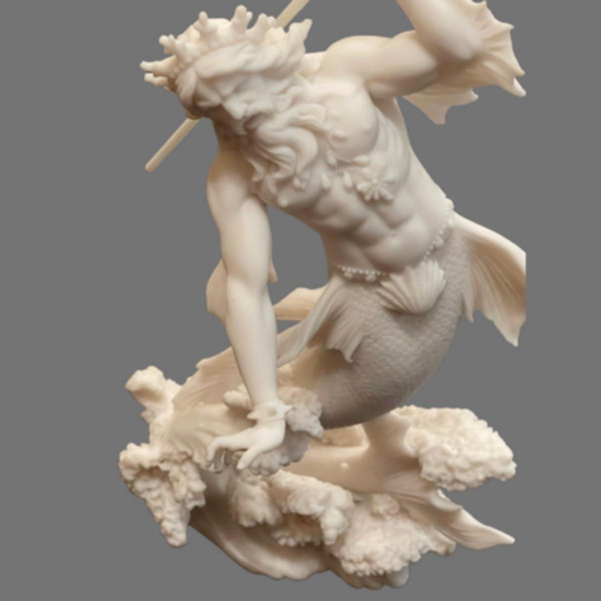 Triton, or Neptune, son of Poseidon and Amphitrite, was worshipped by Ancient Greeks as a sea deity, carrying a barbed trident. This sculpture measures 12"