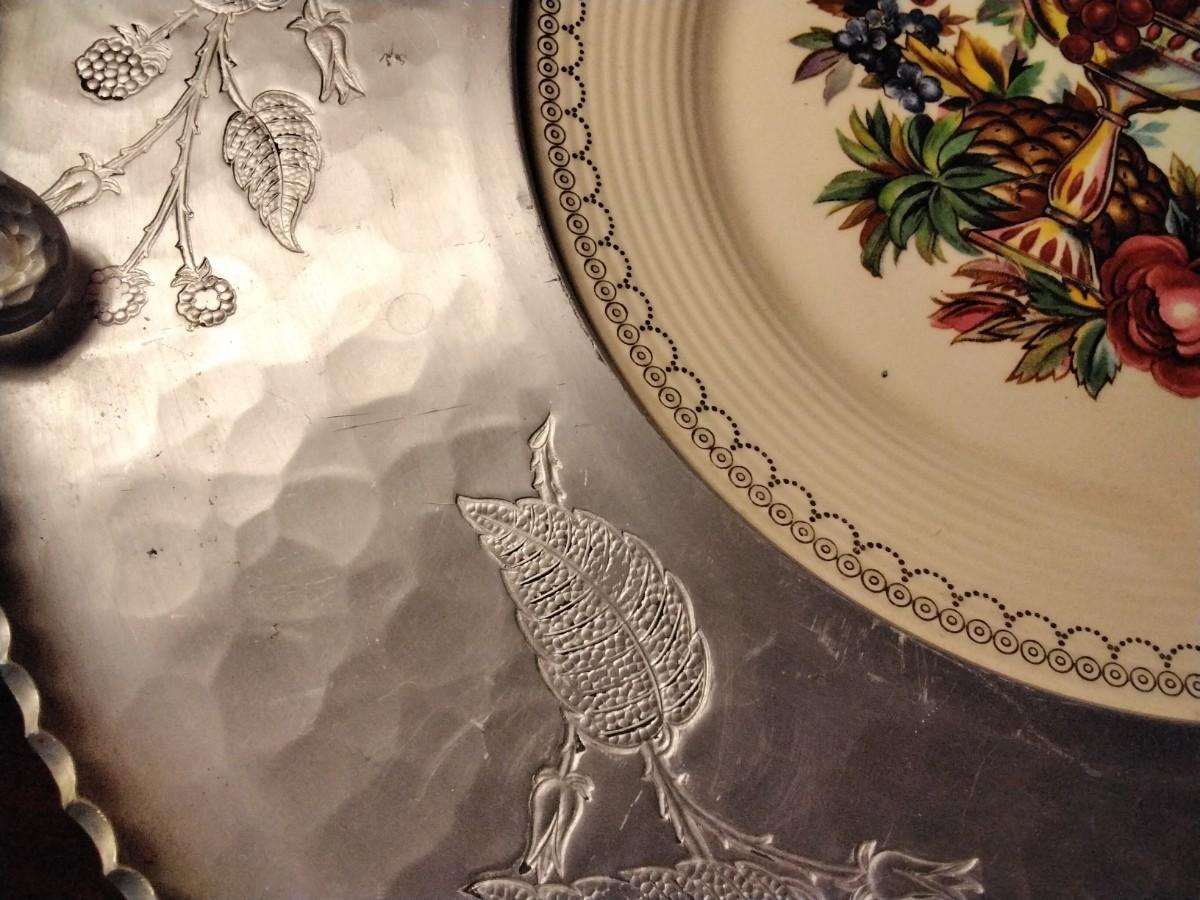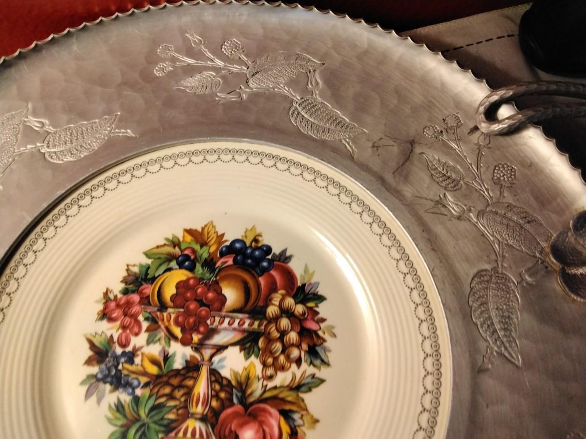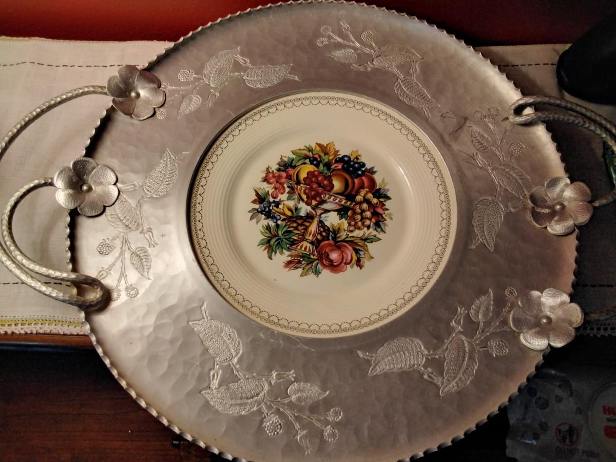 Triumph Limoges Imperial Victorian China Platter w Handles Farberware Aluminum