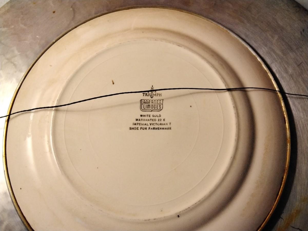 16 inches wide with handles. Marked 'Triumph Made in USA Limoges White Gold Warranted 22K Imperial Victorian-T Made for Farberware'. Item is in pristine condition.