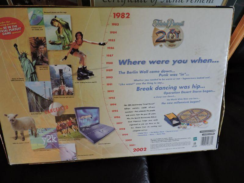 Trivial Pursuit 20th Anniversary Edition **Please read Terms and Conditions before placing a bid. Pick up is Thursday, August 15, 2019 from 4pm to 7pm or Sunday, August 18 from 11am-2pm in Mullica Hill. All sales are final. All sales are as is, where is. Please review all photos. Any props included in photos are not included in listing. All measurements are approximate.