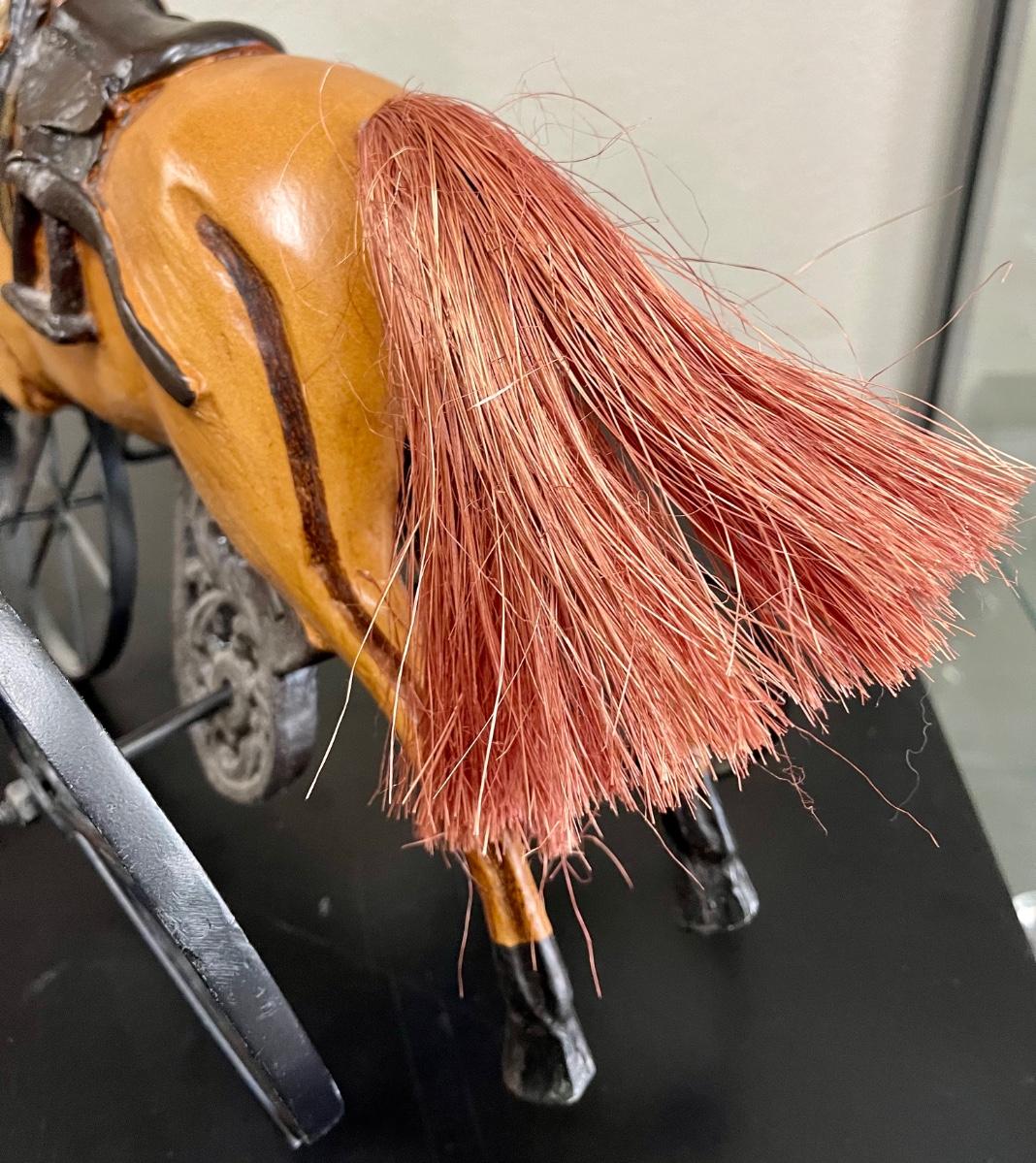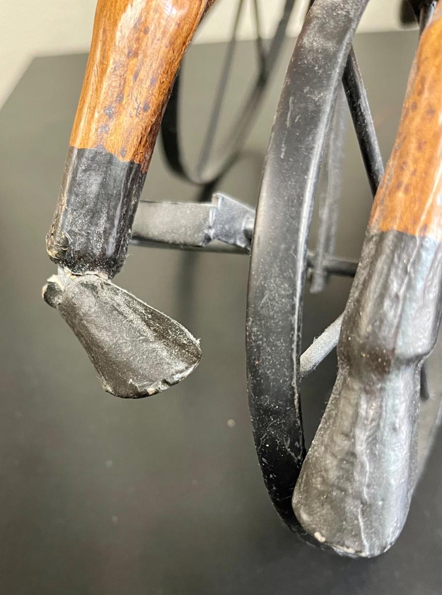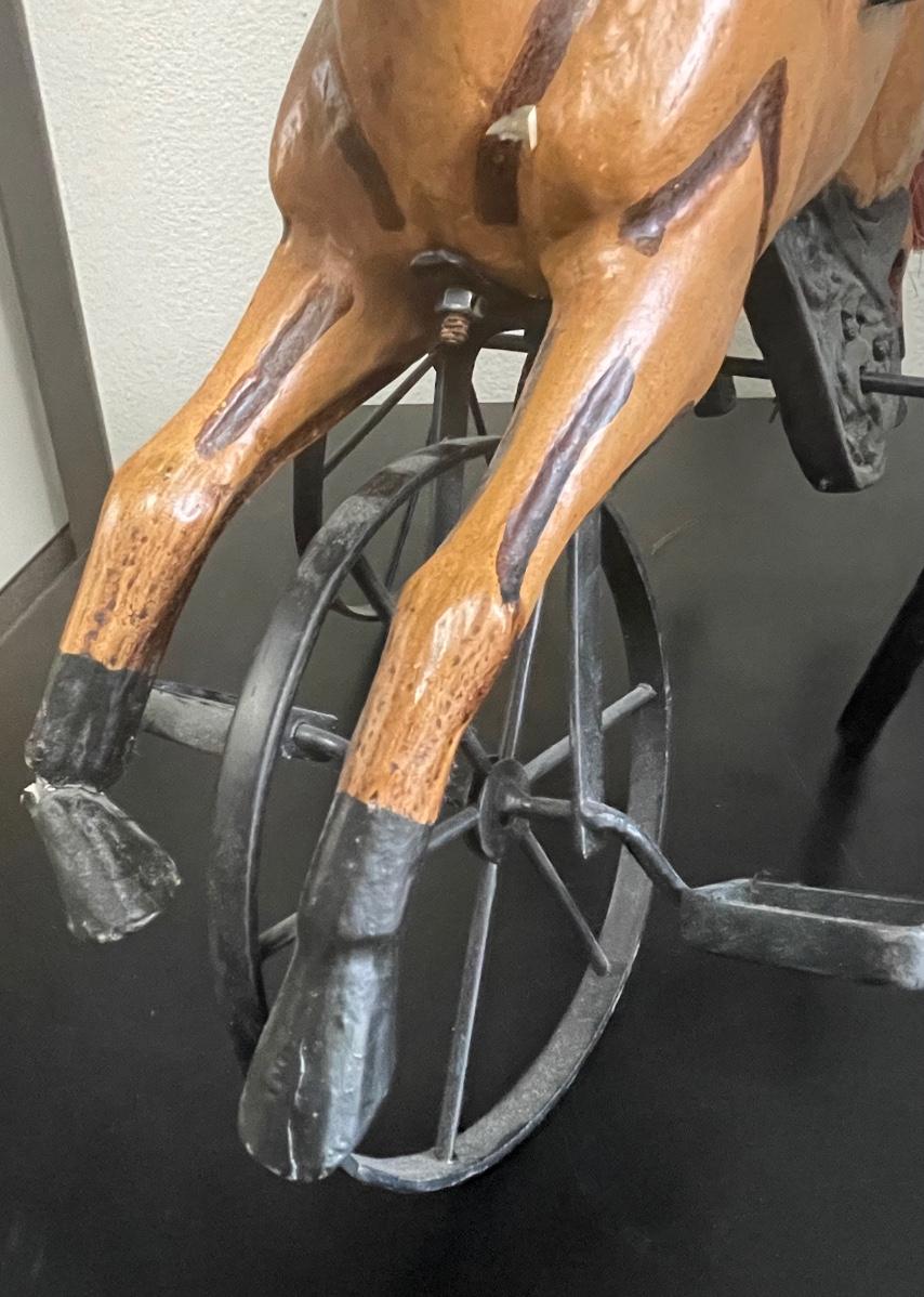 Vintage horse toy tricycle with 3 wheels. Approx. 15" tall. Has damage to the right front hoof, see photos for details.