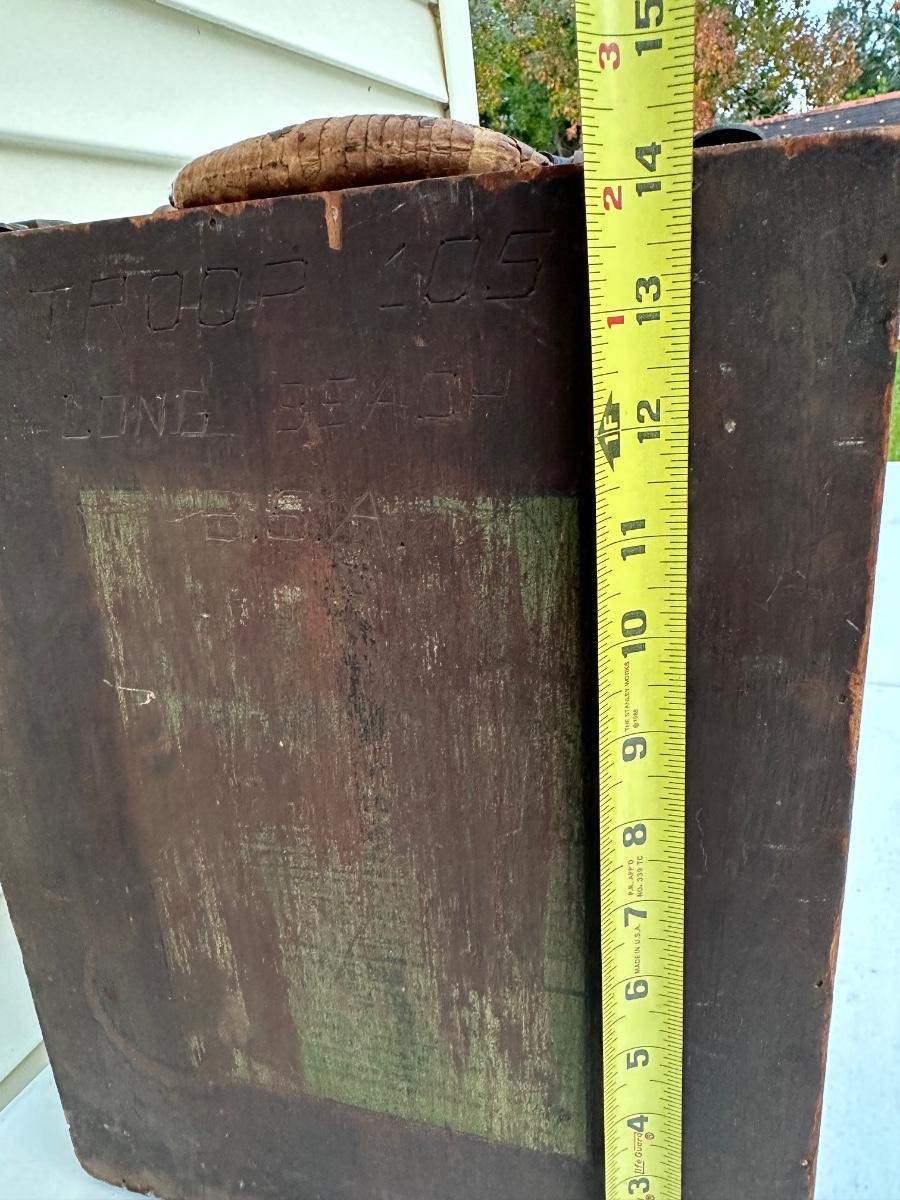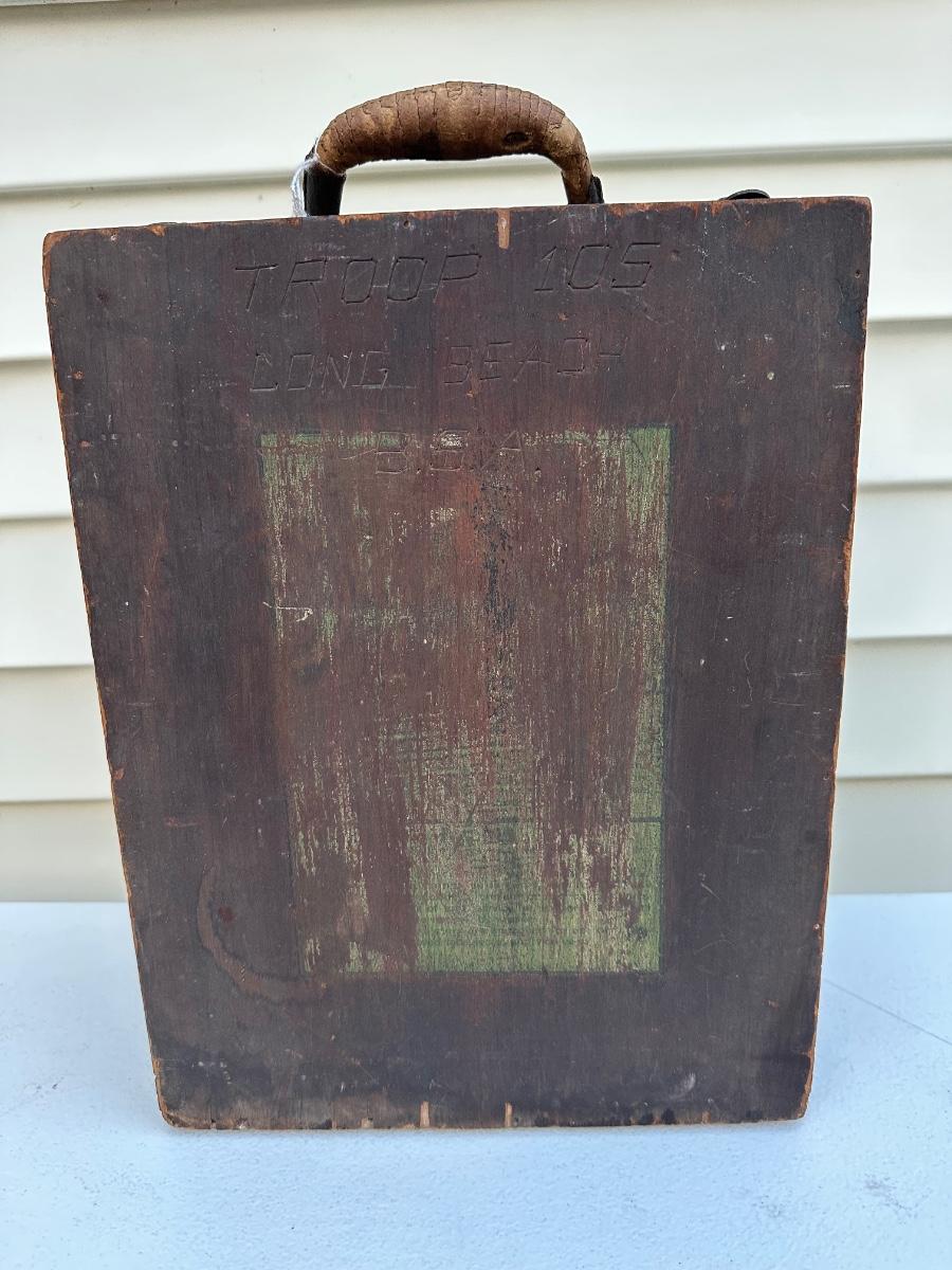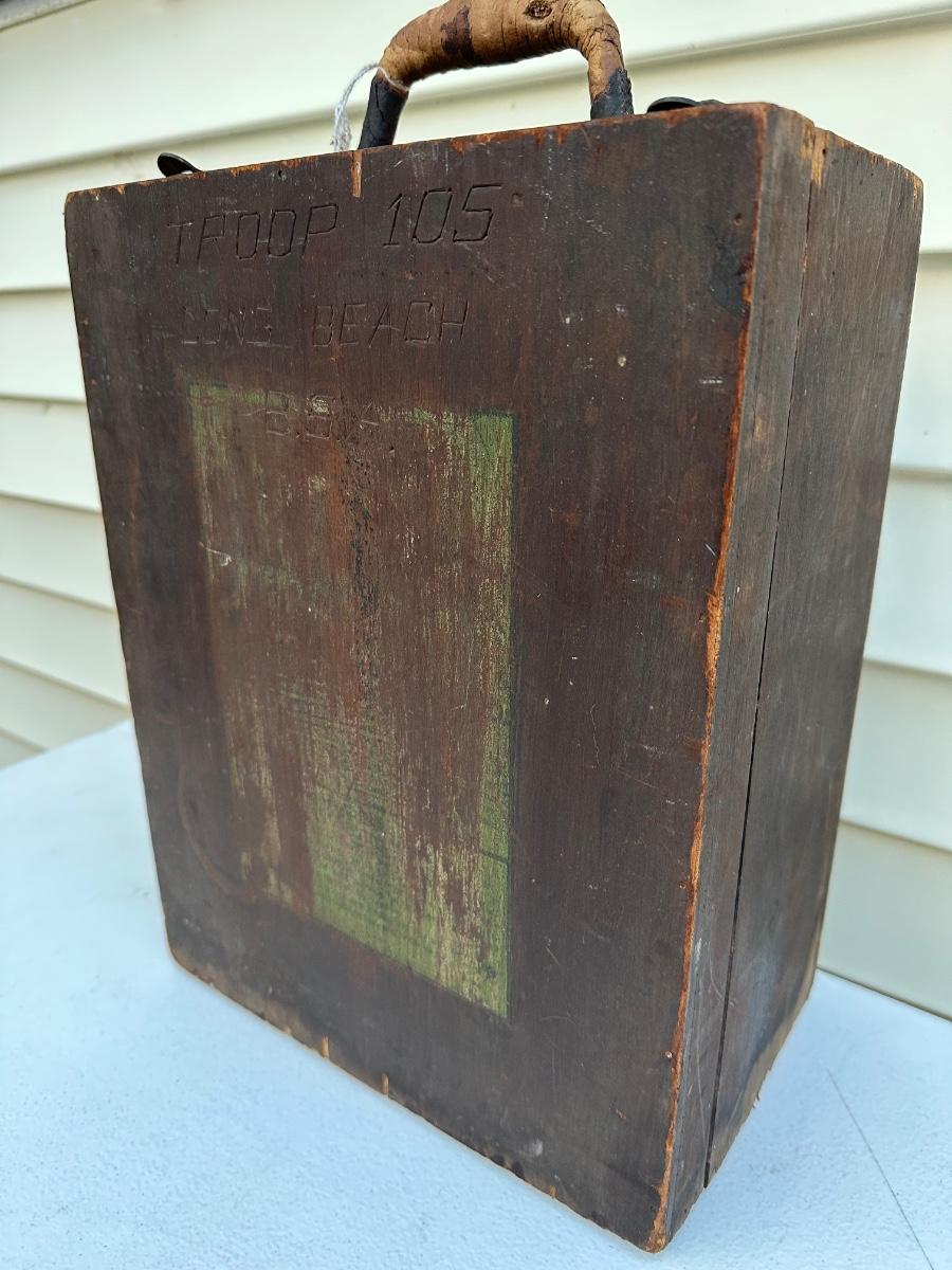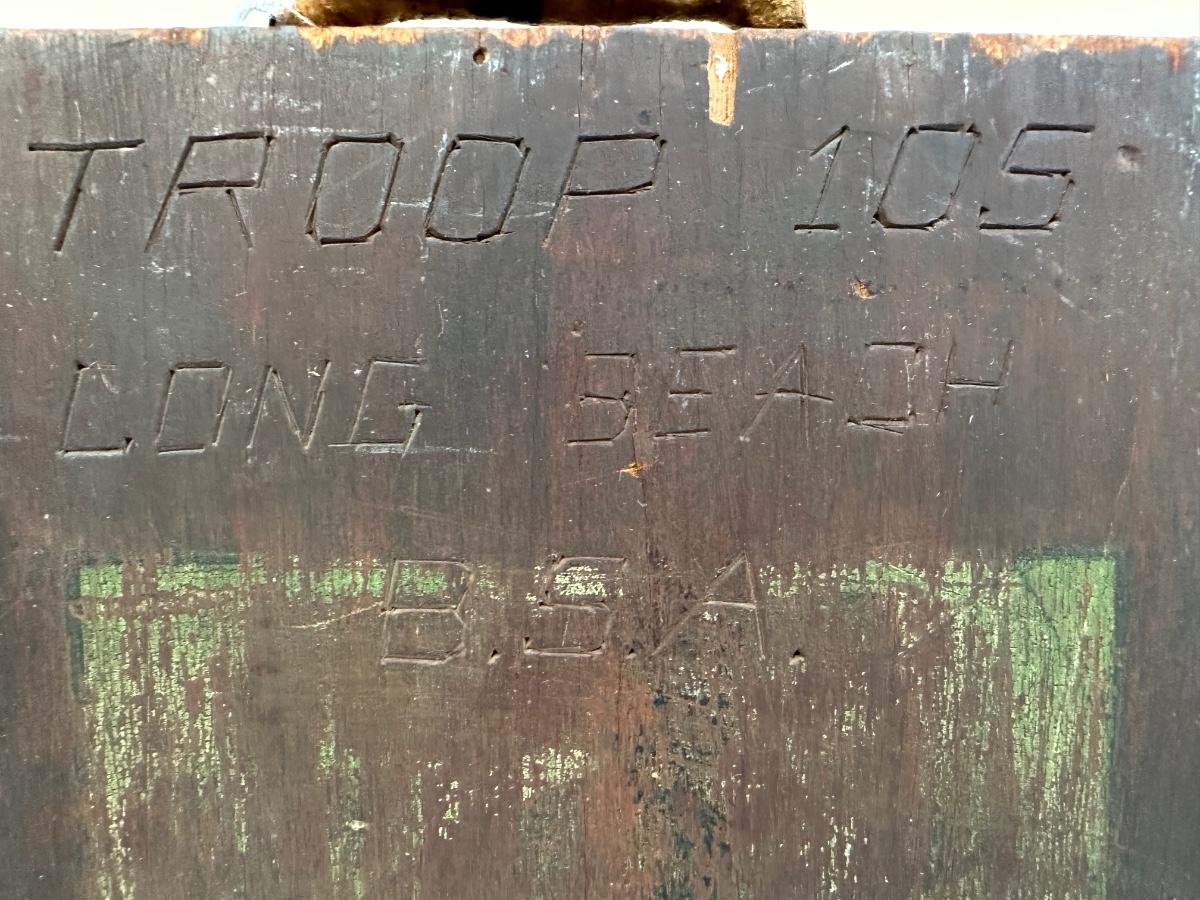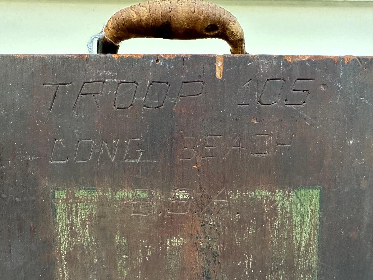 Engraved on the front of the box is “US Troop 105 Long Beach”.