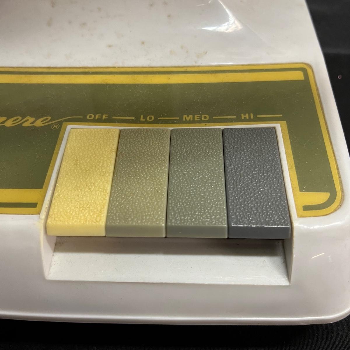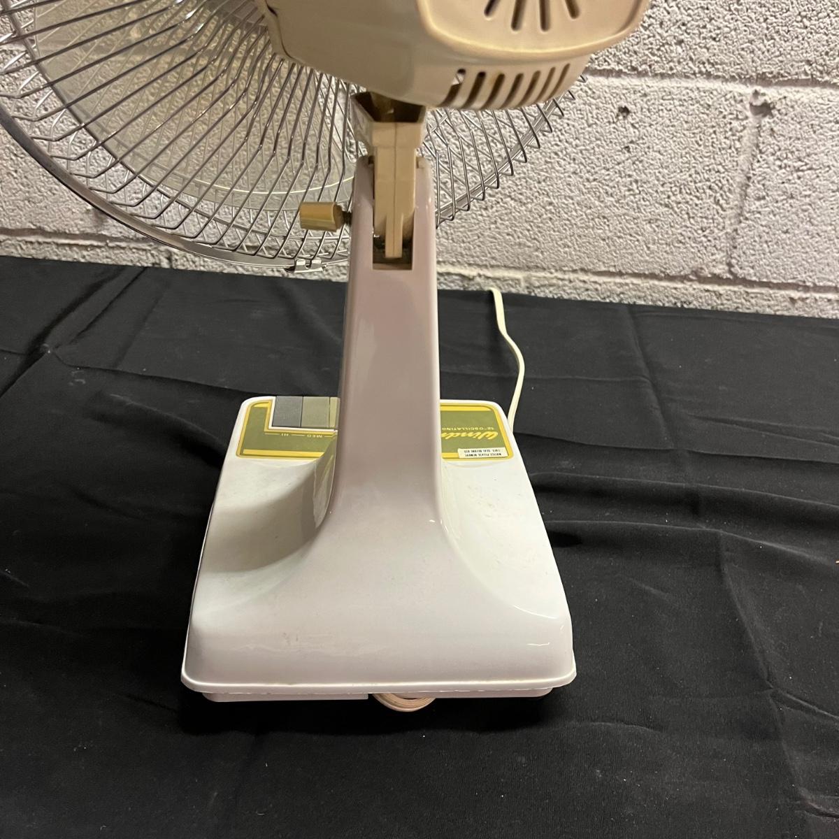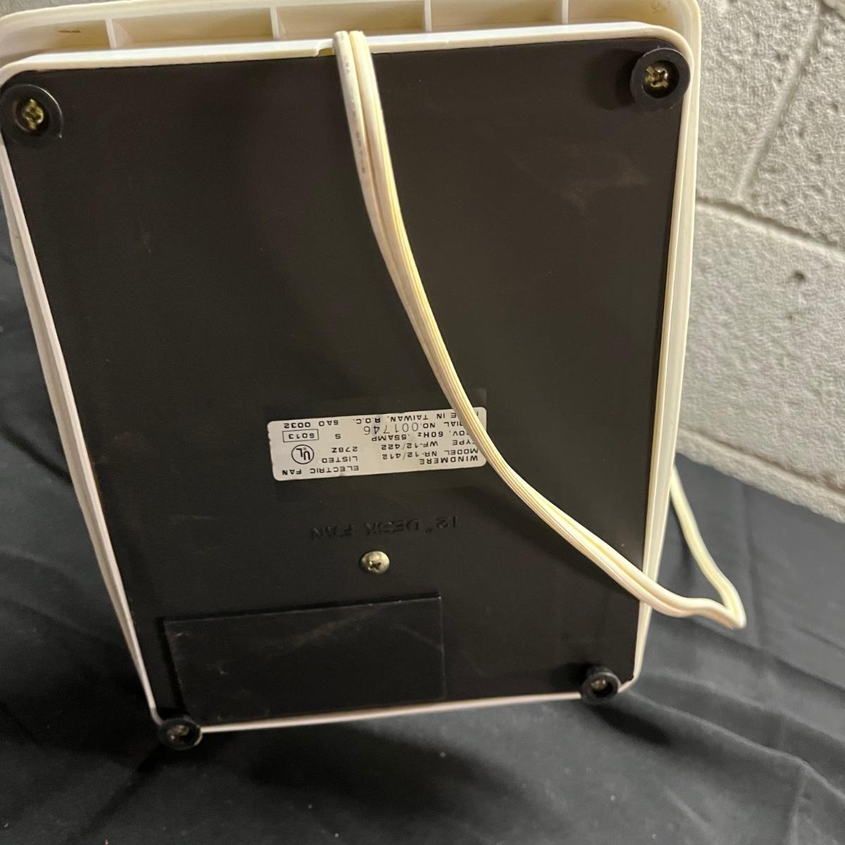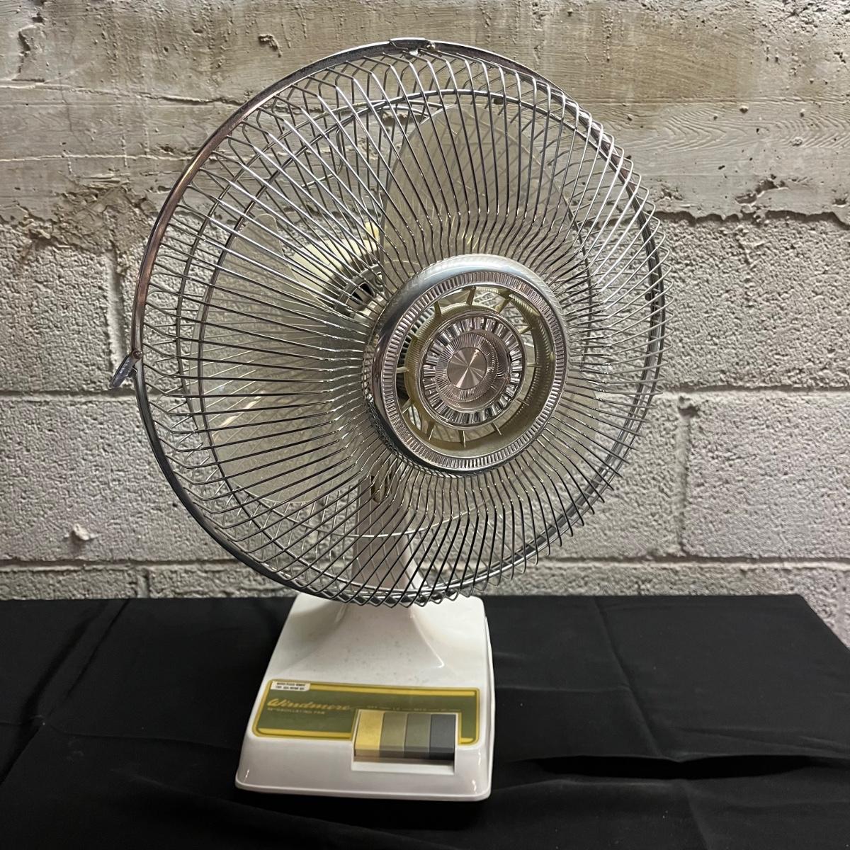 Lot includes a vintage Tropic Aire electric heater that powered on when tested. Also includes a Windmere 12” oscillating fan that worked when tested. Heater measures 7” x 9” x 10”.