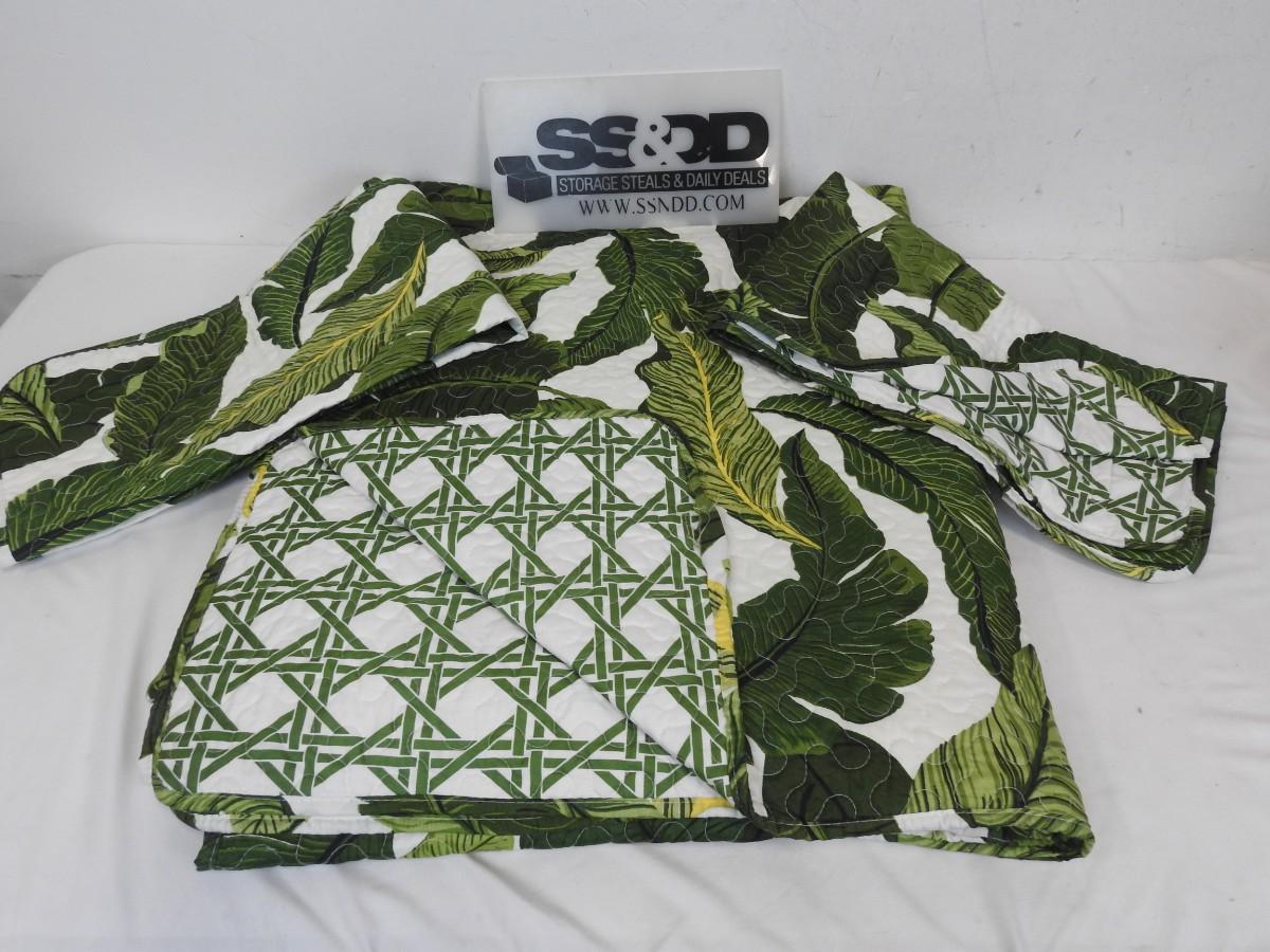 Tropical Paradise Reversible Quilt, King, Green, 5-Pc Set, Used, Only 3 pieces