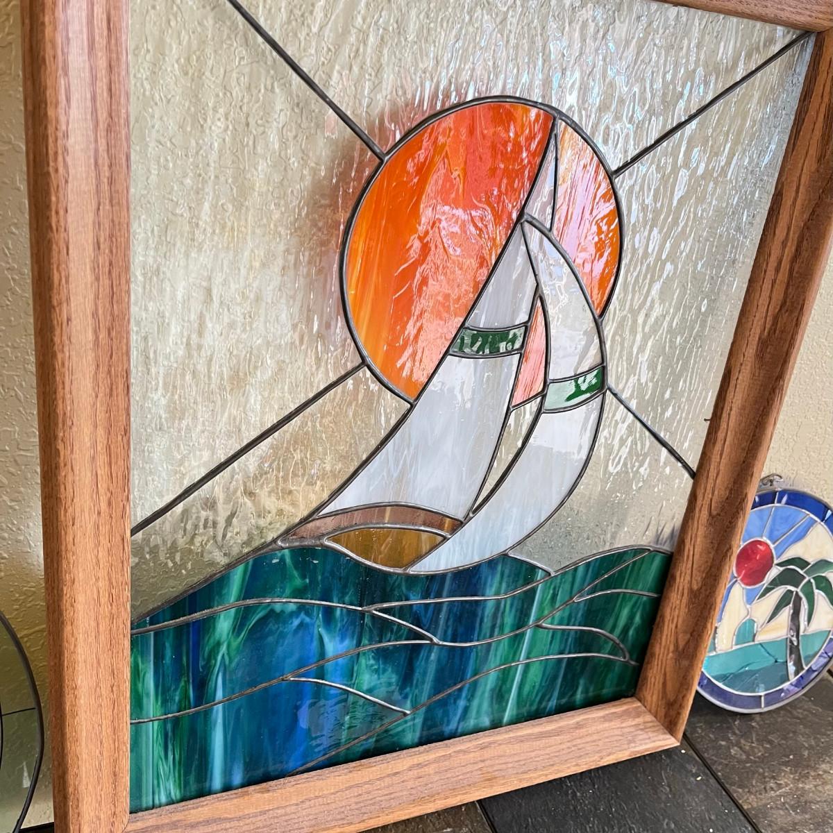 The smaller ones have some damage, & are 6". The sailboat window is in great shape. It is 20" or so!