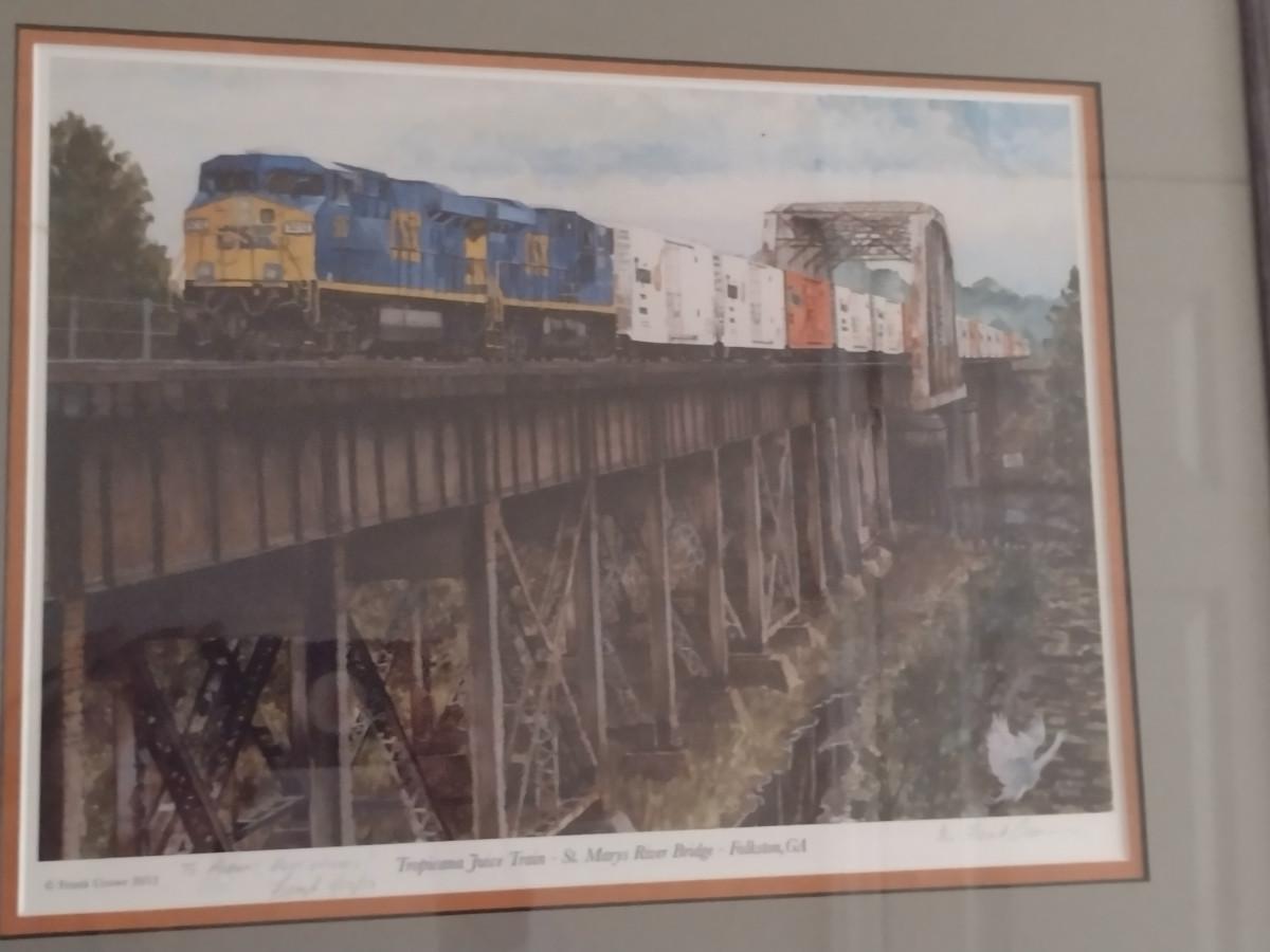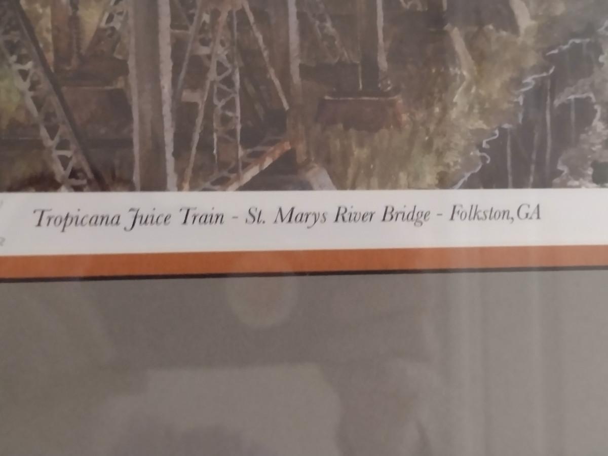 'Tropicana Juice Train- St. Mary's River Bridge- Folkston, Georgia' by Frank Crowe- Signed and Numbered. Approx 22" x 18"