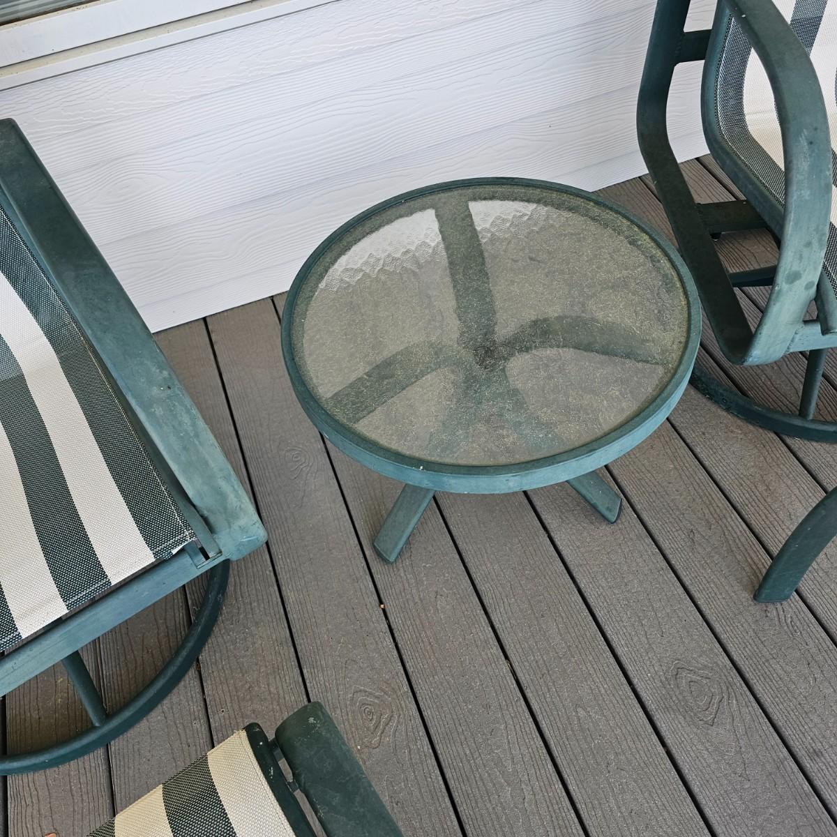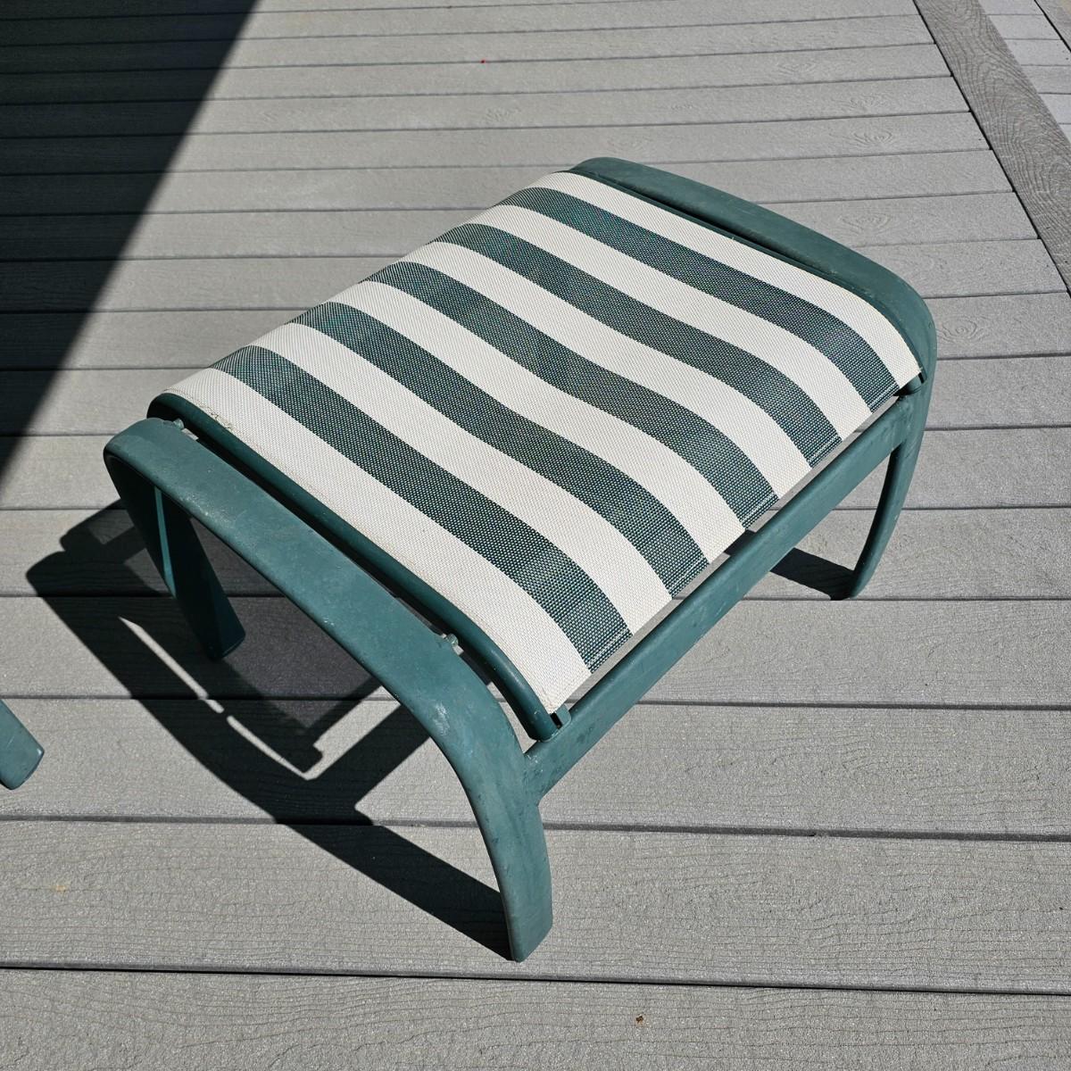 Tropitone Green/White Patio Rockers, Foot Stools & Table (OP-JS)