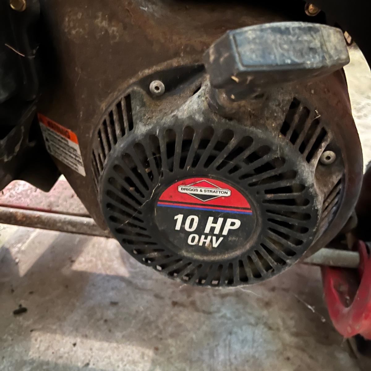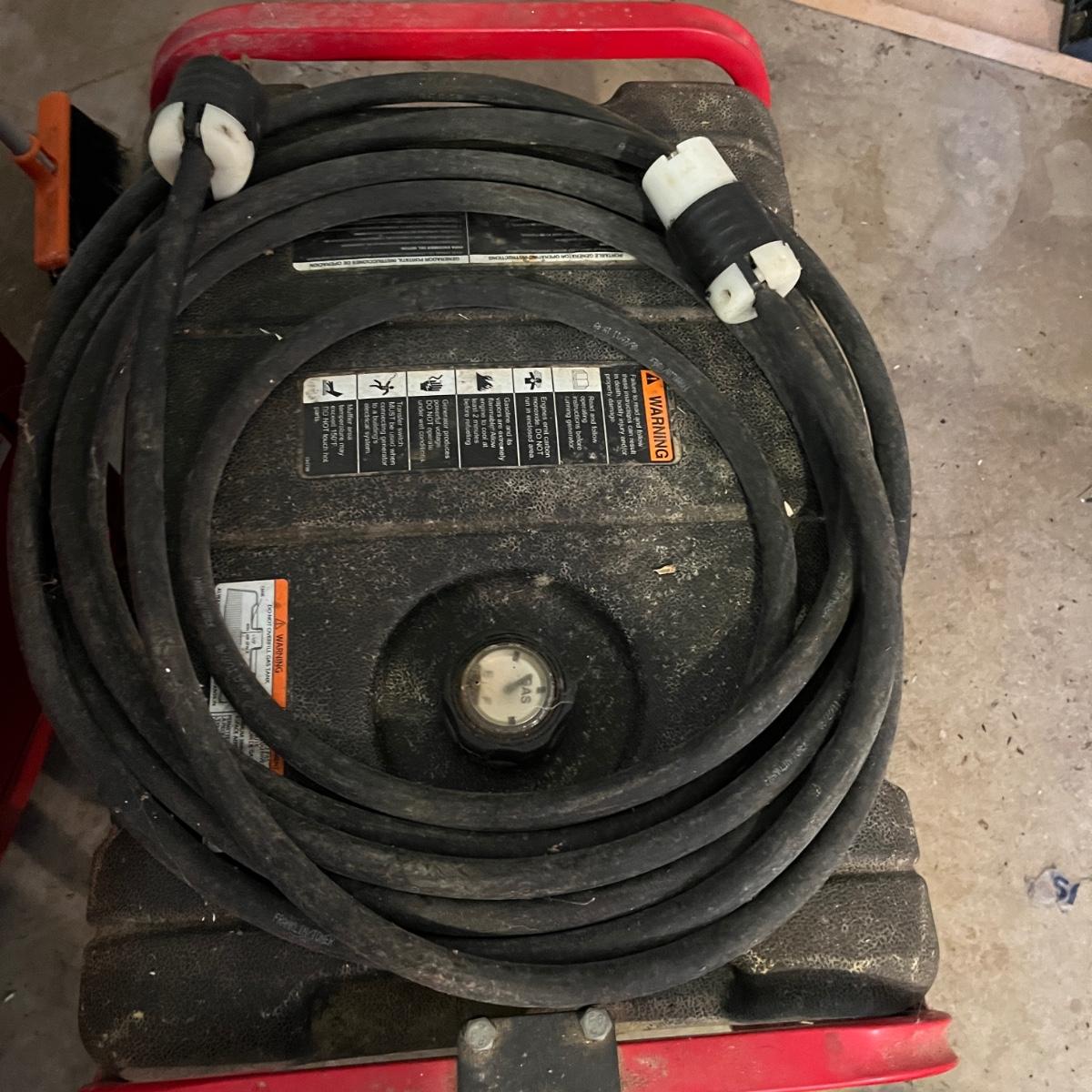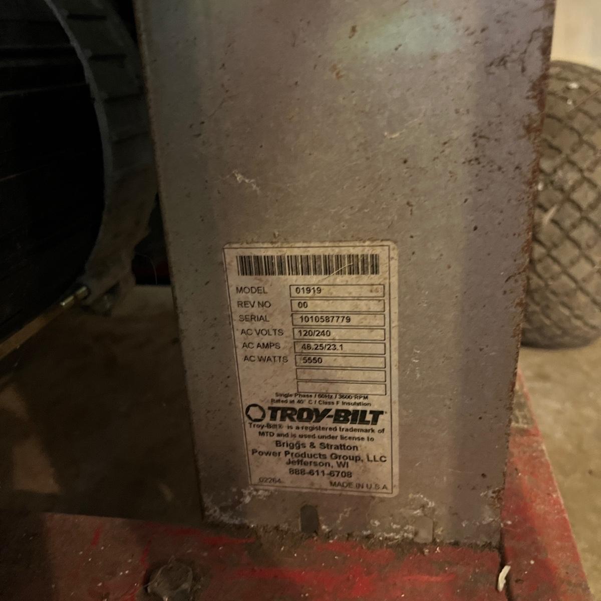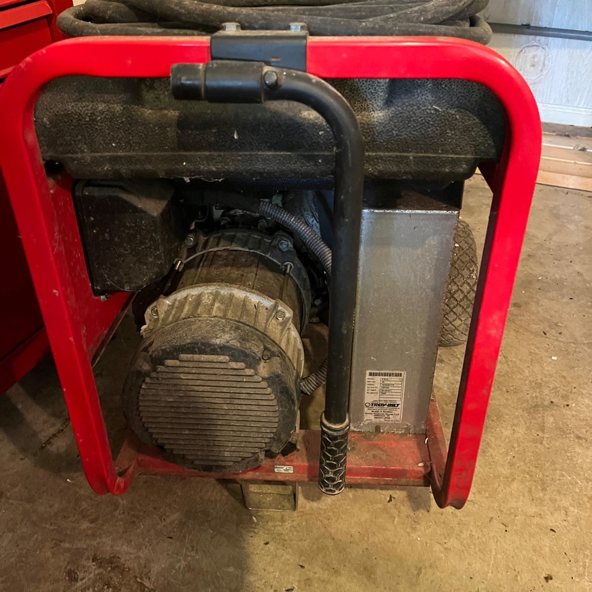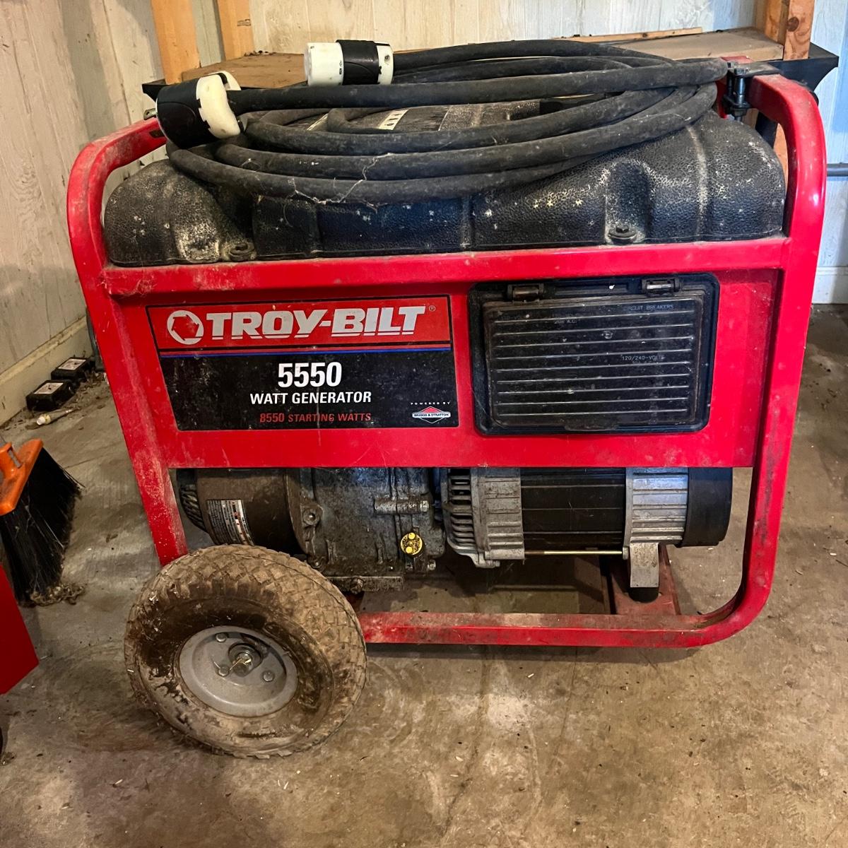This Troy Bilt generator is 5550 watts and has a 10HP Briggs & Stratton motor. Also includes cable. Engine started when cord pulled but generator was not tested.