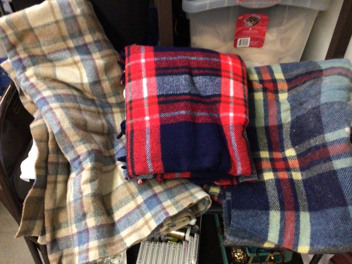 Troy plaid throw is brand new the other two have no name and various conditions.