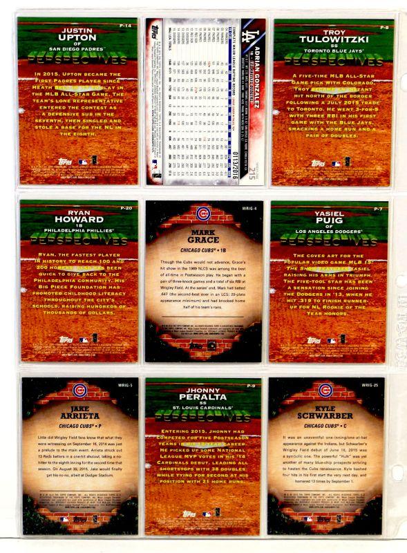TROY TULOWITZKI Ryan Howard Mark Grace Yasiel Puig BASEBALL CARDS SET OF 9 - MINT
